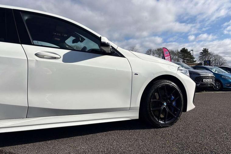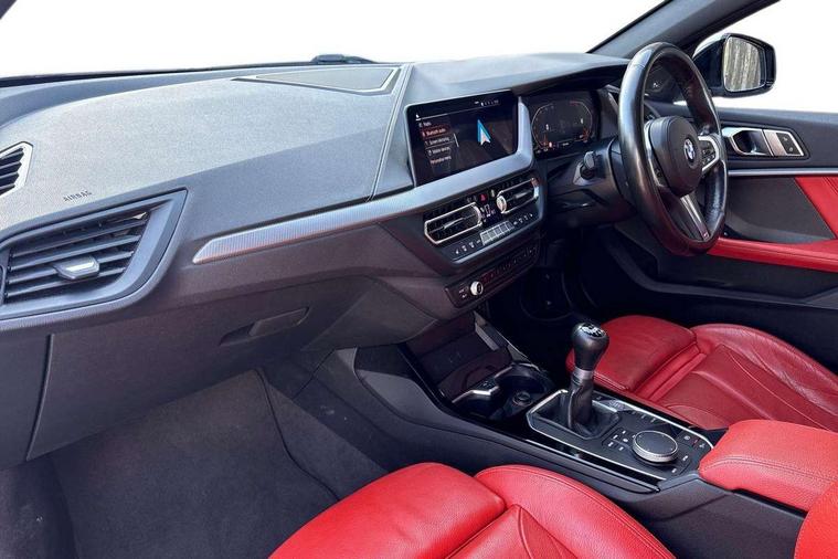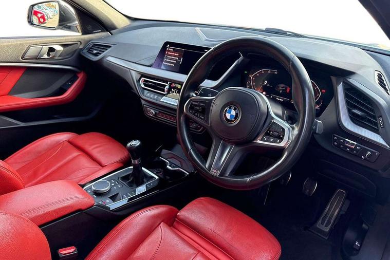Active guard plus, Attentiveness assist, BMW Online services, BMW Teleservices, Check Control warning system for monitoring of lights and door/luggage compartment open warning, Connected eDrive Services, Cruise control with brake assist, Eco pro mode, Electric power steering, Front/rear Parking distance control, Integrated owners handbook, On board computer, Optimum shift indicator, Personal Profile, Pull away assistant, Speed limiter, Anti roll bar front and rear, Balancer shaft, Double VANOS, Drive Performance Control, Electronic differential lock, M sports suspension + self levelling, Petrol Particulate Filter, VALVETRONIC engine management, Bluetooth audio streaming, DAB Digital radio, Auto dimming rear view mirror, Body colour door handles, Body colour mirror caps, Chrome 'M' logo side designation, Chrome exhaust tailpipe in single, round (Exhaust tailpipe, stainless steel - single, round), Chrome kidney grille frame with Satin Aluminium struts, Direction indicator side lights in exterior mirrors, Electric folding and anti dazzle exterior mirrors, Fading support, Follow me home headlights, Front and rear electric windows with open and close fingertip control, anti trap facility and comfort closing, Front door sill finishers in black plastic with BMW designation, Green tinted heat protection glazing, Headlight beam throw control, High gloss shadow line exterior trim, High level third brake light, LED daytime running lights, LED front fog lights, Lightweight engineering, Matt black air guide grilles, Matt black roof moulding, B pillar finisher and wheel arch trim, Matt black window frame, Model designation on right side of tailgate, Nearside reverse light in rear light cluster, Rain sensor including auto headlights activation, Rear fog lights, Rear window wiper, Shark fin antenna, Visible VIN plate, Welcome lighting, Windscreen wipers with integrated washing jets, 12V power socket in centre console, 2 cupholders in front centre console, 3 rear seat head restraints, 3 Spoke M sports leather steering wheel, Anthracite headlining, Anthracite Velour floor mats, Bag hook in luggage compartment, Child seat ISOFIX attachment for two outer rear seats and front passenger seat with anchorage points, Conditioned based service, Dakota leather upholstery with perforation and contrast stitching, Driver and front passenger seat heating, Driver side folding compartment in instrument panel, Folding rear clothes hook, Folding rear seats, Four grab handles integrated in roof lining, Front and rear door pockets, Front and rear side armrest integrated into door trim, Front armrest foldable with integrated storage compartment, Front sports seats with electric side bolster adjustment, Gearshift lever with M designation, Glove compartment, Height adjustable front head restraints, Manual adjust steering wheel, Multi-function controls for steering wheel, Rear seat backrest with manual 60:40 split folding with 3 top tether clips integrated on rear of seat panels, Storage compartment in centre console, Sun visors with vanity mirrors and insert tab, Two extra lashing eyes in luggage compartment, Two zone automatic air conditioning, Extended Lighting pack - 1 Series, Extended storage pack - 1 Series, Interior lights pack - 1 Series, Luggage compartment pack - 1 Series, M Sport exterior styling aerodynamics pack - 1 Series, 2 tone horn, 3 point seatbelts on all seats, front pyrotechnic belt tensioners, stopper and belt force limiters, rear coded belt buckles, Airbags - Front driver and passenger, front and rear head, front side, curtain head protection, Anti lock braking system (ABS) with brake assist, BMW emergency call, Brake drying, Braking readiness, Crash sensor activating central locking release, hazard warning lights, fuel cut off, interior lighting + activation of safety battery terminal clamp, Driver and front passenger seat belt security check, Dynamic stability control + (DSC+), Dynamic Traction Control - DTC, Electrically operated hand brake, Front passenger manual airbag deactivation, Rear child proof door locks, Seatbelt warning, Side impact protection, Tyre pressure monitoring system, Warning triangle and first aid kit, Automatic drive away locking facility, Central locking switch for all doors, fuel filler cap and luggage compartment, Deadlocking function system to all doors, Locking wheel bolts, Remote control with integrated key with High-gloss Black inlay and M designation and 1 button for open/ close lock, window, open luggage compartment, Start/stop button with comfort go keyless engine start and auto start stop deactivation button, Thatcham Cat.1 alarm and immobiliser, Contrast stitching on instrument panel, Reduced rolling resistance tyres,