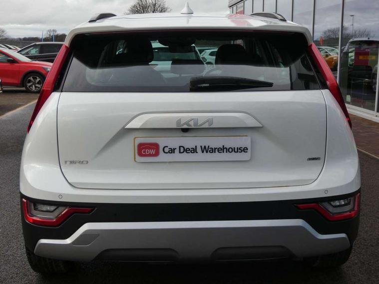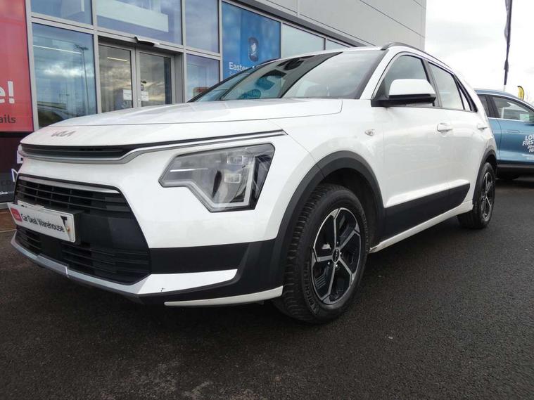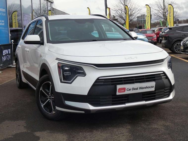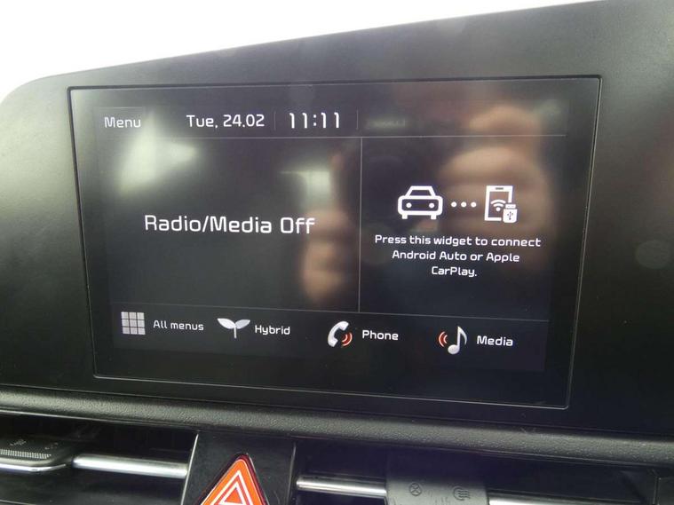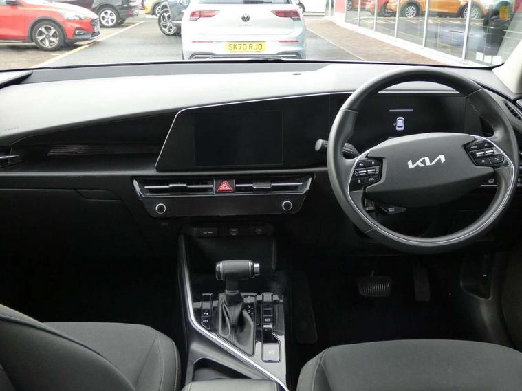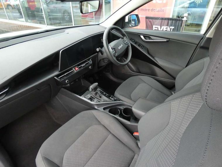 4.2" supervision colour cluster display, 8" touch screen, Adaptive smart cruise control function (SCC) with stop and go, Apple car play/Android Auto with voice control, Drive mode select (Eco, sport), E-call, Emergency stop signalling system, Forward Collision-Avoidance Assist (FCA) 1.5 - City/Pedestrian/Cyclist/Junction turning, Lane Following Assist (LFA), Lane keep assist, Motor driven power steering, Rear parking sensors, Reversing camera with dynamic guide lines, Speed limit assist, Tailgate, Trip computer with distance/fuel consumption/average speed, Sports H-Matic Automatic, 'Shark fin' mobile antenna, 2 type C USB ports on front seats, 2 USB ports in centre console including 1 type C, 6 speakers, Bluetooth with music streaming, DAB Digital radio, Steering wheel mounted controls, Acoustic windshield, All round electric windows with drivers auto up/down function, Auto dimming rear view mirror, Automatic defog system, Automatic headlight control system, Black beltline mouldings, Black embossed cladding, Body colour bumpers, Body colour door mirrors, Body colour exterior door handles, Dual LED headlights (low and high projection), Electric heated door mirrors, Front and rear silver skid plates, Heated rear window with timer, LED daytime running lights, LED rear combination lights, LED third brake light, Manual folding door mirrors, Rain sensor, Rear fog lights, Rear side wing doors, Rear spoiler, Rear wiper, Roof rails, Solar glass rear windows and tailgate, Solar glass windscreen, Welcome and follow-me home light functionality, Windscreen Washer Level Warning, 12V socket in front, 12V socket in luggage compartment, 3 seat bench in 2nd row, 60/40 split/folding 2nd row of seats, All-round height adjustable headrests, Artificial leather centre console storage box, Artificial leather steering wheel, Bulb overhead console, 2nd row and luggage lamp, Centre console cupholder, Cloth upholstery, Driver seat manual adjustment, Driver/passenger sunvisors with illuminated vanity mirrors, Dual zone automatic air conditioning, Front and rear door storage, H-Matic gear selection, Illuminated glovebox, Interior door lock/unlock function, ISOFIX Child seat top tethers and anchor fixings, Luggage area load cover, Luggage board, Metal paint interior door handles, Passenger seat height adjuster, Rear armrest, Single front passenger seat, Tilt/telescopic adjustable steering wheel, Towing pack - Niro, 3 point seatbelts on all seats, ABS, Automatic unlocking of doors in case of impact, Centre side front airbags, Curtain and side airbags, Drivers knee airbag, Dual shell horn, Electric parking brake with auto hold function, Electronic stability control, Front passenger airbag deactivation, Height adjustable front seatbelts, Hill start assist control (HAC), Manual rear child locks, Rear seat alert system, Traction control, Tyre pressure monitoring system, Alarm system and engine immobiliser, Deadlocks, Locking wheel nuts, Remote central door locking with fold away key, Visible vehicle identification number, Warranty - 7 Years/ 100, 000 miles, Graphite paint centre fascia, 16" alloy wheels, Tyre mobility kit,