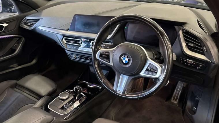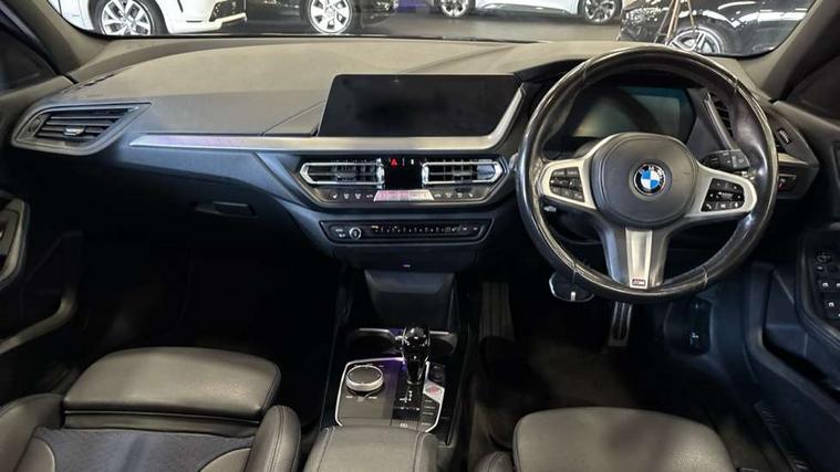 Active guard plus, Attentiveness assist, BMW Online services, BMW Teleservices, Check Control warning system for monitoring of lights and door/luggage compartment open warning, Connected eDrive Services, Eco pro mode, Integrated owners handbook, Oil sensor for level and grade, On board computer, Optimum shift indicator, Personal Profile, Pull away assistant, Speed limiter, Aluminium lightweight construction, Anti roll bar front and rear, Balancer shaft, Double VANOS, Drive Performance Control, Electronic differential lock, High precision injection, M sport suspension, Petrol Particulate Filter, VALVETRONIC engine management, Bluetooth audio streaming, DAB Digital radio, Auto dimming rear view mirror, Automatic headlight beam throw control, Automatic windscreen wipers and automatic headlight, Body colour door handles, Body colour mirror caps, Chrome 'M' logo side designation, Chrome exhaust tailpipe in single, round (Exhaust tailpipe, stainless steel - single, round), Chrome kidney grille frame with Satin Aluminium struts, Direction indicator side lights in exterior mirrors, Electric folding and anti dazzle exterior mirrors, Fading support, Follow me home headlights, Front and rear bumper system with replaceable deformation elements, Front and rear electric windows with open and close fingertip control, anti trap facility and comfort closing, Front door sill finishers in black plastic with M designation in metallic look, Green tinted heat protection glazing, Heated, electrically adjustable exterior mirror aspheric on driver side, convex on passenger side, High gloss shadowline window frame, Recess cover mirror frames and B/C pillar embelisher trim, High level third brake light, LED daytime running lights, LED eyebrow turn indicators, LED front fog lights, Lightweight engineering, Matt black air guide grilles, Model designation on right side of tailgate, Nearside reverse light in rear light cluster, Preparation for high beam assistant, Rain sensor including auto headlights activation, Rear fog lights, Rear window wiper, Shark fin antenna, Visible VIN plate, Welcome lighting, 12V power socket in centre console, 3 rear seat head restraints, 3 spoke M sports design leather steering wheel finished in nappa leather with specific M badge, Anthracite headlining, Anthracite Velour floor mats, Child seat ISOFIX attachment for two outer rear seats and front passenger seat with anchorage points, Conditioned based service, Dakota leather upholstery with perforation and contrast stitching, Driver and front passenger seat heating, Folding rear clothes hook, Four grab handles integrated in roof lining, Front and rear door pockets, Front and rear door pockets with bottle holders, Front and rear side armrest integrated into door trim, Front armrest foldable with integrated storage compartment, Front sports seats with electric side bolster adjustment, Glove compartment, Height adjustable front head restraints, Manual adjust steering wheel, Multi-function controls for steering wheel, Storage compartment in centre console, Sun visors with vanity mirrors and insert tab, Two zone automatic air conditioning, Additional interior lighting pack - 1 Series, Connected pack professional - 1 Series, Extended storage pack - 1 Series, Interior lights pack - 1 Series, Luggage compartment pack - 1 Series, M Sport exterior styling aerodynamics pack - 1 Series, 2 tone horn, 3 point seatbelts on all seats, front pyrotechnic belt tensioners, stopper and belt force limiters, rear coded belt buckles, Airbags - front driver/passenger, front & rear curtain, front side, Anti lock braking system (ABS) with brake assist, BMW emergency call, Brake drying, Braking readiness, Crash sensor activating central locking release, hazard warning lights, fuel cut off, interior lighting + activation of safety battery terminal clamp, Driver and front passenger seat belt security check, Dynamic stability control + (DSC+), Dynamic Traction Control - DTC, Electrically operated hand brake, Front and rear disc brakes, Front passenger manual airbag deactivation, Seatbelt warning, Side impact protection, Tyre pressure monitoring system, Warning triangle and first aid kit, Automatic drive away locking facility, Central locking switch for all doors, fuel filler cap and luggage compartment, Deadlocking function system to all doors, Locking wheel bolts, Remote control with integrated key with High-gloss Black inlay and M designation and 1 button for open/ close lock, window, open luggage compartment, Start/stop button with comfort go keyless engine start and auto start stop deactivation button, Thatcham Cat.1 alarm and immobiliser, Contrast stitching on instrument panel, Reduced rolling resistance tyres,
