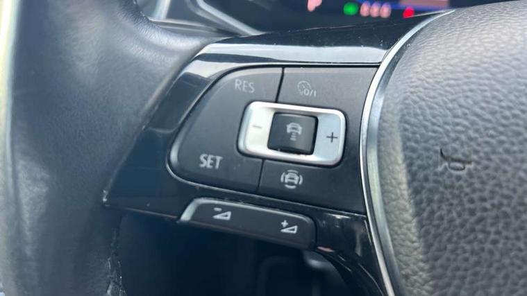 App-Connect, 2 USB connection charging sockets, Active Info Display, 10.3" high resolution TFT dash display screen with customised information, Adaptive cruise control, Automatic start/stop system, Bluetooth telephone and audio connection for compatible devices, Car information display, Car-Net Security and Service, Discover navigation, 8" touch screen navigation/infotainment system with Car-Net, European map, CD/radio, 2D/3D map and speed limiter, Driver alert system with audible and visual fatigue detection system, Dusk sensor, Front assist, radar sensor controlled distance monitor, city emergency braking + predictive pedestrian protection, Lane assist, Multifunction computer with visual gear change recommendation for fuel consumption, Power assisted speed sensitive steering, Service interval indicator, Think blue trainer driver tips and journey analysis, Voice activation, Warning sound and light for doors and tailgate open, Warning sound and light for front seatbelts unfastened, Battery regeneration during braking, Bluetooth - Simultaneous pairing of 2 compatible mobile devices, DAB Digital radio, Dynamic navigation based on TMC+, Multi device interface (MDI) with USB connection, Music playback - MP3, WMA and AAC files, Premium USB cable in choice of either Apple or Android smartphone compatibility, SD card slot, SMS functionality - read, compose and send SMS messages using touch-screen display, Three route options - Fast, Short, Eco, Title and cover art display, Auto dimming interior rear view mirror, Automatic hazard lights activation under emergency braking, Black grained lower door protectors, Black grained wheel arches, Body colour bumpers with silver metallic underbody fascia, Body colour door handles, Chrome effect left and right trapezoid exhaust tailpipe fascia surround, Chrome trim on upper and lower radiator grille, Door mirror integrated indicators, Electrically foldable, adjustable and heated door mirrors with puddle lights and reverse activated kerb-view adjustment on passenger's door mirror, Front and rear electric windows, Front fog lights with static cornering function, Front windscreen wiper with intermittent wipe and 4 position delay, Fully galvanised body, Heated rear window, High level 3rd brake light, LED darkened rear light clusters, LED rear number plate lights, Manual coming/automatic leaving home lighting function, Rain sensor, Rear tinted glass from B-pillar backwards approx 65% tinted, Rear windscreen washer and wiper with interval delay, 12V socket in centre console storage area, 2 LED front and rear reading lights, 3 rear head restraints, 4 load lashing points in luggage compartment, Ambient lighting in front footwell and light strips below trim in front doors, Climate control - 2 zone electronic air conditioning with automatic air recirculation and allergy filter, Drawer under drivers seat, Front centre armrest with storage compartment, longitudinal and height adjustable and two rear air vents, Front cupholders x 2, Front footwell illumination, Front seat back storage pockets, Glovebox, Height adjustable front seats, Height/reach adjust steering wheel, Illuminated vanity mirrors, Instrument lighting, white adjustable panel illumination, Interior light delay, Isofix easy fit child seat preparation for 2 outer rear seats, Load through provision with single cup holder when folded down, Luggage compartment cover, removable, Luggage compartment lighting, Split folding rear seat backrests with centre armrest, Storage compartment in left and right luggage area, Storage compartment in rear doors, Storage compartments in driver and front passenger doors, 3 rear three point seatbelts, ABS, Driver and front passenger safety-optimised head restraints, Electronic parking brake with auto hold, ESC with EDL, ASR, EDTC and trailer stabilisation function, Front and rear curtain airbags, driver and front passenger airbags with passenger deactivation switch and front side impact airbags, Rigid safety cell with front and rear crumple zones, Three point height adjust front seatbelts + pretensioners, Tyre pressure loss indicator, Ventilated front and rear disc brakes, Volkswagen roadside assistance, Alarm with remote central locking and interior protection, Electronic engine immobiliser, Remote central locking with 2 remote folding keys,