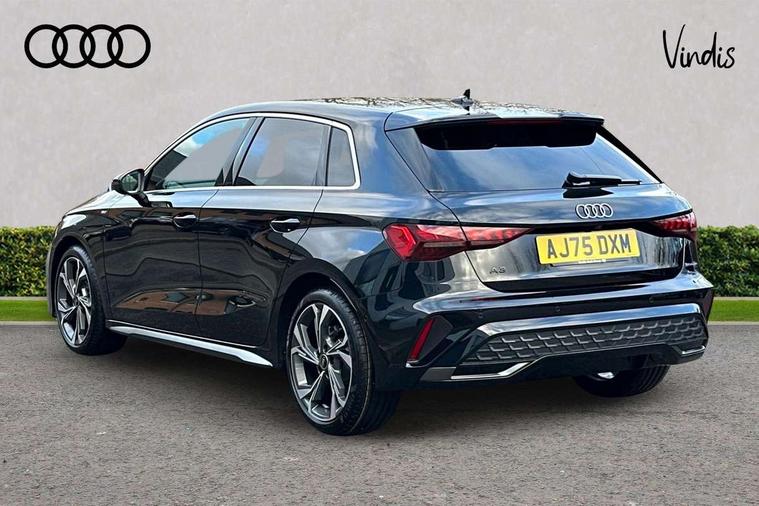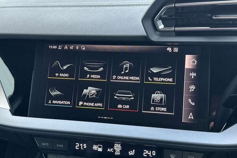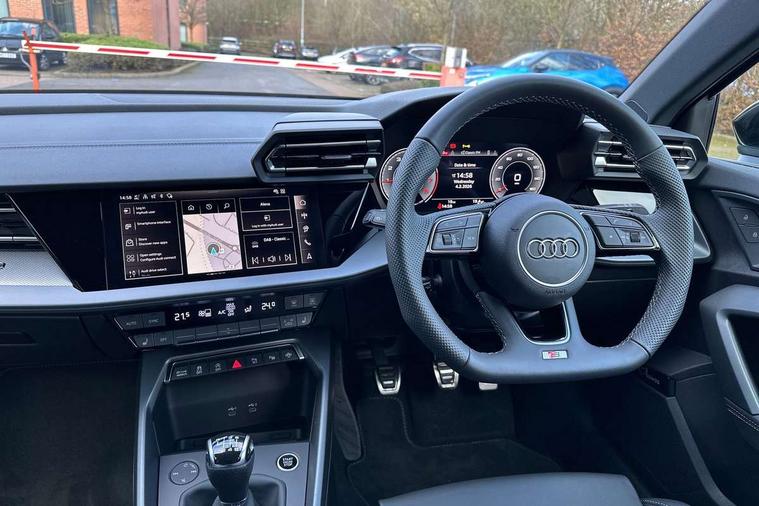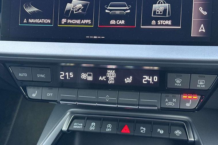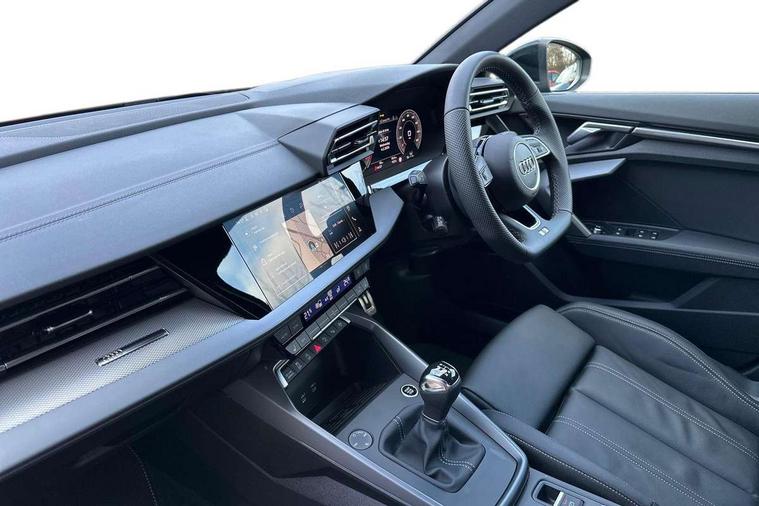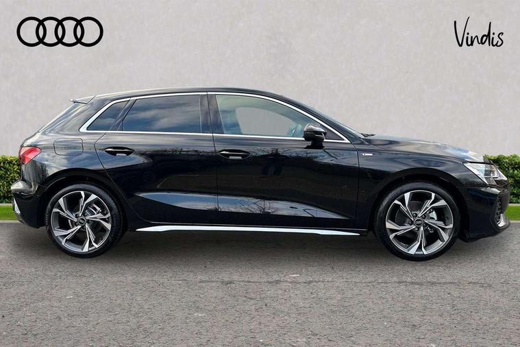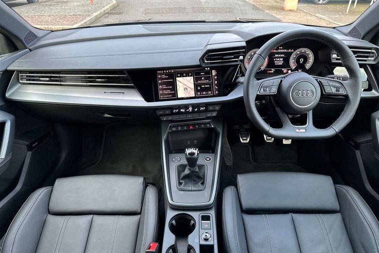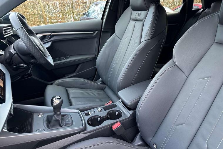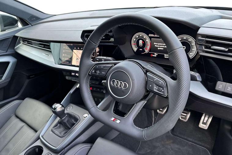 Adaptive cruise control (ACC), Adjustable speed limiter, Audi drive select (Auto, Comfort, Dynamic, Efficiency and Individual), Audi virtual cockpit plus - 12.3" full HD resolution dynamic digital instrument cluster, Automatic start/stop system with recuperation, Bluetooth interface, Camera based traffic sign recognition, Collision avoidance assistant, Driver attention and fatigue detection, e-Call (emergency call), Electromechanical power speed sensitive steering, Intersection assist, Lane departure warning system, MMI Navigation Plus with high resolution 10.1" colour touch screen display, Park Assist with parking system Plus, Reversing camera, Service indicator, Smartphone interface with app store includes wireless Apple carplay, Android auto and Amazon alexa integration, Trip computer, Voice control system with natural language interaction, Sports suspension, Audi Phonebox light with wireless charging, Audi sound system - 10 loudspeakers including centre loudspeaker and subwoofer, DAB Digital radio, USB ports with charging function in the rear, Acoustic glass windscreen, All weather light, Aluminium window trim, Auto dimming frameless rear view mirror, Automatic dynamic range control, Body colour exterior mirrors, Dipped beam, main beam, position light and turning light, Electrically adjustable/heated/folding/auto dimming door mirrors with integrated LED indications + kerb view function for passenger side, Exterior model badging, Front and rear side air inlets in grained matt black with dark liquid chrome frame, Front electric windows, Front radiator grill in high gloss dark chrome, Heat insulating glass windscreen, Illuminated door sills with aluminium inserts at the front with S logo, Intersection light, Invisible tailpipe, LED 3rd brake light, LED brake lights, LED daytime running x3, LED headlights with LED rear lights and dynamic rear indicators, LED rear number plate lights, LED reverse light, LED tail lights, Light and rain sensors, Manoeuvring light, Motorway light, Privacy glass - dark tinted rear window, rear door and side windows, Rear diffuser and grill in grained matt black with inlay in dark liquid chrome, Rear electric windows, Rear side wing doors, Rear wiper, S line bumpers, S roof spoiler, Side S line emblems on front wings, Side sill trim in dark liquid chrome, Static cornering light, 12V socket and storage compartment in front centre console, 3 seat bench in 2nd row, 3 spoke flat bottomed multi-function leather sport steering wheel, 3-zone deluxe automatic air conditioning, 4 way electrically adjustable lumbar support for driver and front passenger, 40/20/40 split folding rear seat bench, Black cloth headlining, Black front and rear floor mats, Front and rear centre armrest in artificial leather with contrasting stitching on armrests and instrument panel, Front and rear headrests, Heated front seats, Height and reach adjustable steering wheel, i-Size child seat mounting on the front passenger side and outer rear seats, i-Size and top tether on the outer rear seats, Manual boot compartment lid, Manually adjustable front seats, Rear centre armrest with cupholder, S badging on the steering wheel, Seat side bolsters, Single front passenger seat, Stainless steel pedals and front footrest in black, Twin leather upholstery with front sports seats S embossed logo, Aluminium interior elements pack - A3, Multi-coloured LED interior lighting package with Multi-coloured contour lighting of instrument panel - A3, 3x3 point rear seat belts, Driver and front passenger airbag with passenger airbag deactivation, Electronic Stabilisation Control (ESC) including ABS, ASR and EDL, First aid kit with warning triangle and 2 safety vests, Front side airbags with head airbags and interaction airbag, Hill hold assist, Pre-sense front with pedestrian and cyclist detection, Seatbelt monitoring, Tyre pressure loss indicator, Anti theft alarm, Anti-theft wheel bolts, Electronically operated child locks, Immobiliser, Black dashboard, Inlay in dark aluminium spectrum,