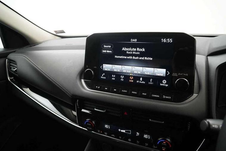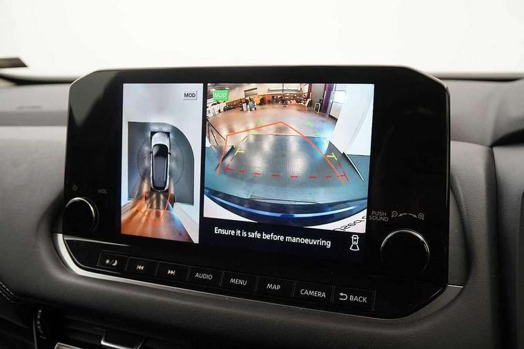 Blind spot warning, Drive modes (sport, normal, eco), Dusk sensor, Electric speed sensitive power steering, Emergency and breakdown call, Front and rear parking sensors, Full Digital 12.3" TFT Digital Combimeter, Google maps services - search, weather, 3D maps and Google street view, Idle stop/start system, Intelligent around view monitor, Intelligent Cruise control (ICC), Intelligent driver alert system, Intelligent forward collision warning, Intelligent lane intervention, Lane departure prevention, Lane departure warning system, Maximum speed limiter, Moving object detection, Nissan connect 12.3 inch touchscreen infotainment system, Nissan connect navigation, Push button starter, Rear cross traffic alert, Remote control services - door locks, lights, horn and car locator, Telematics - notifications and connectivity services, TomTom live traffic services, Traffic sign recognition with legal speed adjustment, Trip computer, Virtual personal assistant and firmware over the air capability, Wireless Apple CarPlay and wired Android Auto, 6 speakers, AM/FM audio system with DAB, Bluetooth audio streaming, Front USB connections (Type-A and Type-C), Rear USB charging only ports (Type-A and Type-C), 3rd brake light, Auto dimming rear view mirror, Auto rear wiper when reversing, Automatic hazard signal with emergency stop signal, Body colour mirror caps, Body coloured door handles, Bodyside mouldings, Chrome side window finisher, Door handle with button, Electric auto folding door mirrors, Electrically adjustable and heated door mirrors with LED turn indicator, Follow me home headlights, High beam assist, Intelligent auto headlights, LED daytime running lights, LED Headlights, LED rear lights, One touch front and rear electric windows with remote opening and closing, Partially body coloured bumpers, Privacy glass, Rain sensor, Rear bumper with graphite insert, Rear reversing light (bulb lighting), Rear roof spoiler, Rear side wing doors, Rear styling plate, Shark fin antenna, Splash free rain sensing wipers, Super UV and infrared cut glass, Three blink turn signal, 12v power socket in dashboard and luggage, 2 way electrical driver lumbar adjustment, 2x Rear coat hooks, 3 bench rear seats in 2nd row, 3 rear headrests, 4 folding assist grip, 6 Luggage hooks - 4 on floor, 2 on side, 6-way manually adjustable driver's seat, 60/40 split folding rear seat bench, Ambient lighting around centre console, Centre console storage tray, Chrome interior door handles, Cloth monoform upholstery, Driver and front passenger sunvisors with illuminated vanity mirrors, Driver seat back pocket, Dual zone automatic climate control with pollen filter, Front and rear door storage, Front cupholders x 2, Front door with bottle holders, Glovebox with light, Hard trunk cover, Height adjustable front headrests, Leather shift knob, Leather steering wheel, Luggage board system, Luggage space lighting, Manually adjustable passenger (slide recline + lifter), Multifunction steering wheel, Passenger seat back pocket, PVC front centre console and armrest, Rear armrest with 2 cupholders, Rear door bottle holders, Single front passenger seat, Soft PVC kneepad, Steering wheel switches, Sunglasses holder, Tilt/telescopic adjustable steering wheel, Two rear isofix child seat anchorage points with top tether, Welcome light and console tray ambient lighting, 3x3 point rear seatbelt pretensioners + load limiters, ABS, ESP, EBD and brake assist, Active brake limited slip, Auto hold function, Child locks on rear doors, Curtain and front side, far side airbags, Driver and passenger airbags, Driver, passenger and 2nd row rear seat belt reminder, Electronic parking brake, Front seatbelt pretensioners + load limiters, Height adjustable front seatbelts, Hill start assist, Intelligent blind spot intervention, Intelligent front emergency braking with pedestrian, cyclist recognition and junction assist, Intelligent rear automatic braking, Tyre pressure monitoring system, Vehicle dynamic control, Capless fuel filler, Engine immobiliser, Nissan i-key, Remote central door locking with deadlocking, Thatcham Cat.1 alarm, Interior instrumental panel B finisher, 18" diamond cut alloy wheels, Tyre puncture repair kit,