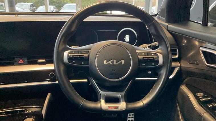 12.3" Display with navigation, 12.3" supervision colour cluster display, 360 degree around view monitor, Apple car play/Android Auto with voice control, Blind spot collision avoidance assist, Blind spot view monitor, Drive mode selector, E-call, Forward collision avoidance assist (FCA) - city/pedestrian/cyclist/junction covering, Front and rear parking sensors, Highway Driving Assist (HDA), Intelligent speed limit assist, Kia Connect (UVO), Lane Following Assist (LFA), Lane keep assist, Low washer fluid warning, Parking collision avoidance assist (PCA), Remote smart parking assist, Reversing camera system integrated into centre fascia screen, Smart cruise control with stop and go functionality, Smart power tailgate, Speed sensitive power steering, Trip computer, Windscreen washer level indicator, Wireless Smartphone charger, Intelligent Stop and Go, Bluetooth audio streaming, DAB Radio with MP3, Harman Kardon premium sound system, Rear USB port, Steering wheel mounted audio controls, USB C type charging ports on centre console, USB C type charging ports on side of front seats, USB port for connection of a media device, All round electric windows with drivers and front passenger auto up/down function, Automatic headlight control system, Automatic window defogger, Backlite glass heated with timer, Body colour and black bumper with silver accents, Body colour exterior door handles, Body colour radiator upper garnish and door garnish, Dual LED adaptive headlamps, Electric panoramic glass sunroof (Electric one touch with safety function), Electrically adjustable/heated/folding door mirrors with LED indicators, Front and rear chrome skid plates, Gloss black door mirrors, Gloss black radiator grille, Gloss black side sill and wheel arch body mouldings, Glossy black roof rack, High beam assist, Interior electrochromic mirror, LED daytime running lights, LED front fog lamps, LED High mounted stop light, LED rear combination lamp, Rain sensing wipers with aero blades, Rear fog lamp, Rear privacy glass, Rear side wing doors, Rear spoiler, Rear wiper, Satin finished beltline, Tinted rear glass, Trailer stability assist, 10 way driver/8 way passenger electrically power adjustable seats, 12V power socket in front centre fascia and luggage compartment, 3 seat bench in 2nd row, 3 x passenger assist grips, 40/20/40 split folding rear seat, All-round height adjustable headrests, Ambient lighting, Black headlining, Centre console storage box, Cupholders in rear armrest, D-Shaped sports leather steering wheel and perforated inserts with GT-Line logo, Door courtesy lamps, Drink holder at centre armrest, Driver and front passenger side sunvisors with illuminated vanity mirrors, Driver seat memory function, Drivers seat power lumbar support, Front and rear door storage, Front seat and rear pockets, Front/rear centre armrests, Gear shift indicator, Glovebox illumination, Heated front and outer rear seats, Heated steering wheel, Interior door lock/unlock function, ISOFIX Child seat top tethers and anchor fixings outer rear seats, LED interior personal lamp, LED lighting in overhead console, Luggage area LED light, Luggage area load cover, Luggage net with hooks, Metal paint interior door handles, Paddle shift controls, Rear cabin light, Rear coat hooks, Single front passenger seat, Sports pedals, Suede leather upholstery, Three zone climate control, Tilt/telescopic adjustable steering wheel, Ventilated front seats, Ventilation ducts to rear compartment, Active front headrests, All round 3-point seatbelts, Anti-lock braking system (ABS), Dual front side airbags, Dual horn, Electronic parking brake, Electronic stability control with downhill brake control, Front passenger airbag cut-off switch, Front seatbelt pretensioners + load limiters, Height adjustable front seatbelts, Hill start assist control (HAC), Impact sensing auto door unlocking, Multi collision brake assist, Rear door child safety locks, Rear seat alert system, Traction control, Twin curtain airbags, Twin front airbags, Tyre pressure monitoring system, Advanced anti-theft system including immobiliser and alarm, Door deadlocks, Engine Start/Stop Button with Smart Entry System, Locking wheel nuts, Speed sensitive auto door locking, Visible vehicle identification number, Aluminium pattern finish centre fascia and door garnish, 18" GT-Line alloy wheels, Michelin tyres, Tyre mobility kit,