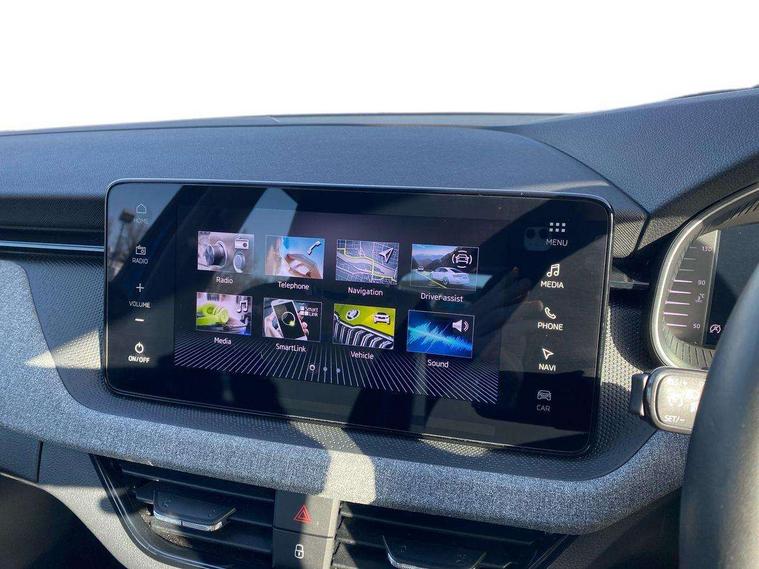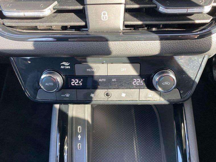 Advanced driver attention and drowsiness monitor, Bluetooth, e-Call (emergency call), Front assist system, PAS, Rear parking sensors, Rear view camera, Speed limiter, Tailgate, Traffic sign recognition, Virtual Cockpit - 10.25" digital display, Voice control system, Wireless smartlink, 4 USB C ports, 8 Speakers, 9.2" Skoda navigation display, DAB radio, Auto dimming rear view mirror, Automatic headlamp activation with Coming home and Leaving home feature, Automatic high/low beam, Body colour bumpers, Body colour door mirrors and handles, Chrome moulding around grille, Front and rear electric windows, Full LED headlights, Heated rear window, LED 3rd brake light, LED brake lights, LED daytime running lights, LED front turning lights, LED high beam, LED low beam, LED taillights, Rear LED fog light, Rear side wing doors, Rear wiper, Tinted windows, Unique dark chrome design logo on alloy wheels, 12V socket in luggage compartment, 3 seat bench in 2nd row, Black / Grey armrest stitching, Black hotstamping, Cargo elements, Chrome inner door handles, Door inserts in satin black, Driver and passenger sun visors with vanity mirror, Dual zone climate control, Front and rear roof lights, Front centre armrest, Front head restraints, Glasses storage in roof liner, Height adjustable driver seat, Height adjustable passenger seat, Ice scraper, Illuminated glove compartment, Inner circulation control with pollen filter, ISOFIX for front passenger seat, Isofix preparation for back seats, Leather gearknob and handbrake lever, Loft cloth upholstery, Luggage net under rear parcel shelf, Manual lumbar support for front seats, Net package and top tether hooks in boot space, Pearl grey ceiling, Pocket on the back of both front seats, incl. mobile phone pockets, Single front passenger seat, Skoda lettering on steering wheel, Textile floor mats, Third rear headrest, Ticket holder, Top tether for front passenger seat, Umbrella in driver's door, 3x3 point rear seatbelts, ABS, Child locks, Curtain airbags and front side airbags, Disc brakes, Driver and front passenger airbags, ESP, Hill hold control, Manual leather parking brake, One tone horn, Passenger airbag switch off function, Seatbelt reminder for driver and front passenger, Tyre pressure monitoring system, Anti theft alarm system with interior monitoring, backup horn and towing protection, Anti-theft wheel bolts, Remote central locking with 2 remote folding keys, SAFE function for remote central locking, Decord pad, door inserts Kota uni,