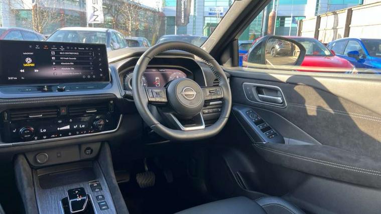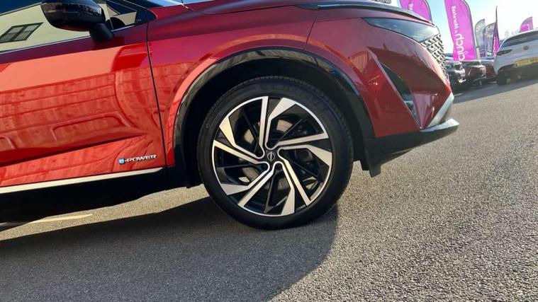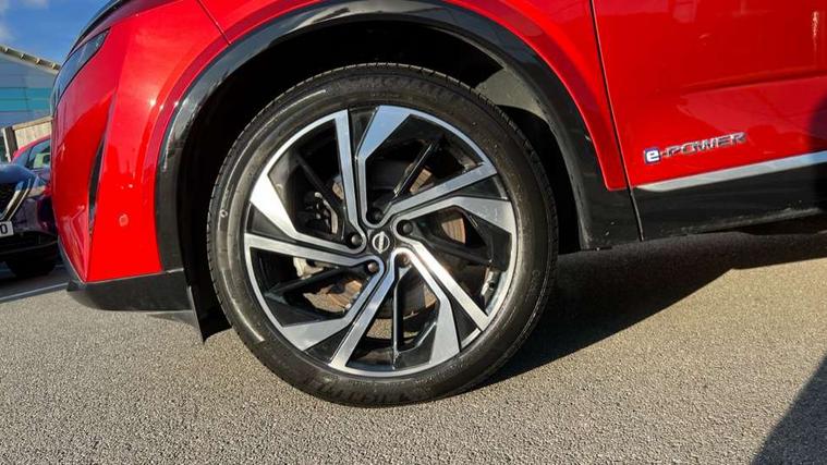2 front USB-C ports, 2 rear USB-C ports, 360 degree Intelligent around view monitor with moving object detection, Advanced windscreen head up display, Blind spot intervention, Blind spot warning, Drive assist custom mode, Drive modes (sport, normal, eco), Driver drowsiness and attention warning, e-Pedal step, Electric speed sensitive power steering, Emergency and breakdown call, Emergency lane keep assist, Emergency Stop Signal (ESS), Engine start/stop button, EV mode switch, Event data recorder, Front and rear parking sensors, Full Digital 12.3" TFT Digital Combimeter, Google virtual personal assistance, Hands free power tailgate, Idle stop/start system, In-car WIFI hotspot, Intelligent Cruise control (ICC), Intelligent forward collision warning, Intelligent speed assist, Lane departure warning system, Nissan connect 12.3 inch touchscreen infotainment system, Nissan connect navigation with google maps, Nissan connect services 2.0 (Google Automotive System), Outside temperature sensor, Rear cross traffic alert, Reversing detection, Traffic jam pilot, Wireless Apple CarPlay/Android Auto, Wireless charging pad, Limited slip differential, Multi link suspension, 10 Bose speakers - 2 tweeters, 6 high and medium frequency door speakers and 2 in subwoofer, AM/FM audio system with DAB, Bluetooth audio streaming, Bose acoustimass bass box, Auto dimming frameless rear view mirror, Auto rear wiper when reversing, Body colour mirror caps, Body coloured bumpers, Body coloured door handles, Bodyside mouldings, Chrome side window finisher, e-POWER badging, Electric auto folding door mirrors, Electrically adjustable and heated door mirrors with LED turn indicator, Follow me home headlights, Glossy black bumper inserts and fenders, High beam assist, Intelligent auto headlights, LED 3rd brake light, LED daytime running lights, LED headlights with adaptive driving beam, LED rear lights, LED sequential turn lights, One touch front and rear electric windows with remote opening and closing, One touch passenger window, Rear privacy glass, Rear roof spoiler, Rear side wing doors, Rear styling plate, Reverse tilting door mirrors, Shark fin antenna, Silver roof rails, Splash free rain sensing wipers, Super RED rear LED lights, Super UV and infrared cut glass, Thermaclear heated windscreen, 3 bench rear seats in 2nd row, 3 rear headrests, 60/40 split folding rear seat bench, Chrome interior door handles, Dark headlining, Driver seat back pocket, Dual zone automatic climate control with pollen filter, e-POWER shifter, Fixed Glass roof with electric sunshade, Front door with bottle holders, Heated front seats, Heated steering wheel, Height adjustable front headrests, Luggage board system, Luggage space lighting, Multifunction steering wheel, Passenger seat back pocket, Quilted premium leather upholstery, Rear door bottle holders, RGB ambient light (Full area coverage), Single front passenger seat, Smooth leather steering wheel, Tilt/telescopic adjustable steering wheel, Two rear isofix child seat anchorage points with top tether, 3x3 point rear seatbelt pretensioners + load limiters, Autonomous emergency braking, Child locks on rear doors, Curtain and front side, far side airbags, Driver and passenger airbags, Driver, passenger and 2nd row rear seat belt reminder, Electric handbrake with auto hold function, Front seatbelt pretensioners + load limiters, Height adjustable front seatbelts, Hill start assist, intelligent front emergency braking, Rear automatic braking, Tyre pressure monitoring system, Vehicle dynamic control, Engine immobiliser, Intelligent key with walk away lock and approach unlock functions, Remote central door locking with deadlocking, Thatcham alarm, 20" Diamond cut alloy wheels, Tyre puncture repair kit,