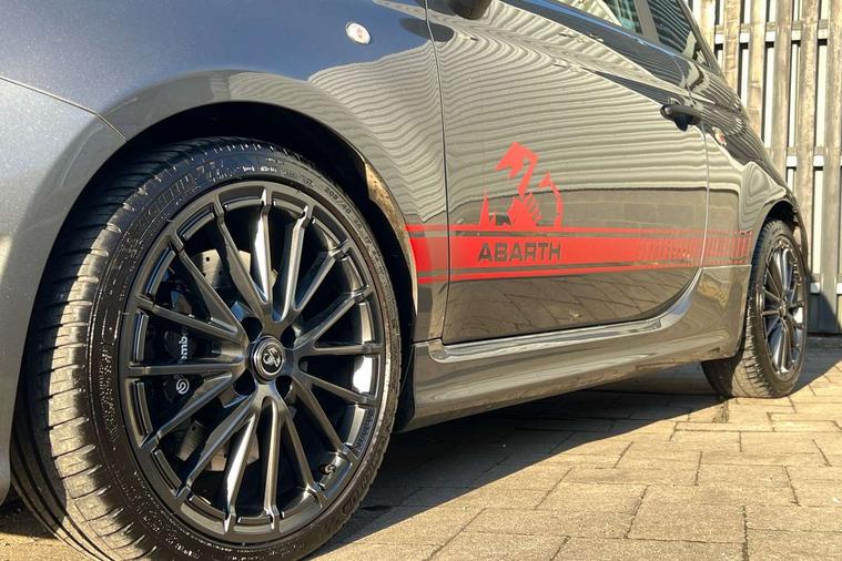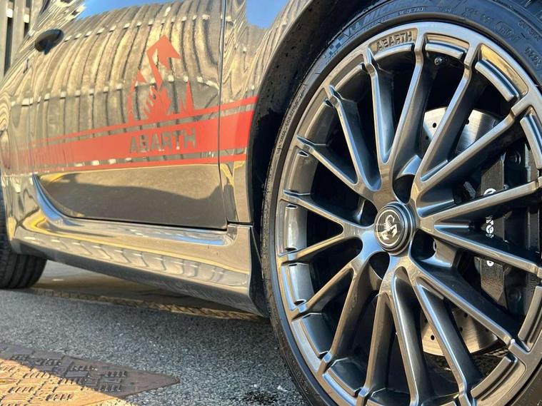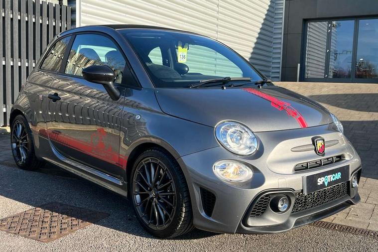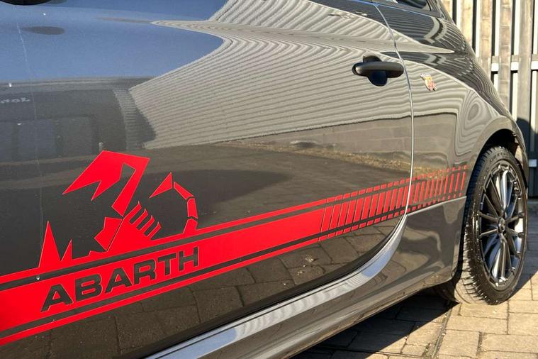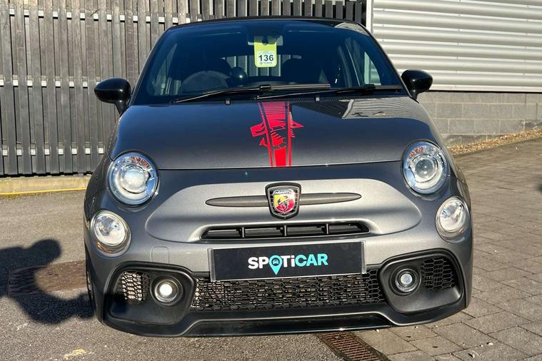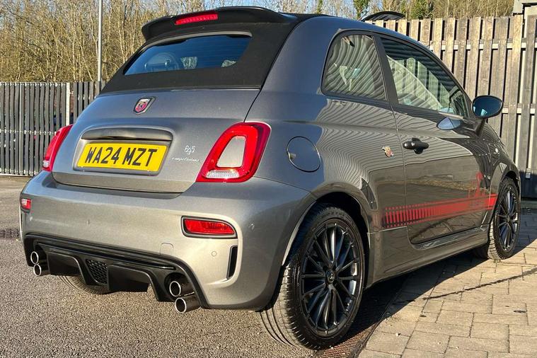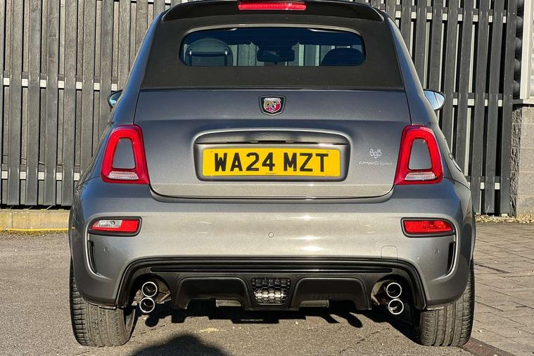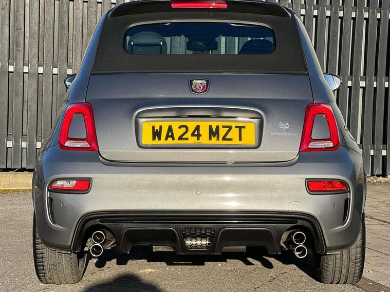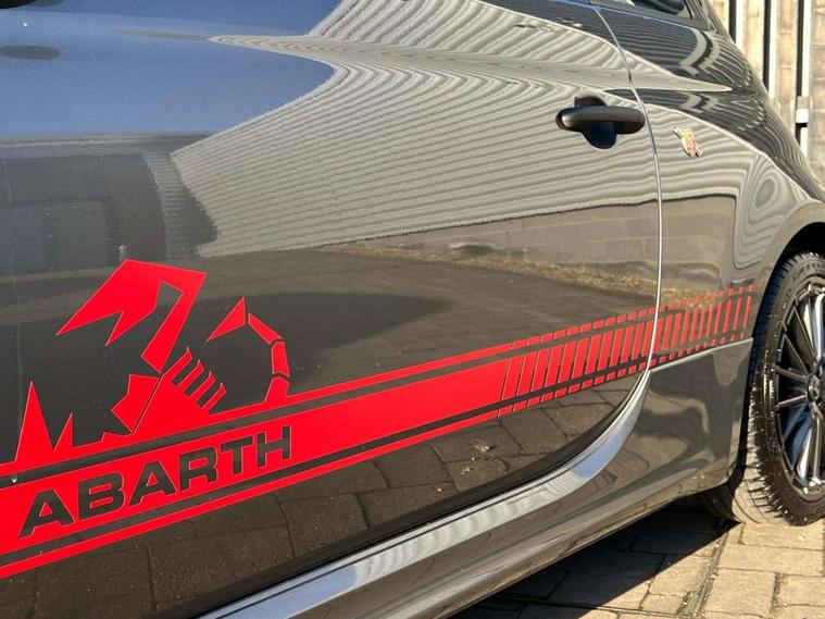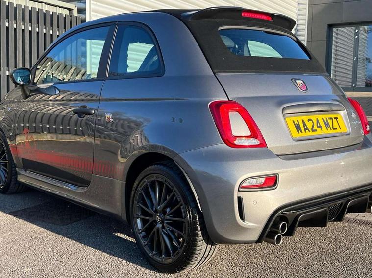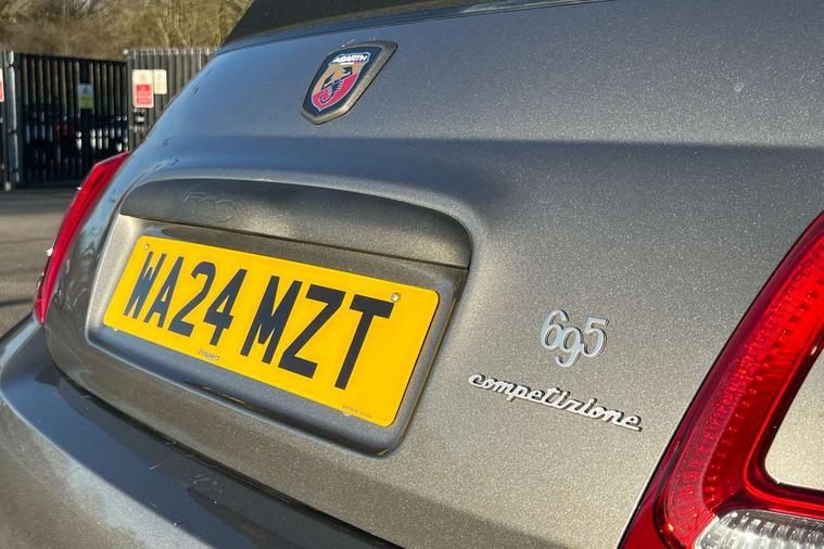 7" TFT instrument display with sports mode, Alcantara cockpit, Apple car play/Android Auto, Dualdrive PAS, eCall emergency call system, Garrett turbo, Rain and dusk sensors, Rear parking sensors, Sports button, Trip computer, Wakeup screen for 7" radio, Koni front and rear suspension with Frequency Selective Damping technology, Torque transfer control (TTC), 3rd brake light, Electric adjustable heated door mirrors, Electric front windows, Electrically operated soft top, Front fog lights, LED daytime running lights, Oil cap with key, Privacy glass, Rear boot, Rear window defroster, Tar cold grey front and rear bumper mouldings and door handles, 12V socket, 2 seat bench in 2nd row, Aluminium gearknob, Driver/front passenger seat height adjustment, English handbook, Floor mats, Front head restraints, Front passenger seat memory, Glovebox, Height adjustable steering wheel, High performance BMC air filter, Rear headrests, Single front passenger seat, Sports steering wheel in leather and Alcantara with carbon fibre detailing, Stainless steel pedal covers, Competizione mechanical limited slip differential pack - 695, Tech Pack - 695/695C, 240x11 mm Drilled rear brake discs, 305x28 mm Drilled and ventilated front brake discs, ABS, Driver and passenger airbags, Drivers knee airbag, ESP + ASR/MSR + HBA + Hill holder, Front side airbags, Head protection side airbag, Tyre pressure monitoring system, Window airbags, Alarm, Immobiliser, Power door locks, Remote central locking, Tar cold grey dashboard, 17" Montecarlo alloy wheels, Fix and go kit,