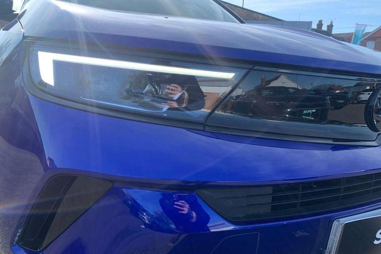 10" digital instrument cluster, Active drive assist, Adaptive cruise control, Digital instrumentation with digital speedometer, rev counter, fuel and water temperature gauge, Driver attention alert, Driver drowsiness alert system, Driver information display with multi function trip computer, audio info, digital clock and outside air temperature with ice warning function, Front and rear parking distance sensors, Lane keep assist system (LAS) with Lane departure warning system (LDWS), Lights on audible warning, Panoramic rear view camera, Power assisted speed sensitive steering, RDS with traffic programme, Side blind spot alert and flank guard, Speech recognition, Start/stop system, Vauxhall connect with e-Call, WiFi connectivity, Wireless phone projection with Apple CarPlay and Android Auto, Sports chassis, 2 rear USB connection, 6 speakers, AM/FM stereo radio with 36 station presets, DAB Digital radio, Front USB connection, Mobile phone portal - bluetooth connect, vehicle microphone, handsfree calls, SMS read out and reply, phone book access, Multimedia pure panel navigation system with 10" colour touchscreen and 15W wireless charger, Steering wheel mounted controls, Adaptive brake lights, Automatic headlamp levelling, Automatic lighting control with tunnel detection, Black DLO, Black door mirror housings, Black Griffin logo and vizor frame, Black lettering and emblems, Black upper window moulding, Body colour door handles, Body colour front and rear bumpers, Body colour skid plates, Dark tinted rear side windows, Electrically adjustable and heated door mirrors, Electrically foldable door mirrors, Electrically operated front and rear windows with safety auto reverse and one touch up/down facility, Electrochromatic frameless auto dimming rear view mirror, Hazard warning lights, Heated rear window+rear wash/wipe, High gloss black front and rear bumper inserts, High gloss black painted claddings, lower grille and front lateral inserts, High gloss black painted lateral moulding, Integrated black tailgate spoiler, IntelliLux matrix headlights with advanced forward lightning and anti glare beam, LED 3rd brake light, LED daytime running lights, LED side repeat indicators, Rain sensitive windscreen wipers, Rear side wing doors, Reversing light, Shark fin antenna, Solar heat absorbing windscreen and windows, Windscreen and side window demist vents, 12V Accessory socket, 3 seat bench in 2nd row, 4 speed fan with illuminated controls, 4 way electrical driver lumbar adjustment, 6 way adjustable front passenger seat including height adjustment, 60/40 split folding rear seat, Air recirculation system, Ambient lighting, Black headliner, Cabin particulate filter - removes dust, airborne particles and pollen, Chrome effect interior door handles, Door pockets with two litre capacity, Driver and passenger heated seats, Driver and passenger sun visors with vanity mirror, Driver seat massage function, Electronic climate control (ECC), Four adjustable facia vents, Four load restraint lashing eyes, Front centre armrest with storage, Front driver and co-driver side articulated grab handles, Front head restraints, Front map reading lights, Front seat back storage pockets, Fully carpeted load area, Heated steering wheel, Interior courtesy light, Interior tailgate handle, Luggage compartment cover, Luggage compartment lighting, Moveable boot floor, Reach + rake adjustable steering column, Rear Reading Lamps, ReNewKnit fabric/leather upholstery, Single front passenger seat, Three height adjustable rear seat head restraints, Twin gas assisted tailgate struts, 2x Isofix child seat fitting on outer rear seats, 3x3 point rear seat belts, Anti-lock braking system (ABS), Child proof locks on rear doors, Cornering brake control, Deactivation switch for front passenger front and side impact airbags, Drag torque control, Driver and front passenger airbags, front seat side impact airbags, full size curtain airbags, Electronic brake force distribution, Electronic Stability Programme (ESP), Emergency brake assist, Enhanced automatic emergency braking with pedestrian and bicycle detection, Forward brake assist, Forward collision alert at all speed, Hill start assist, Inertia reel lap and diagonal seatbelts for all seats, Manual parking brake, Seatbelt unfastened audible warning and warning light, Straight line stability control, Traction control, Tyre pressure monitoring system, Electronically protected audio equipment, Engine deadlock immobiliser, Freewheeling door locks, Key left in ignition audible warning, Keyless entry and start, Locking wheel nuts, Remote control central locking, Remote control ultrasonic security alarm system, Visible vehicle identification number, Black facia with silver trim insert, Light grey trim inserts on front doors, Vegan door inserts, 18" Black diamond cut alloy wheels,