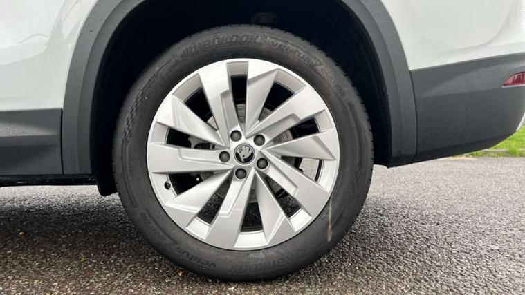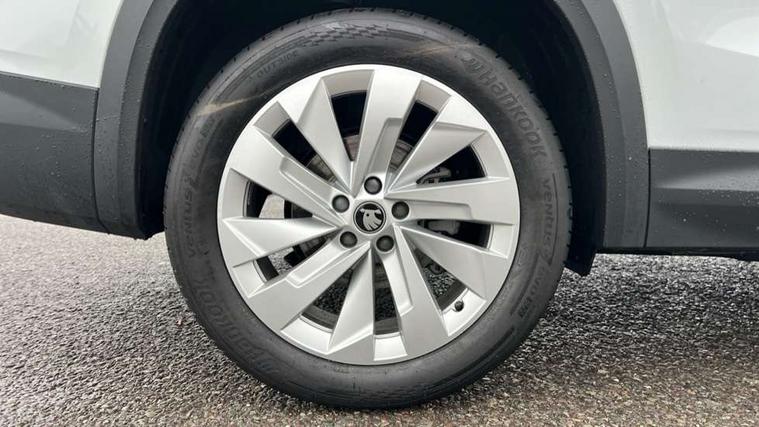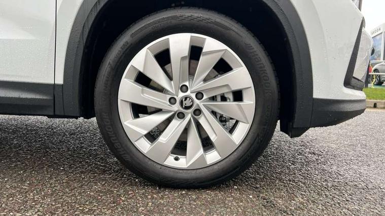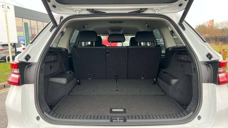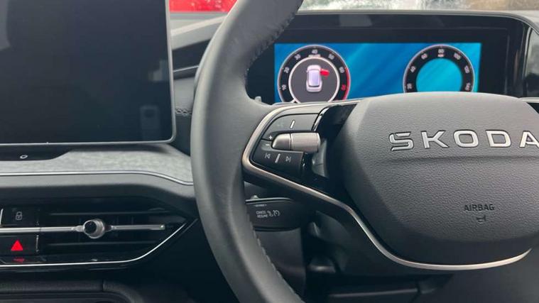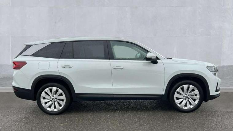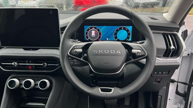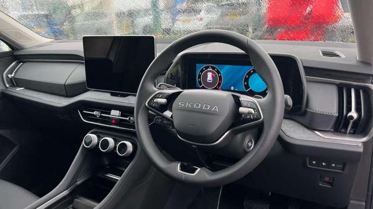 13" satellite navigation touchscreen display, Blind spot detection with door exit warning, Bluetooth system, ChatGPT functionality, Driver alert - Fatigue and drowsiness monitor, Dry display cleaner, Emergency call, Front and rear parking sensors, Front cross traffic assist, Lane assist, PAS, Rear traffic assist, Tailgate unlocking from outside, Traffic sign recognition, USB C Port x 2 in front centre console, Virtual Cockpit - 10.25" digital display, Voice control system, Wireless charging for two smartphones (15W) with cooling function, Wireless SmartLink for Apple CarPlay and Android Auto, Stop/start function, 2x USB-C in the rear, DAB Digital radio, Aero front windscreen wipers with intermittent function, Auto dimming rear view mirror, AWL (all weather lighting) and all weather light with cornering function, Black wheel arch surrounds, Body colour bumpers, Body colour door mirrors and handles, Cornering light and poor weather light, Electric folding /adjustable/separted heated/folding door mirrors, auto dimming with boarding sports and memory function, Electric front and rear windows, Exterior black decorative trims, Front grille with horizontal light strip, Heat insulating glass in windshield, Heated rear window, Ice scraper in fuel tank cap, Invisible tailpipe, LED daytime running lights, LED matrix headlights with AFS and LED fog lights, LED rear light with welcome effect and dynamic turn signals, LED third brake light in rear spoiler, Light assistant with automatic headlight control and coming home feature, Logo projection in door mirrors, Multiple matrix beam, Privacy glass, Rear roof spoiler, Rear side wing doors, Rear window wiper, Red decorative strip between rear LED lights, Safety reflectors on front and rear doors, Unique dark chrome design logo on alloy wheels, Window control switches with black trim, Windscreen wipers with rain sensor, Without engine designation, 1.5l bottle holder points in all door, 1x centre rear reading light, 2 seat bench in 3rd row, 2 spoke multi-function leather heated steering wheel with paddle shift, 3 configurable smart dials with 32mm coloured display, 3 seat bench in 2nd row, 4 foldable roof handles with rear coat hooks, Ambient interior lighting - Dashboard, front-door stowage compartments, front and rear door panels and footwell lighting, Automatic gear selector on steering column, Chrome interior door handles, Driver/front passenger reading lights, Fabric headlining, Fixed bench 40:60:40 split folding backrests, Front and rear floor mats, Front centre armrest with jumbo box storage compartment, cup holder and 12V socket, Height adjustable front headrests, Isofix child seat fittings in outer middle row rear seats and front passenger with top tether, Manually adjustable steering column, Pollen filter, Rear centre armrest with cupholders, Rear seat boot backrest release, Single front passenger seat, Skoda lettering on steering wheel, Storage pocket including mobile phone pockets on the backs of the front seats, Sunvisors with illuminated vanity mirrors, Three rear height adjustable headrests, Ticket holder on A Pillar, Tri zone climate control, Umbrella in door panel x1 made from sustainable materials, Upper and lower glovebox with card holder and coin compartment, USB C port by rear view mirror for charging only (15W), Exterior styling pack - Kodiaq, Auto door release and activation of warning lights in the event of an accident, Driver and front passenger airbag with knee airbag and front passenger airbag deactivation, Electric child locks, Electronic parking brake, ESC (incl. ABS+EMD+MSR+ASR+EDL+HBA+DSR+RBS+ESBS+MCB+TSA+XDS), Front assist with braking reaction to vehicles, pedestrians and cyclists, Front disc brakes, Fuel cut off safety device, Height adjustable front 3 point seatbelts + pretensioners, Hill hold assist, Junction assist with automatic emergency braking, Rear disc brakes, Safety vest holder in door, Seat belt reminder for all seats, Three point rear seat belts, Two tone horn, Tyre pressure monitor, Anti-theft wheel bolts, Immobiliser, Remote central locking with 2 keys,