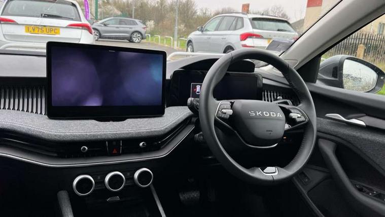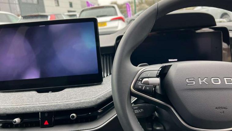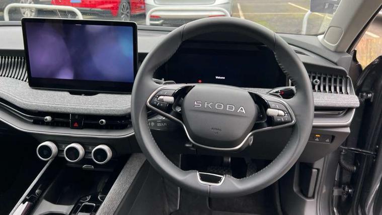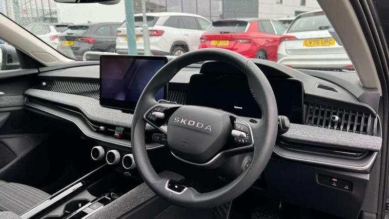 13" touchscreen display with satellite navigation, 4x USB-C ports (2x in front centre console and 2x in rear) (45W), Adaptive cruise control with speed assist, lane assist plus and traffic tram assist, Blind spot detection with door exit warning, Bluetooth system, CareConnect and Emergency Call, ChatGPT functionality, Drive mode selection, Driver fatigue sensor, Front assist with extended predictive pedestrian protection, Front cross traffic assist, PAS, Quick start all heating software functionality, Stop/start engine system, Traffic sign recognition, Turn assist with evasive assistance, Virtual Cockpit - 10.25" digital display, Voice control system, Washer for rear camera, Wireless charging for one smartphone (15W) with cooling function, Wireless smartlink apple carplay, SmartLink+ android auto, Mode 3 charging cable, 8 Speakers, DAB Digital radio, Display cleaner, FM radio connection, Web radio connection, Acoustic side windows and interior noise suppression, Backdrop lighting, Body colour door handles, Body coloured door mirrors, Chrome roof rails, Chrome window surround, Dark chrome grille surround, Electrically adjustable, heated, folding and driver side auto-dimming door mirrors with integrated indicators and logo projection, Frameless auto-dimming rear view mirror with USB-C, Ice scraper in fuel tank cap, LED 3rd brake light, Light assist with High beam control, Light assistant (coming/leaving home/tunnel light), Privacy glass, Rear fog light (x1), Rear roof spoiler, Rear side wing doors, Rear windscreen wiper, Unique dark chrome design logo on alloy wheels, Windscreen wipers with rain sensor, 12V socket 1x centre console 1x boot, 2x cargo elements in boot, 2x light in boot, 3 seat bench in 2nd row, 4x foldable bag hooks in boot, 60:40 Split folding rear seats, Bottle holders in the front doors 1.5 litre bottle and rear 1.5 litre bottle, Cup holder in front with easy open mat, Front armrest with storage box, Front comfort seats, Heated front seats, Height adjustable driver and front passenger seats with 2-way electric tilt, 4-way pneumatic lumbar support, and extendable thigh support, Height adjustable front and rear head restraints, Height adjustable front passenger seat, Illuminated glovebox, Interior lights with control switches, Isofix child seat fittings in outer rear and front passenger seats, LED front and rear reading lights, Massage function for front seats, Single front passenger seat, Skoda lettering on steering wheel, Storage compartment with cover, Storage pockets on back of front seats, Sun visors with illuminated vanity mirrors, Ticket holder on A Pillar, Tri zone climate control, Umbrella in driver's door, 3 rear seatbelts, 8 Airbags - Front driver and passenger, front side driver and passenger, centre, curtain front and rear, drivers knee, Crew protect assist, Driver and passenger seatbelts with warning light, Electronic parking brake, ESC including ABS, EBV, MSR, ASR, EDS, HBA, DSR, RBS, CBC, multi-collision brake (MKB) and Auto hold, Hill hold assist, Power operated child lock in rear doors, Alarm with interior monitoring tilt sensor and back up horn, Backrest remote release from trunk, Electronic engine immobiliser, Keyless start/stop, Remote central locking with SAFE system, Third key, Decorative front door sills, Tyre repair kit,