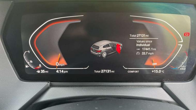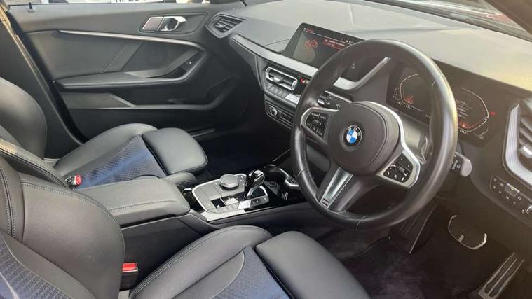 Active guard plus, Attentiveness assist, BMW ConnectedDrive online services, BMW Teleservices, Check Control warning system for monitoring of lights and door/luggage compartment open warning, Cruise control with brake assist, Eco pro mode, Front axle single joint with specific axle kinematics to minimise drive influences on steering + provide increased rigidity agile driving behaviour, Integrated owners handbook, Lane departure warning system, Oil sensor for level and grade, On board computer, Optimum shift indicator, Personal Profile, Pull away assistant, Rigidly mounted rear subframe - Multi link construction with separate spring / damper configuration and excellent driving characteristics, Speed limit Info including no-overtaking indicator, Speed limiter, Aluminium lightweight construction, Anti roll bar front and rear, Balancer shaft, Double VANOS twin scroll turbocharging system, Drive Performance Control, Electronic differential lock, High precision injection, M sport suspension, Petrol Particulate Filter, Twin tube gas filled shock absorbers with degressive characteristic curve, VALVETRONIC engine management, DAB Digital radio, Auto dimming rear view mirror, Automatic headlight beam throw control, Automatic windscreen wipers and automatic headlight, Body colour door handles, Body colour mirror caps, Body colour roof trims, Chrome 'M' logo side designation, Chrome exhaust twin tailpipes round 90mm in left, Chrome kidney grille frame with Satin Aluminium struts, Direction indicator side lights in exterior mirrors, Fading support, Folding side mirrors with auto dimming/folding wing mirrors with auto dimming, Follow me home headlights, Front and rear bumper system with replaceable deformation elements, Front and rear electric windows with open and close fingertip control, anti trap facility and comfort closing, Front door sill finishers in black plastic with M designation in metallic look, Green tinted heat protection glazing, Heated, electrically adjustable exterior mirror aspheric on driver side, convex on passenger side, High gloss shadowline window frame, Recess cover mirror frames and B/C pillar embelisher trim, High level third brake light, Integrated front windscreen with washer jets, LED daytime running lights, LED eyebrow turn indicators, LED front fog lights, LED Headlights, Lightweight engineering, Matt black air guide grilles, Matt black wheel arch trim, Model designation on electric bootlid, Nearside reverse light in rear light cluster, Preparation for high beam assistant, Rear fog lights, Rear side wing doors, Rear window wiper, Shark fin antenna, Trailer stabilisation logic, Visible VIN plate, Welcome lighting, 12V power socket in front centre console with blanking plug, 3 rear seat head restraints, 3 seat bench in 2nd row, 3 spoke sports leather steering wheel with black leather and stitching, pearl chrome decorative finish, specific M Badge, Anthracite headlining, Black boot net with lashing eyes, Cargo function on 2nd seat row, Child seat ISOFIX attachment for two outer rear seats and front passenger seat with anchorage points, Conditioned based service, Driver and front passenger seat heating, Folding rear clothes hook, Four grab handles integrated in roof lining, Front and rear door pockets with bottle holders, Front and rear side armrest integrated into door trim, Front armrest, Front sports seats, Glove compartment, Height adjustable front head restraints, Luggage compartment for bag hooks on left and right, foldable luggage compartment liner and four lashing eyelets, Manual adjust steering wheel, Multi-function controls for steering wheel, Single front passenger seat, Storage compartment in centre console, Sun visors with vanity mirrors and insert tab, Two front centre console cupholders, Two zone automatic air conditioning, Velour floor mats, Additional interior lighting pack - 1 Series, BMW live cockpit professional pack- 1 Series, Connected pack professional - 1 Series, Interior lights pack - 1 Series, M Sport exterior styling aerodynamics pack - 1 Series, 2 tone horn, 3 point seatbelts on all seats, front pyrotechnic belt tensioners, stopper and belt force limiters, rear coded belt buckles, Airbags - Front driver/passenger, front and rear curtain head protection, front side, manual deactivation of front passenger airbag, Anti lock braking system (ABS) with brake assist, BMW emergency call, Brake drying, Braking readiness, Child proof locking system in rear door, City braking function, Comfort modes, Cornering brake control, Crash sensor activating central locking release, hazard warning lights, fuel cut off, interior lighting + activation of safety battery terminal clamp, Driver and front passenger seat belt security check, Dynamic stability control + (DSC+), Dynamic Traction Control - DTC, Electrically operated hand brake including automatic hold function, Front and rear disc brakes, Seatbelt warning, Side impact protection, Tyre pressure monitoring system, Warning triangle and first aid kit, Central locking switch for all doors, fuel filler cap and luggage compartment, Deadlocking function system to all doors, Drive away locking system on all doors and luggage compartment with de-activated in iDrive settings, Locking wheel bolts, Remote control with integrated key with High-gloss Black inlay and M designation and 1 button for open/ close lock, window, open luggage compartment, Start/stop button illuminated in centre console with keyless engine start and auto start stop deactivation button, Thatcham Cat.1 alarm and immobiliser, Wheel slip limitation close to the actuator (ARB), Contrast stitching on instrument panel, Electrically powered 12V compressor, Reduced rolling resistance tyres,