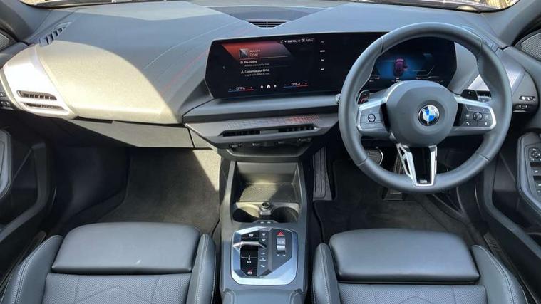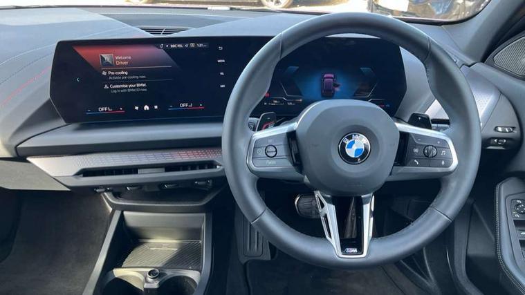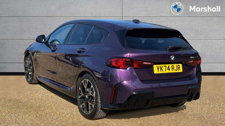 Active guard plus, Attentiveness assist, Bluetooth / WiFi interface for wireless connection of mobile terminal devices and audio streaming, BMW ConnectedDrive online services, BMW Live cockpit plus, BMW Teleservices, Check Control warning system for monitoring of lights and door/luggage compartment open warning, Eco pro mode, Electric power steering with Servotronic steering optimised at all speed ranges, Evasion assistant, Flat airvents in instrument panel with adjustable slats, Front and rear parking sensors, Front axle single joint with specific axle kinematics to minimise drive influences on steering + provide increased rigidity agile driving behaviour, Gearshift time display in manual mode, Integrated owners handbook, Left turn warning with brake function, My modes (Personal / Efficient / Sport), Oil sensor for level and grade, On board computer, Optimum shift indicator, Park assist including reversing assistant, lateral parking aid and reversing assist camera, Personal e-SIM, Personal Profile, Pull away assistant, Rigidly mounted rear subframe - Multi link construction with separate spring / damper configuration and excellent driving characteristics, Speed limit Info including no-overtaking indicator, Speed limiter, 49 litre fuel tank, Aluminium lightweight construction, Anti roll bar front and rear, Balancer shaft, Double VANOS twin scroll turbocharging system, Drive Performance Control, Electronic differential lock, Electronic selector lever, High precision injection, M Adaptive suspension, Petrol Particulate Filter, Steptronic transmission with double clutch, Twin tube gas filled shock absorbers with degressive characteristic curve, VALVETRONIC engine management, DAB Digital radio, Auto dimming rear view mirror, Automatic windscreen wipers and automatic headlight, Body colour door handles, Body colour mirror caps, Body colour roof trims, Chrome 'M' logo side designation, Chrome exhaust twin tailpipes round 90mm in left, Chrome kidney grille frame with Satin Aluminium struts, Direction indicator side lights in exterior mirrors, Electrically adjustable exterior mirror with mirror adjustment switch on drivers armrest and aspheric on driver side, convex on passenger side, Exterior M sport design elements, Fading support, Folding side mirrors with auto dimming/folding wing mirrors with auto dimming, Follow me home headlights, Front and rear bumper system with replaceable deformation elements, Front and rear electric windows with open and close fingertip control, anti trap facility and comfort closing, Front bumper panel with M specific design in vehicle colour with inserts in black high gloss, Front door sill finishers in black plastic with M designation in metallic look, Green tinted heat protection glazing, Heated rear window, High gloss black exterior mirrors, High gloss shadowline window frame, Recess cover mirror frames and B/C pillar embelisher trim, High level third brake light, Integrated front windscreen with washer jets, LED daytime running lights, LED eyebrow turn indicators, LED front fog lights, LED Headlights, Lightweight engineering, M identification on the sides, Matt black air guide grilles, Matt black wheel arch trim, Model badge on tailgate right, Nearside reverse light in rear light cluster, Preparation for high beam assistant, Rain sensor, Rear bumper panel with M-specific design in vehicle colour with inserts in black high gloss, Rear fog lights, Rear side wing doors, Rear window wiper, Shark fin antenna, Side sill covers with M specific design in body colour, Trailer stabilisation logic, Visible VIN plate, Welcome lighting, 12V power socket in front centre console with blanking plug, 3 rear seat head restraints, 3 seat bench in 2nd row, 3 spoke sports leather steering wheel with black leather and stitching, pearl chrome decorative finish, specific M Badge, Anthracite front and rear floor mats, Anthracite headlining, Black boot net with lashing eyes, Cargo function on 2nd seat row, Child seat ISOFIX attachment for two outer rear seats and front passenger seat with anchorage points, Conditioned based service, Driver and front passenger backrest net on rear, Driver and front passenger seat heating, Driver side folding compartment in instrument panel, Folding rear clothes hook, Footrest and pedals in black plastic, Four grab handles integrated in roof lining, Front and rear door pockets with bottle holders, Front and rear side armrest integrated into door trim, Front armrest with storage compartment, Gearshift paddles on steering wheel, Glove compartment, Height adjustable front head restraints, Luggage compartment for bag hooks on left and right, foldable luggage compartment liner and four lashing eyelets, Manual adjust steering wheel, Multi-function controls for steering wheel, Rear seat backrest with manual 60:40 split folding with 3 top tether clips integrated on rear of seat panels, Single front passenger seat, Storage compartment in centre console, Storage compartment in luggage compartment, Stowage of the parcel shelf in luggage compartment trim, Sun visors with vanity mirrors and insert tab, Two front centre console cupholders, Type C two USB ports in rear centre console, Upper retaining strap integrated into backrest rear panels, Connected pack professional - 1 Series, Interior lights pack - 1 Series, M Sport exterior styling aerodynamics pack - 1 Series, 2 tone horn, 3 point seatbelts on all seats, front pyrotechnic belt tensioners, stopper and belt force limiters, rear coded belt buckles, Airbags - Front driver/passenger, front and rear curtain head protection, front side, manual deactivation of front passenger airbag, Anti lock braking system (ABS) with brake assist, BMW emergency call, Brake drying, Braking readiness, Child proof locking system in rear door, Comfort modes, Cornering brake control, Crash sensor activating of airbags, Unlocking doors, hazard warning lights, interior light, safety battery terminal, Driver and front passenger seat belt sec