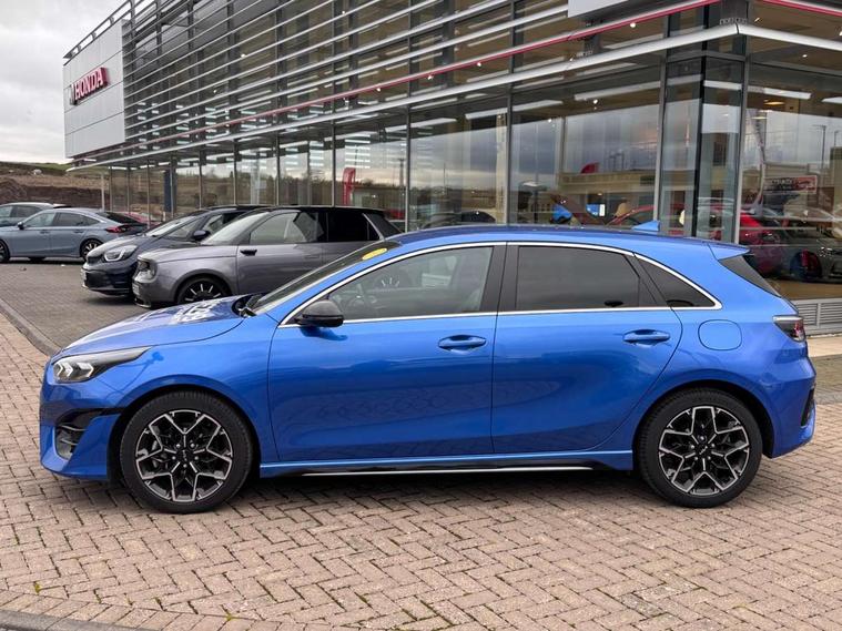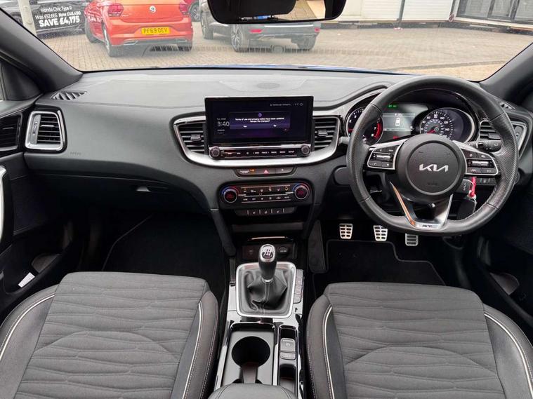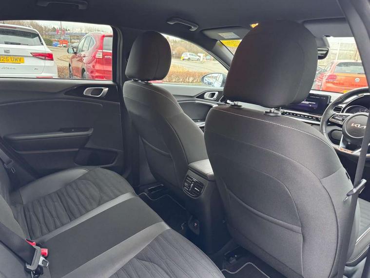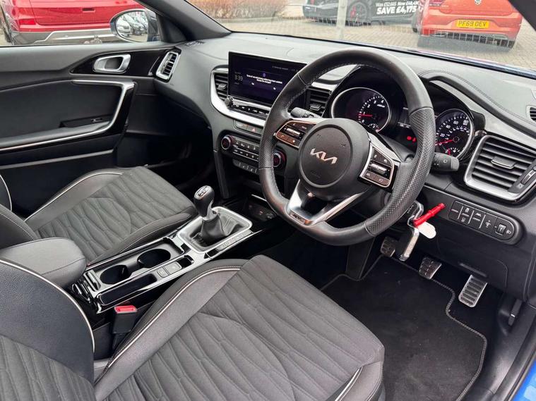 10.25" touchscreen satellite navigation, 4.2" supervision colour cluster display, Apple car play/Android Auto with voice control, Bluetooth with Voice Recognition & Music Streaming, Cruise control + speed limiter, Driver Attention Warning (DAW), Emergency call service, Emergency stop signalling system, Forward Collision-Avoidance Assist (FCA) - City/Pedestrian/Cyclist, Kia connect UVO, Lane Following Assist (LFA), Lane keep assist, Manual speed limit assist, Motor driven power steering, Rear parking sensor, Reversing camera system with dynamic guidelines (Integrated into centre fascia screen), Trip computer, Intelligent Stop and Go, 6 speaker audio system, DAB Radio with MP3, Illuminated USB ports, Steering wheel mounted controls, USB Fast Charger in Front Centre Console, USB port for connection of a media device, All-round Electric Windows with Front Auto Up & Down Function, Auto dimming rear view mirror, Automatic defog system, Automatic headlights control, Body colour bumpers, Body colour exterior door handles, Body coloured and dark chrome rear skid plate, Body coloured side sill mouldings, Dark chrome window surround, Electric adjustable/heated/folding door mirrors with LED Indicators, Heated rear window with timer, High beam assist, High gloss black and dark chrome radiator grille, High gloss black door mirrors, High Gloss Black rear spoiler, LED daytime running lights, LED front fog lights, LED Headlights, LED High-mounted Brake Light, LED honeycomb rear light, LED rear combination lights, LED rear fog light, Privacy glass (rear side windows and tailgate), Rain sensing front wipers, Rear side wing doors, Rear wash/wipe, Satin chrome dual exhaust trim, Tinted glass, Wide view drivers door mirror, Windscreen Washer Level Warning, 1 x Front 12V socket, 12V power socket in luggage compartment, 3 seat bench in 2nd row, 3 x passenger assist grips, 60/40 split folding rear seat, All-round height adjustable headrests, Aluminium pedals, Black headlining, Centre console storage box/armrest, Cloth/faux leather upholstery, Cupholders in centre console, Cupholders in rear armrest, Dash illumination dimmer switch, Door courtesy lamps, Driver & Front Passenger Sunvisors with Vanity Mirror Illumination & Ticket Holder, Driver + front passenger electric lumbar support, Driver's seat height adjuster, Dual Height Luggage Area Floor, Dual zone automatic air conditioning, Faux leather door centre trim, Front and rear door storage, Front cabin map light with sunglasses case, Front Passenger Seat Height Adjuster, Front seat back pockets, Gear shift indicator, Heated front seats, Heated steering wheel, Interior door lock/unlock function, ISOFIX Child seat top tethers and anchor fixings, Leather D-Cut steering wheel, Leather handbrake, Luggage area light, Luggage area parcel shelf, Luggage hooks, Rear centre armrest, Rear coat hooks, Satin chrome interior door handles, Single front passenger seat, Tilt/telescopic adjustable steering wheel, All round 3-point seatbelts, Anti-lock braking system (ABS), Brake assist system, Dual front side airbags, Dual horn, EBD - Electronic brakeforce distribution, Electronic parking brake, Electronic stability control (ESC) and vehicle stability management (VSM), Front passenger airbag cut-off switch, Height adjustable front seatbelts, Hill start assist control (HAC), Impact sensing auto door unlocking, Rear door child safety locks, Seatbelt reminder warning, Twin curtain airbags, Twin front airbags, Tyre pressure monitoring system, Alarm system, Engine Immobiliser & Deadlocks, Locking wheel nuts, Remote central door locking with fold away key, Speed sensitive auto door locking, Black high gloss front console garnish & door trim, Satin Chrome Fascia Trim, 17" GT-Line alloy wheels, Tyre mobility kit,