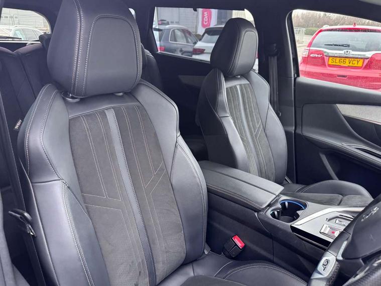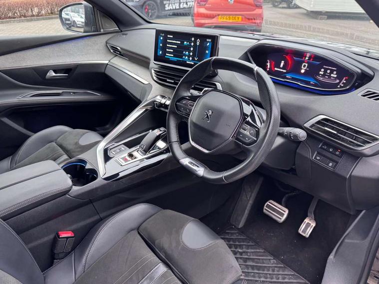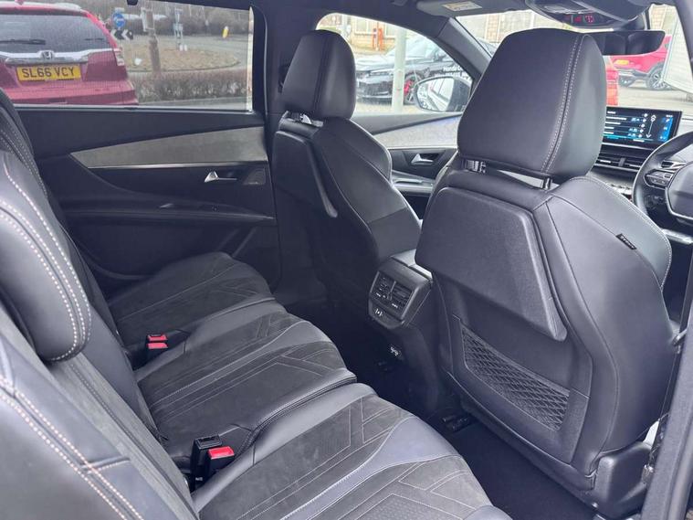 10" High Definition Capacitive Touchscreen, 3D connected navigation + voice control, Bluetooth telephone connection, Drive mode selector (Eco, Normal and Power), Driving timer alert system, Extended traffic sign recognition, Exterior temperature indicator with ice warning, Lane departure warning system, Mirror screen with Apple CarPlay and Android auto, Motorised Electric Tailgate (key plip and foot operated), Multi function trip computer, Passive blind spot monitoring without Steering correction, Peugeot i-cockpit with configurable 12.3" headup digital instrumental panel and compact sports steering wheel, PEUGEOT SOS and assistance, Rear passenger USB charging sockets (x2) (type A), Speed limit recognition and recommendation, Sports button, Dynamic stability control and electronic anti-skid system, Bi Tuner radio including DAB, Focal premium HiFi sound system, USB socket, Auto self levelling headlights, Automatic activation of hazard warning lights, Black diamond roof and nera black door mirror shells, Body colour door handles, Body coloured rear spoiler, Body protectors in black, Chrome side window trim, Dark tinted rear side and tailgate windows, Door mirrors with auto dipping function in reverse gear, Dynamic frameless design in front radiator grille, Electric folding door mirrors with exterior courtesy LED lighting, Electrically heated door mirrors, FOCAL tweeter speaker grilles in 'belem bronze metal effect finish, Frameless electrochrome rear view mirror, Front windscreen wiper with magic wash cleaning system, Full LED headlights with fog mode, Gloss black B and C pillar and aerodynamic deflector trim, Gloss black rear cluster connecting strip, GT emblem (front wings and tailgate), Headlights left on audible warning, Heated rear windscreen with integrated antenna, LED daytime running lights in fang style, LED front indicator, LED rear lights including reversing lights, scrolling indicators and PEUGEOT '3Claw Effect' light signature (with daylight function), LED rear number plate lighting, LED side indicator lights integrated into door mirrors, One touch electric front/rear windows with pinch protection, Rear windscreen wiper with auto activation when reversing, Silver front lower bumper, Twin exhaust effect trim, 2 cupholders in front centre console, 3 x 12V power sockets, 4 Grab handles retractable and damped, Aikinite stitching in armrest, gear lever and dashboard facia, Aluminium pedals, Automatic and dual zone diffusion air conditioning system, Blue ambient lighting for connecting zone, Blue ambient lighting to front door panels, central storage and cupholders, Blue ambient lighting to head up instrument panel, Brumeo fabric trimmed door armrests, Central front armrest with butterfly wing opening, Tramontane double stitching and illuminated storage compartment, Electric power steering with reach and rake adjustable steering column, Flocked front door pocket interior with blue ambient lighting, Flocked glovebox interior, Fold flat front passenger seat with picnic table, Footwell lighting, Front ambient lighting, Front interior light with reading spotlights (x2), row 2 interior light with reading spotlights (x2), Front passenger seat manual adjustment (longitudinal and back rest angle), Gear shift indicator, Height adjustable driver seat, Height adjustable passenger seat, Illuminated glovebox, Illuminated vanity mirror, Isofix child seat fittings x 3 in the second row, LED interior lighting, Map pocket on front seat backs, Mistral floor mats with Aikinite contrast stitching, Mistral full grain perforated leather steering wheel with aikinite stitch detail and satin chrome 'GT' emblem, Rear ventilation system, Retractable parcel shelf, Roof lining and windscreen pillars in Mistral black, Satin chrome digital instrument panel and touchscreen trim, Satin chrome front door panel recess trim, Satin chrome interior door handles, Satin chrome scorpion's tail and toggle switch trim, Seatbelt not fastened audible and visual alert for front seats, Seatbelt unfastened on the move audible and visual alert for front and rear seats, Third row seats (can be stored under bootfloor or removed completely), Twin rear coat hooks, Children's pack - 5008, Drive Assist Plus Pack - 5008, Driver sport pack - 5008, Visibility pack - 5008, Visio Park 2 pack - 5008, ABS + EBD + EBA, Adaptive driver and front passenger airbags including passenger airbag deactivation function, Electronic parking brake, ESP and ASR traction control with deactivation switch, Five 3 point rear safety belts, Front and rear curtain airbags, Front optimised safety headrests and rear retractable headrests (x3), height adjustable, Front side airbags, Front three point retractable seatbelts height adjustable with pre tensioners and force limiters, Front ventilated disc brakes, Hill start assist, Rear disc brakes, Rear three-point retractable seatbelts (x3) with pre-tensioners and force limiters in the outer rear seats, Two tone horn, Automatic door locking when moving off, Child lock control of rear doors and windows, Electronic code immobiliser, key operated exterior door lock from the left hand door, Keyless Start, Perimetric and volumetric alarm with lift and tilt sensor, Peugeot Open and Go System, Remote control central locking with two plip keys, Satin chrome dash trim, Puncture repair kit including compressor, sealant cartridge and towing eye,