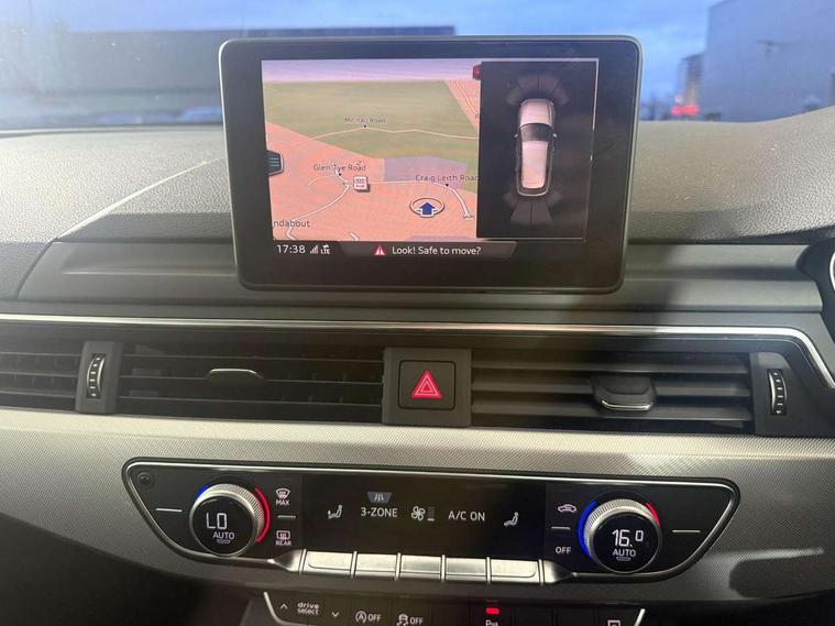 Audi drive select, Audi Pre sense collision avoidance, Audi smartphone interface, Electro-mechanical PAS, Power boot opening and closing, Service interval indicator, Stop/start button, Voice control system, 2 USB ports, Aux input, DAB digital radio module, MMI radio plus with CD player, Acoustic windscreen, Air inlets in titan black with two horizontal inlays in chrome, Auto dimming rear view mirror, Automatic headlights + automatic windscreen wipers, Body colour bumpers, Chrome door handles, Chrome rolled exhaust, Electric adjustable heated door mirrors, Electric front windows, Electric rear windows, Headlight range control, LED daytime running lights, LED indicators in door mirrors, Rear diffuser in Twilight grey matt, Rear wiper, 3 zone climate control, Aluminium door sill trims, Front centre armrest with 12v socket, Front/rear floor mats, Gearshift paddles, Isofix child seat preparation for front passenger/outer rear seats inc passenger airbag deactivation, Jack and tool kit, Reach + rake adjustable steering column, Rear headrests, Retractable load area cover, Split folding rear seats, Sunvisors with vanity mirrors, Top tether anchor plate for isofix child seat, 3 point seatbelts on all rear seats, ABS/EBD, Adaptive driver and front passenger airbags, Electromechanical parking brake, ESP, First aid kit, Front head airbags, Front seatbelt pretensioners + load limiters, Front side airbags, Multi-Collision braking, Seatbelt warning, Traction control, Tyre pressure monitoring system, Warning triangle, Keyless start, Locking wheel bolts, Remote central locking, Thatcham category 1 alarm + immobiliser,