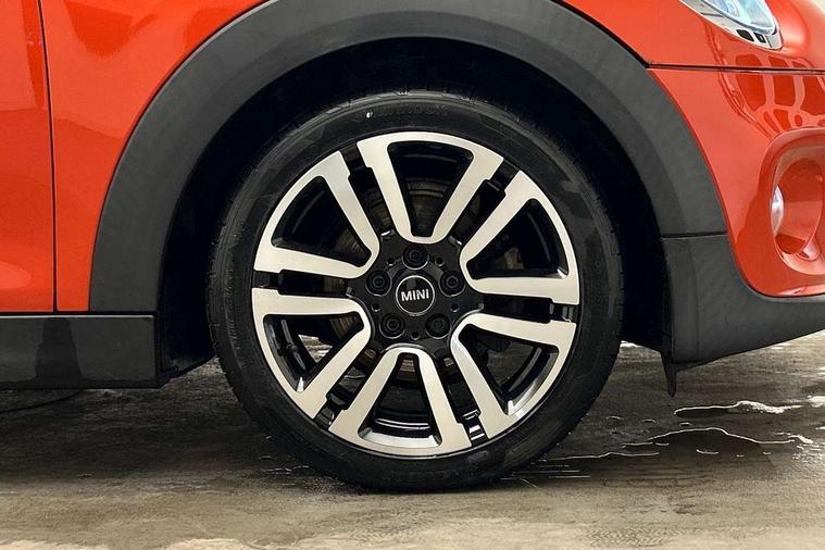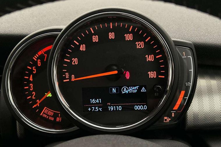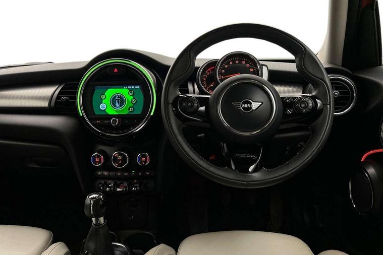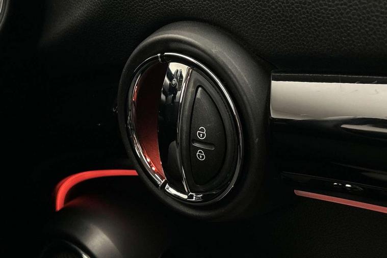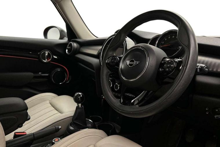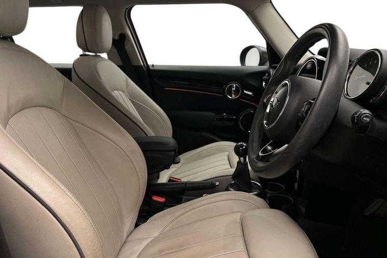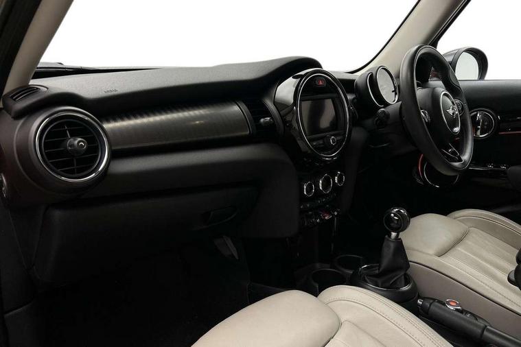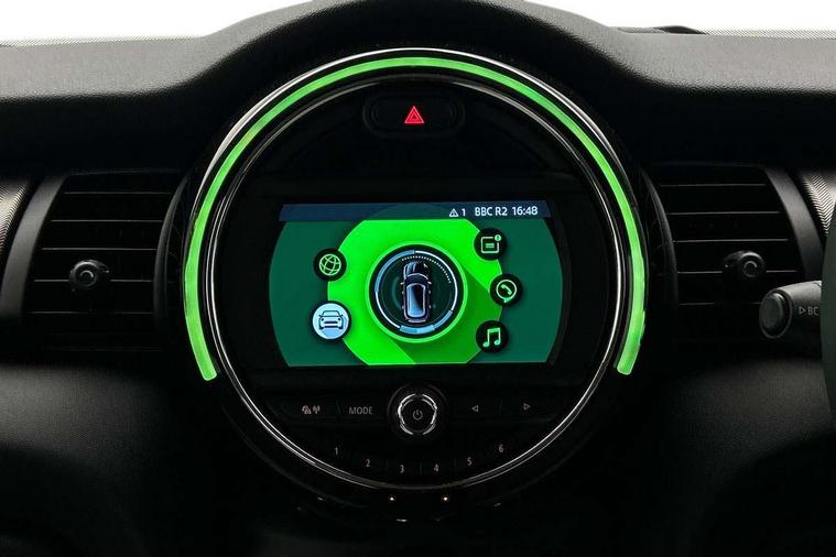 Compatible mobile phone bluetooth with audio streaming, Cruise control with brake assist, Instrument cluster, Mini E-call, MINI TeleServices, On board computer, Service interval indicator, 6.5" touchscreen with LED ring, FM tuner and DAB digital radio, Automatic headlight activation switch, Body colour fuel filler cap, Chrome border high gloss black slats radiator grille, Chrome line exterior, Dynamic brake lights, Electric front+rear windows, Heated rear window, Heated windscreen washer jets, LED headlight with closed ring and daytime driving lights, Left exhaust tailpipe with chrome finisher, Metal door sill strips with MINI imprint, Model logo Cooper on right of tailgate, Rain sensor window wipers, Rear fog lights, Rear LED lights with union jack design, Rear window wiper, Side scuttle panel with integrated indicator, Sun/heat protection glass, White indicator lenses, 12V Accessory socket in centre console, 4 lashing eyes in luggage compartment, 60/40 split folding rear seat, Chrome interior highlights, Cupholders, Front and rear isofix with front passenger airbag deactivation, Glove compartment, Height and length steering column adjustment, Interior lighting with 12 basic colours selectable via toggle switch in roof, Leather gearshift lever and handbrake gaiters, LED reading lights, vanity mirror lights, front foot well light and spotlight on front seats, Manual air conditioning, Mechanical seat adjustment, driver seat height adjust, forward/back and front seats backrest, Mini logo projection on floor from drivers exterior mirror, MINI Yours leather steering wheel with silver contrasting stitching with MINI Yours badge, Multifunction steering wheel, Storage compartments in doors, Sunvisors with vanity mirrors, 3 point seatbelts on all five seats, 6 Airbags - front, side, head and seat belt tensioners, Anti-lock braking system (ABS), DSC - Dynamic Stability Control, Front and rear disc brakes, Hill start assist, Single tone fanfare horn, Tyre pressure monitoring system, Alarm system with tilt sensor, monitoring doors, bonnet interior and tailgate, Electronic vehicle immobiliser, Start/stop toggle with keyless go, Chrome line interior, Tool kit,