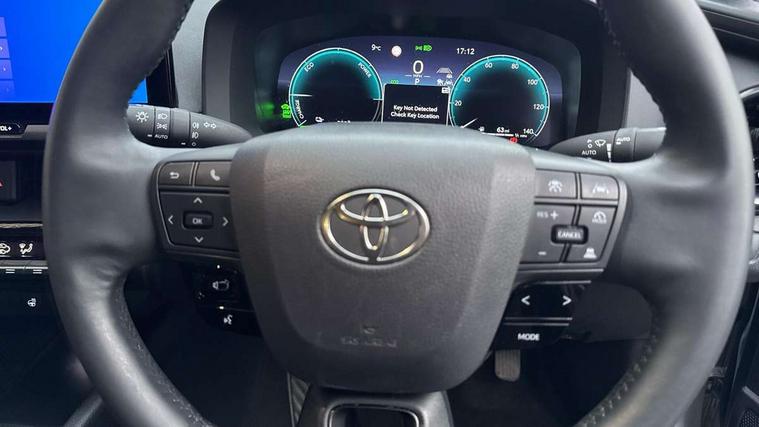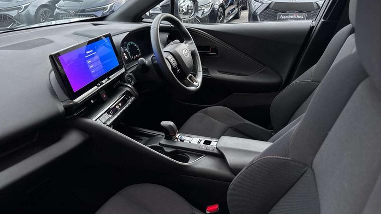 12.3" Digital Combimeter, 12.3" multimedia display screen, 4 rear parking sensors, Acceleration suppression at low speed, Adjustable speed limiter, Blind spot monitor, Bluetooth connectivity, Built-in and cloud navigation, Colour multi information display, Digital speedometer, Digital tachometer, eCall emergency call system, Electric power steering, Emergency driving stop system, Emergency steering assist, Front parking sensors with auto braking, Hybrid system indicator, I/P center cluster X, Instrument finish panel, Intelligent adaptive cruise control, Intelligent parking sensors (objects and vehicle), Lane Departure Alert (LDA) switch on steering wheel, Lane departure alert with steering control, Lane trace assist, Memory on speed limiter, MyT connected services, Power tailgate, Pre collision system with emergency steering assist, Pre collision system with intersection detection, Proactive driving assist (PDA), Push button tailgate release, Rear cross traffic alert, Remote boot door release in cabin, Reversing camera, Reversing camera display in audio screen, Road sign assist - RSA, Safe exit assist, Smart entry and push button start, Smart voice assist, Start and stop, Static guide lines on reversing camera, Toyota Smart Connect multimedia system with wireless Smartphone integration incl Apple CarPlay, Voice recognition, Wireless phone charger, Electric accelerator pedal, Fast charger 32A Mennekes cable, Front and rear stabilizers, Vehicle Stability Control (VSC), 6 speakers, Aux-in connector, DAB Radio (Digital Audio Broadcasting), Front USB Type-C connector, Rear USB Type-C connector, Road events, Toyota touch 2 with go navigation, USB connector integrated with radio and CD player, Anti-jam protection on power windows, Auto dimming rear view mirror, Auto high beam, Auto up and down function on all power windows, Auto wipers, Automatic headlights, Automatic headlights cut-off, Automatic rear flashing hazard lights, Automatically retractable door mirrors, B - Pillar in Black, Black centre air vent, Black painted insert on boot door, Black side air vents, Black wheel arch mouldings, Body colour door handles, Body coloured front bumper, Body coloured rear spoiler, Body coloured roof, Clear headlights design, Door scuff plates, Electric heated door mirrors, Emergency brake-light signal (EBS), exhaust tail pipe and diffuser, Flush front and rear door handles, Follow me home headlights, Front and rear power windows, Fuel caution label, Gloss black door belt moulding, Grained front side grille, Grained lower front grille, Grained rear bumper extension, Gunmetal surround on lower front grille, Headlight cut off reminder, LED daytime running lights, LED fog lights, LED High mounted stop light, LED rear brake lights, LED rear combination lights, LED reverse light, Manual headlight levelling, Noise reduction layer on windscreen, Power adjustable door mirrors, Pre wiring for towing hook, Privacy glass, Puddle lights, Rain sensor, Rear bumper with gunmetal insert, Rear fog lamps, Rear side wing doors, Rear tailgate, Rear window defogger, Rear window wiper, Reflective LED headlights, RHD aiming, Satin chrome centre air vent surrounds, Satin chrome insert on centre air vents, Satin chrome insert on side air vents, Satin chrome side air vent surrounds, Silver large centre cap surrounds, Standard Front Side Grille, Standard roof, Turning signal integrated in door mirrors (LED), UV-filter on driver and passenger windows, UV-filter on rear windows, Variable front intermittent wipers, Wing liner front with sil rear without sil, 12v power outlet - front, 2 rear coat hooks, 220v power output in luggage compartment, 3 bench rear seats in 2nd row, 3 rear headrests, 3 spoke synthetic leather steering wheel, 60/40 split folding 2nd row rear seats, Adjustable rear headrests, Ambient lighting on front doors, Assist grips front and centre pillar, Audio and telephone switches on steering wheel, Boot light, Boot under floor storage, Clean air filter, Cloth upholstery with grey stitching, Cover front console box, Dark grey interior door handles, Door Edge Protection Film, Driver and front passenger personal light, Driver and front passenger Whiplash Injury Lessening seats, Dual zone automatic air conditioning, Fabric door trim, Floor mats - border/stitching, Front console box, Front cupholders, Front door pockets, Front headrests, Front room light, Front sports seats, Full-flat loading, Glovebox with internal light, Hard tonneau cover, Heat pump system with humidifier, Heated driver and front passenger seats, Heated steering wheel, Hooks for luggage holding net, Hybrid key cover, Illuminated entry system, ISOFIX child restraint system, LED Overhead Console light, Light on driver sun visor, Light on passenger sun visor, Luggage floor board with protection mat, Manual telescopic steering wheel, Manual tilt steering wheel, Manually height adjustable driver seat, Manually height adjustable front passenger seat, Manually reclining driver seat, Manually reclining front passenger seat, Manually sliding driver seat, Manually sliding front passenger seat, Mat Fitment, Microphone on front personal light, Mirror on driver sun visor, Mirror on passenger sun visor, Multimedia switches on steering wheel, Pollen air filter with deodorising odour eliminator, Power adjustable lumbar support on driver seat, Rear door cup holder, Rear door pockets, Rear passenger personal lights, Remote air conditioning, Single compartment glovebox, Single front passenger seat, Slow opening on lower glovebox, Synthetic leather gear shift knob, Voice recognition switch on steering wheel, 3x3 point rear seat belts, ABS+EBD+Brake assist, Driver and passenger side airbag, Driver knee airbag, Electronic parking brake, Front and rear seatbelt reminder, Front passenger airbag on/off switch, Front to front oncoming car and motorbike daytime detection, Hill start assist control (HAC), Pre collision system with pedestrian, cyclist and motorbike day detection, 