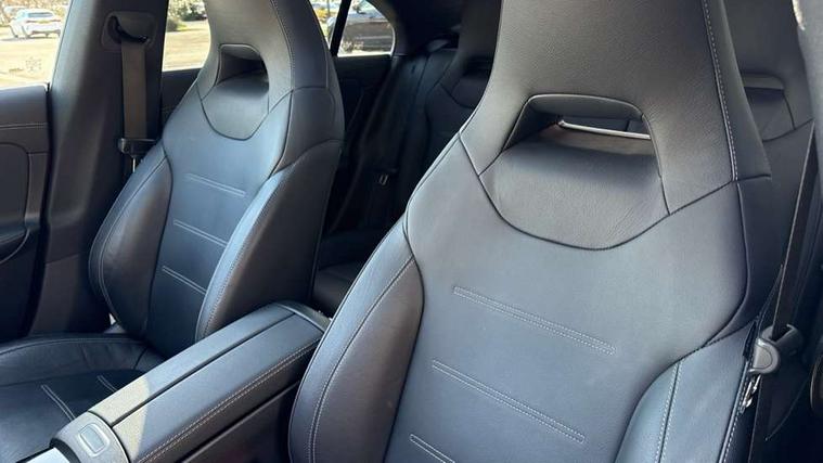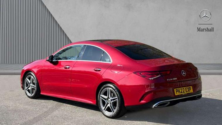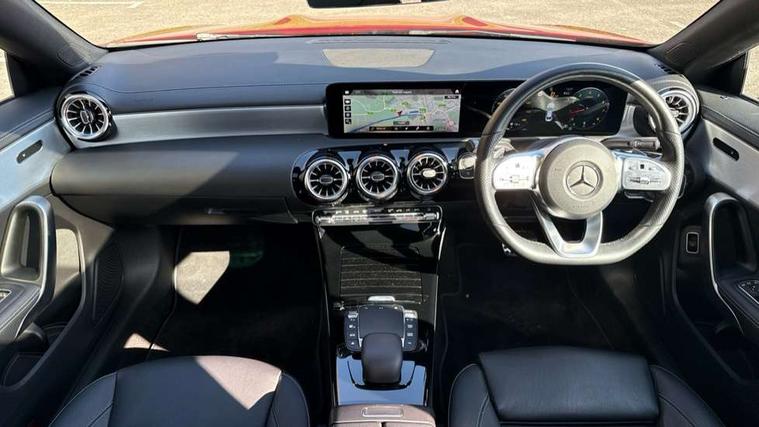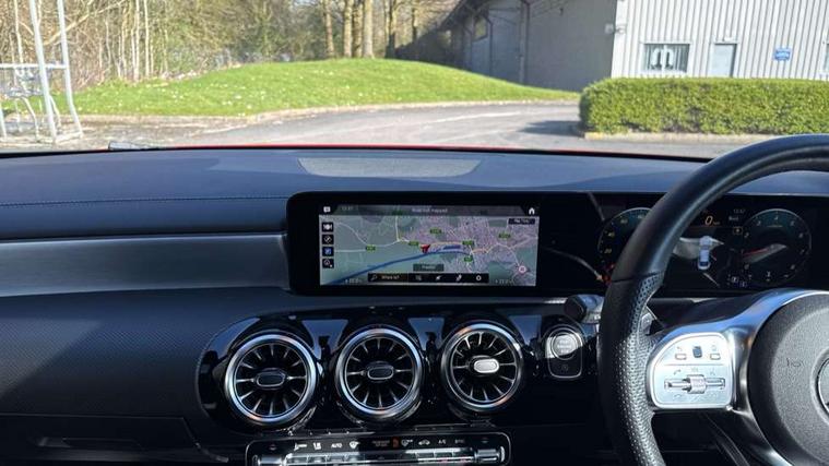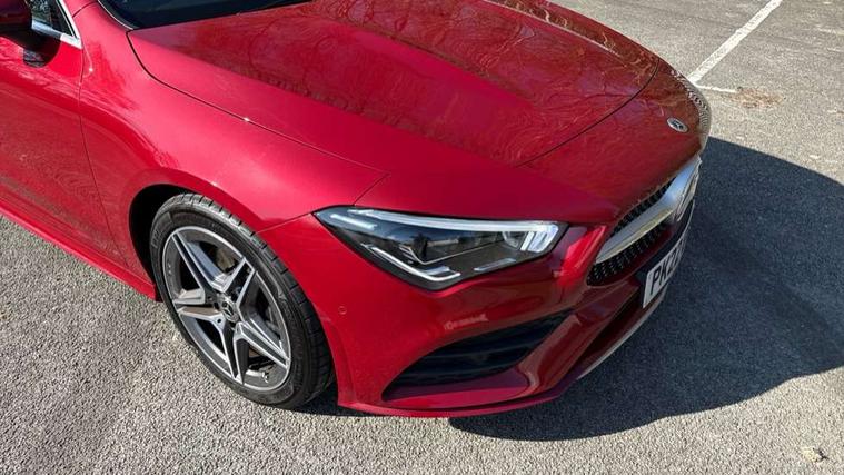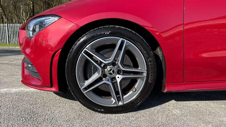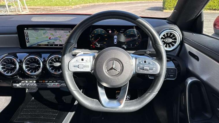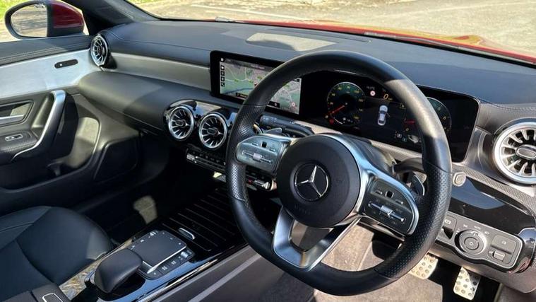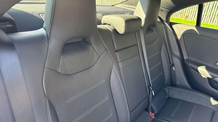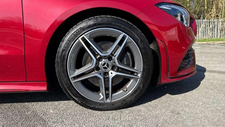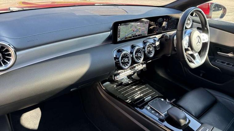 10.25 inch Instrument display with digital cockpit, 10.25 inch touchscreen central media display, Attention assist - Monitors steering behaviour and long journey fatigue, Bluetooth connection, Car wash mode, DYNAMIC SELECT with a choice of driving modes (ECO, Comfort, Sport and Individual), ECO start/stop function, Fluid level warning indicator for fuel, oil, coolant and washer fluid, Hard-disk navigation, Hey Mercedes Voice activation, Lamp failure indicator, Mercedes me connect including emergency call system, accident recovery, breakdown and maintenance management, Mercedes me remote services, Outside temperature gauge, Owners manual and service booklet in English, Pre-installation of private car share, Preinstallation for Mercedes Benz link, Radio aerial integrated into front and rear windshields, Service indicator (ASSYST), Smartphone integration with Apple CarPlay and Android auto, Traffic sign assist, Trip computer in multifunction display with current consumption indicator, 7G-DCT 7 speed automatic transmission, Lowered comfort suspension, Rear axle multi-link, DAB digital radio tuner, MBUX multimedia system with DAB digital radio and touchpad including satellite navigation, Mid-range sound system, USB (type C) ports (2) in stowage compartment and 1 in front of centre console, Adaptive brake lights, AMG body styling with AMG front apron and rear apron and visible exhaust tailpipe in chrome trim elements, AMG bodystyling side skirts, Auto headlights, Body colour bumpers, Body colour door handles, Chrome beltline strips, Chrome weather strip, Diamond radiator grille pins in chrome with silver painted louvres and chrome insert, Electric panoramic sliding sunroof, Electric windows, Electrically adjustable and heated door mirrors with integrated LED indicators, Exhaust system with 2 Visible tailpipe trim elements and rear apron with trim in chrome, Headlamp assist automatic headlamp activation, Heated glass rear windscreen + timer control, High level LED third brake light, Integrated LED daytime running lights, Interior mirror with black reading lamps and frameless, LED tail lamp, Multibeam LED headlamps with adaptive highbeam assist plus, Privacy glass with dark tinting on rear side windows and rear window, Rain sensing windscreen wipers with two sensitivity settings, Rear boot, Rear fog lamp, Rear side wing doors, Window line trim strip in chrome, 3 seat bench in 2nd row, 3 spoke flattened bottom nappa leather multifunction steering wheel with perforated leather in grip area, 40:20:40 split folding rear seat backrests, Air conditioning - Two zone thermotronic luxury automatic climate control with display, Air vents with surround in silver chrome, Automatic child seat recognition sensor, Black roof lining, Brushed stainless steel sports pedals with rubber studs, Floor mats with stitched AMG lettering, Front centre armrest with stowage, Galvanished gear shift paddles on steering wheel, Heated front seats, Illuminated front door sills with changeable cover, Illuminated glove compartment stowage, Interior lighting - 64 colour Ambient lighting, Luggage net on driver/front passenger seat backrest, Manually height and reach adjustable steering column, Rear armrest with two integral cup holders for drinks, Rear head restraints, Single front passenger seat, Sport seats with fixed head restraints, Stowage compartment in centre console with retractable cover, Sunvisors with illuminated vanity mirrors, Touchpad on center console, Twin front cupholders, Two outer rear seat isofix and top tether child seat fixing points, Keyless go pack - CLA, Light and sight pack - CLA, Mirror pack - CLA, Parking package - CLA, Seat comfort pack - CLA, Active bonnet pedestrain safety measure which detects an impact and raises bonnet by 65mm, Adaptive brake assist with hold function and hill start assist, Anti-lock braking system (ABS), Black seat belts, Bonnet with power domes, Brake pad wear warning indicator, Childproof locks manually operated for rear doors and electrically operated for rear power windows, Crash responsive emergency lighting, Driver and front passenger head and sidebags, Driver and front passenger windowbags, Drivers knee airbag, Dual stage driver and front passenger airbags, Electric parking brake, Electronic stability programme with acceleration skid control, ESP curve dynamic assist, Front and rear seatbelt reminder, Front passenger seat occupancy sensor, Three point rear seat belts, Tyre pressure monitoring system, Warning triangle and first aid kit, Remote central locking and crash sensor with emergency opening function, Urban guard vehicle protection system with immobiliser and interior protection, Light aluminium with longitudinal grain interior trim, 18" 5 twin spoke design alloy wheels painted in titanium grey with high sheen finish, Summer tyres, Tirefit tyre sealant kit,
