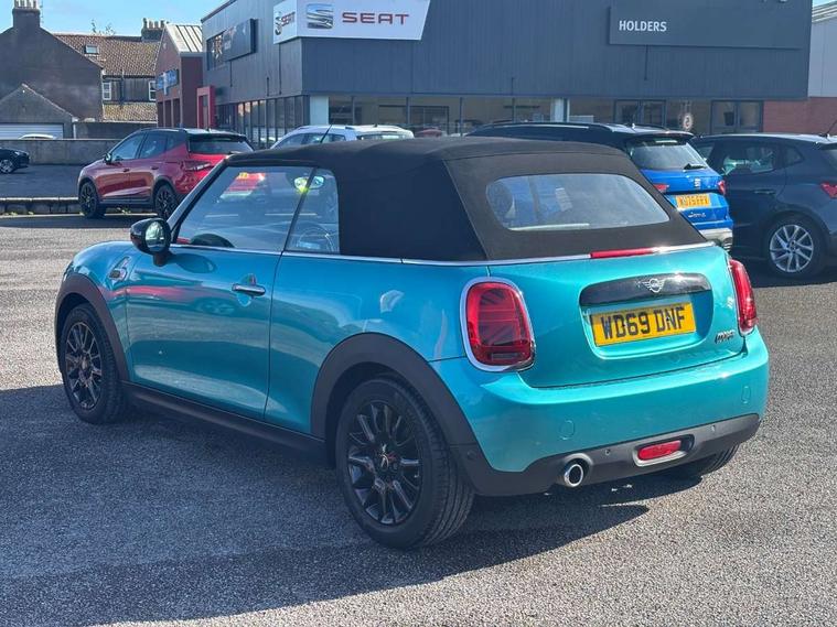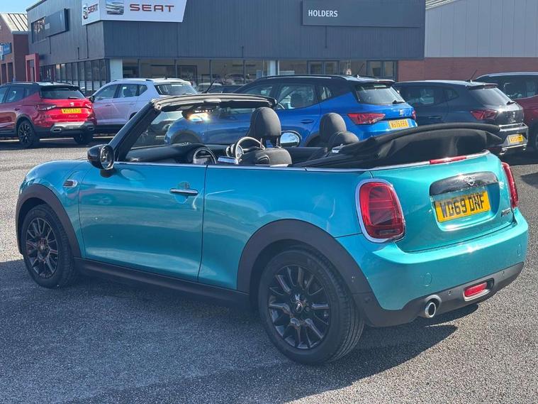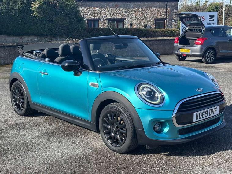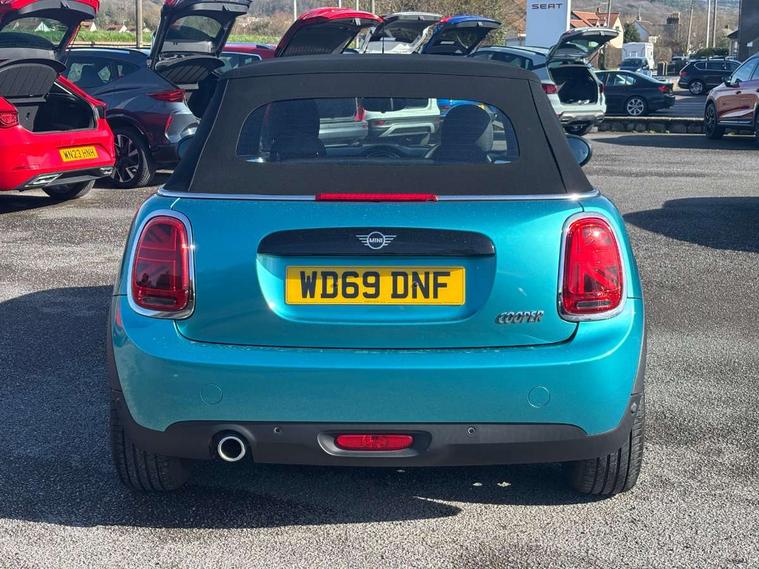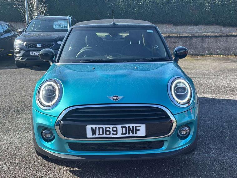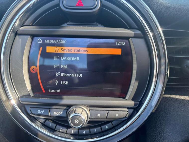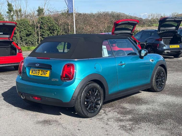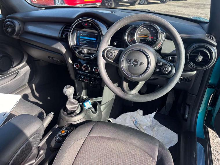 Automatic start/stop function with brake energy recuperation, Compatible mobile phone bluetooth with audio streaming, Electro-mechanical speed dependant steering assistance, Gear change indicator, Instrument cluster, Mini E-call, MINI TeleServices, On board computer, Rear park distance control, Service interval indicator, Double Vanos system, Fully variable valve control, High precision injection, 6.5" touchscreen with LED ring, FM tuner and DAB digital radio, Automatic headlight activation switch, Body colour fuel filler cap, Chrome border high gloss black slats radiator grille, Dynamic brake lights, Electric windows, Fully electric black softtop with integrated sunroof functionality, Heated rear window, Heated windscreen washer jets, LED headlight with closed ring and daytime driving lights, Left exhaust tailpipe with chrome finisher, Metal door sill strips with MINI imprint, Model logo Cooper on right of tailgate, Rain sensor window wipers, Rear fog lights, Rear LED lights with union jack design, Side scuttle panel with integrated indicator, Sun/heat protection glass, White indicator lenses, 12V Accessory socket in centre console, 4 lashing eyes in luggage compartment, 50/50 split folding rear seats, Chrome interior highlights, Colour line - Carbon black, Cupholders, Easy Load boot handles, Front and rear head restraints, Front and rear isofix with front passenger airbag deactivation, Glove compartment, Height and length steering column adjustment, Interior lighting with 12 basic colours selectable via toggle switch in roof, Leather gearshift lever and handbrake gaiters, LED reading lights, vanity mirror lights, front foot well light and spotlight on front seats, Manual air conditioning, Mechanical seat adjustment, driver seat height adjust, forward/back and front seats backrest, Mini logo projection on floor from drivers exterior mirror, Multifunction steering wheel, Storage compartments in doors, Sunvisors with vanity mirrors, Tool kit, 3 point seatbelts on all four seats, 6 Airbags - front, side and seat belt tensioners, Active rollover protection, Anti-lock braking system (ABS), DSC - Dynamic Stability Control, Front and rear disc brakes, Hill start assist, Single tone fanfare horn, Tyre pressure monitoring system, Alarm system with tilt sensor, monitoring doors, bonnet interior and tailgate, Electronic vehicle immobiliser, Keyless Go,