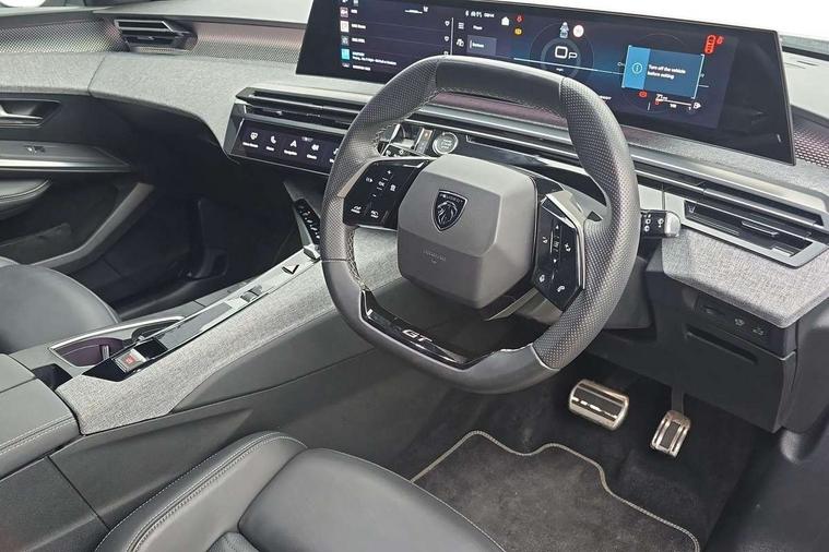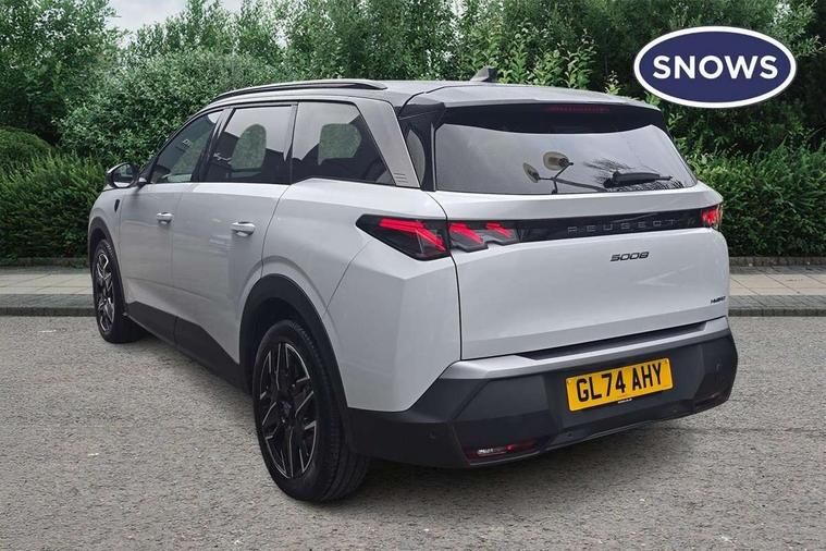 Adaptive cruise control with Stop and Go, Bluetooth with two microphones (Connect up to 2 phones), Drive modes select (Eco, normal and sport) with configurable ambient lighting, Driver foot rest, Driver profile selection, E-call, Exterior temperature indicator with ice warning, Front parking sensor, Front passenger seat detection, Hands free Smart Electric Tailgate (foot operated), Lane keep assist, Manual gear changes via steering mounted paddles, Multi function trip computer, Natural voice recognition, PEUGEOT i-Cockpit - 21" HD panoramic curved display incorporating instrument panel and touchscreen with 3colour themes, PEUGEOT i-connect advanced HD fully customisable touch screen, Navigation with Tom Tom Live updates and over the air map updates, PEUGEOT SOS and assistance, Rear parking sensor, Speed limit and traffic sign recognition and recommendation, Wireless mirror screen with apple carplay and android auto, Wireless smartphone charger with status light and ambient lighting, Dynamic stability control and electronic anti-skid system, 1x USB-C port in front, 6 speakers, AM/FM bi-tuner, DAB Radio (Digital Audio Broadcasting), Peugeot customisable virtual iToggles, 5008 model designation badges front and rear in basalt grey, Acoustic windscreen, Automatic hazard light activation upon heavy brake application, Automatic headlamp activation, Automatic windscreen wiper activation with interval wiping intensity control, Black diamond roof and floating effect rear spoiler finished in nera black metallic, Body coloured exterior door handles, Dark tinted privacy glass for rear door, Tailgate and Quarter windows, Door mirrors - Welcome lighting and integrated LED indicators, Electric adjustable/heated/folding door mirrors, Flat blade wipers with magic wash integrated nozzles, Frameless electrochrome rear view mirror, Front and rear electric windows with one touch, Front grille with body coloured accents, Gloss black connecting strip between rear lights, Gloss black finish B pillar, Gloss black roof rails, Grained black lower door claddings and wheel arches, Hybrid rear badging in basalt grey, Laminated windscreen, LED exterior lighting, LED third brake light, Lower front and rear bumper trims in meteor grey, Orbital gloss black door mirrors, Peugeot 3-claw signature front and rear daytime running lights, PEUGEOT shield on front wings, Pixel LED Technology headlights with adaptive high beam assist, Rain sensor, Rear full LED 3D peugeot signature claw effect lights with daylight function, Rear side wing doors, Rear wiper, Tailgate with heated rear window, 2 cupholders in front centre console with closed storage, 2 seat bench in 3rd row, 2nd Row Manual Window Blinds, 3 seat bench in 2nd row, 3x 12V sockets (Cabin front and rear and boot), 4 Grab handles retractable and damped, 4 tie down luggage rings, 40/20/40 folding 2nd row seat backrest with 60/40 base with easy access to 3rd row seat, Additional rear blower, Aluminium pedals, Arch design central console with concealed storage, Central front armrest with ventilated storage compartment and LED lighting, Chrome finish interior door handles, Compact heated multifunction steering wheel with full grain leather Iced Clay stitching, gloss black and satin chrome detailing and GT badge, e-Toggle compact gear selector, Electric power steering with reach and rake adjustable steering column, Glasses storage box, roof mounted, LED boot light, LED footwell lights, LED front and rear roof lights, LED Glovebox light, LED illuminated driver and passenger concealed sunvisor mirrors, Luggage cover, Luxury front and rear carpet mats with Iced Clay stitching and GT logo, Mistral black pillars and headlining, Quick launch cabin heating/cooling function, Rear air vents, Rear centre 3 point seat belt, Roll up awning fitted to tailgate, Roof lining - Meteor grey, Seatbelt unfastened on the move audible and visual alert for front and rear seats, Single front passenger seat, Stainless steel PEUGEOT door sill trims, Tri zone climate control, Twin USB charging ports in the rear (Type C), Two bag hooks, Under floor storage in boot, 2x Isofix child seat fitting on outer rear seats with zipped cover, 3x3 point rear seat belts, ABS (Anti-lock Braking System) with (EBD) Electronic Brakeforce Distribution, Adaptive driver and front passenger airbags with passenger airbag deactivation function, Advanced Emergency Braking System with radar (AEBS3) providing night detection of pedestrians and cyclists, Child locking functionality on rear doors, Electronic parking brake, Emergency Brake Assist (EBA), Front and rear curtain airbags, Front and rear side airbags, Front optimised safety headrests and 3 x rear retractable headrests with height adjustable, Front/rear disc brakes, Hill start assist, Post collision safety brake, Seatbelts - Front and rear outer seats with pyrotechnic pretensioners and force limiters, Tyre under inflation monitoring and detection (Indirect), 2x Keys (Lock, Unlock, Boot release function with concealed key), Acoustic vehicle alert system (AVAS), Automatic door locking when moving off, Deadlocking system, Electronic code immobiliser, Exterior passenger door lock, Locking wheel nuts, Peugeot Open and Go (keyless entry and push button start), Seatbelts reminder and unfastend warning indicator, Thatcham category 1 Perimetric and volumetric alarm with anti-lift detection, Aluminium printed dashboard and front door panel Alcove decor, Textile decor for dashboard, door panels and centre console arch, 19" YARI diamond cut alloy wheels with star center cap in orbital black, Michelin e-primacy class A tyres, Tyre repair kit includes 12V compressor, Sealant and storage box,