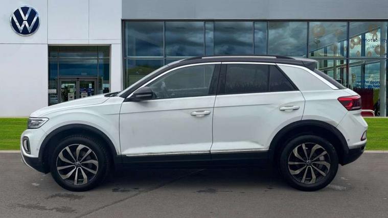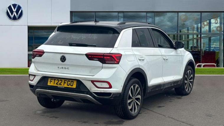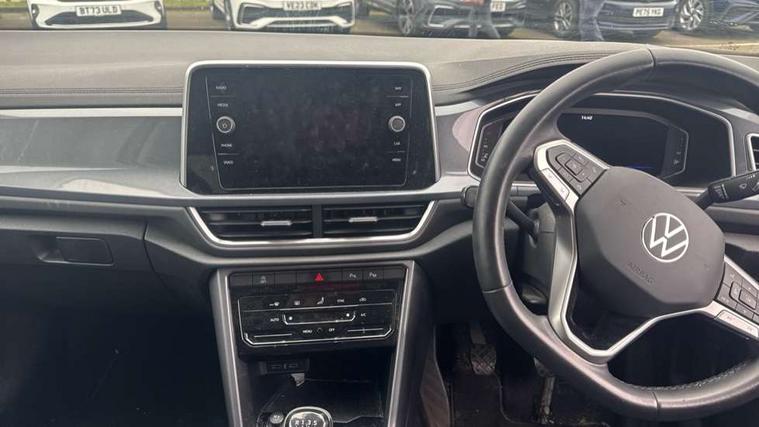 10.25" Digital cockpit pro, Bluetooth mobile phone interface, Driver alert system with fatigue detection, Driver tips and journey analysis, Emergency call service, Lane keeping system Lane Assist, Modified key software - reduce switch off time for key status change to Long no motion, Online services, Park assist including front and rear parking sensors, Service interval indicator, Tailgate/trunk lid release from outside, Think blue trainer driver tips and journey analysis, Warning sound and light for front seatbelts unfastened, Wireless app connect, Battery regeneration during braking, Start/stop function with battery regeneration, Diversity antenna for FM reception, Front and rear 6 speakers, Music playback - MP3, WMA and AAC files, Premium USB cable in choice of either Apple or Android smartphone compatibility, SD card slot, Simultaneous pairing of 2 compatible mobile devices, Title and cover art display, We Connect and We Connect Plus functionality, 3rd brake light, Auto dimming interior rear view mirror, Automatic hazard lights activation under emergency braking, Automatic headlight control with LED separate daytime running lights with coming/leaving home function, Body colour sports bumpers with silver metallic underbody fascia, Dynamic headlight range control with self adjusting whilst driving, Extended roof spoiler, Exterior mirrors aspherical on driver side, convex on front passenger side, External USB type C socket and charging sockets, Front windscreen wiper with intermittent wipe and 4 position delay, Heated rear window, LED Plus headlamps, LED rear combination lamps, LED rear number plate lights, LED tail lamp rear comination lamps, Light mode for poor weather, rain, fog or snow, Power windows with comfort operation and circuit breaker, Rain sensor, Rear exhaust tailpipe, Rear fog light on one side and reversing lights on both sides, Rear side wing doors, Rear wash/wipe with intermittent wipe setting, Remote electrically foldable door mirrors, puddle lights and reverse activated passenger's door mirror, 12V power socket in centre console, 3 rear head restraints, 3 seat bench in 2nd row, 4 load lashing points in luggage compartment, Air care climatronic air conditoning system with active combination filter and 2-zone temperature control, Chrome plated radiator grille inserts, air vent surrounds and light switch surrounds, Door and side trim panel with leatherette insert, Drawer under drivers seat, Front + rear carpet mats, Front centre armrest, Front comfort sports seats, Front cupholders x 2, Front footwell illumination, Instrument lighting, white adjustable panel illumination, Interior ambient lighting and surround lighting, Interior light delay, Isofix child seat preparation, Leather gearshift handle, LED interior light with switch off delay/dimmer and 2 front/rear LED reading lights, Load-through provision with cup holder when folded down ('Unsplit rear seat bench, split folding backrest, with centre armrest), Luggage compartment lighting, Non-folding front passenger seat backrest, Single front passenger seat, Storage compartment in left and right luggage area, Storage compartment in rear doors, Storage compartments in driver and front passenger doors, Sunvisors with illuminated vanity mirrors, Variable boot floor, height adjustable and removable, Driver assistance pack without proactive passenger protection - T-Roc, 3 point height adj front seatbelts + pretensioners, 3 point seatbelts in outer rear with ECE label, ABS, Child locks on rear doors, Driver and front passenger airbag with front passenger airbag deactivation, Driver and front passenger safety-optimised head restraints, Drivers seatbelt reminder, Electronic parking brake, Electronic Stability Control (ESC) inc EDL (Electronic Differential Lock) and ASR (Traction Control), Front and rear passengers curtain airbag system including front side airbags, Front assist with city emergency braking and pedestrian monitoring, Front seat side impact airbags, Predictive pedestrian protection, Rear disc brakes, Single tone horn, Tyre pressure loss indicator, Volkswagen roadside assistance, Alarm with interior protection, Anti-theft alarm system with interior monitoring, backup horn, and towing protection, Remote central locking with SAFELOCK, radio remote control with 2 remote control folding keys, Trims for alloy wheels,