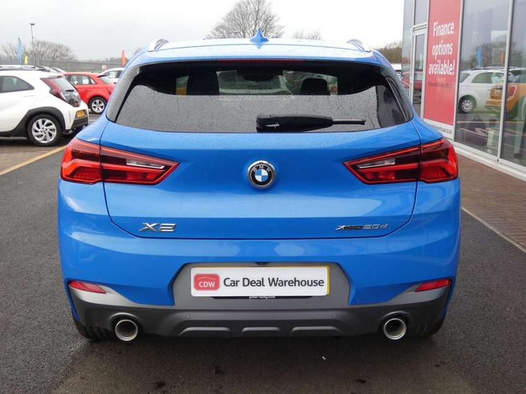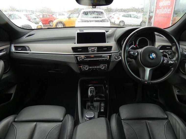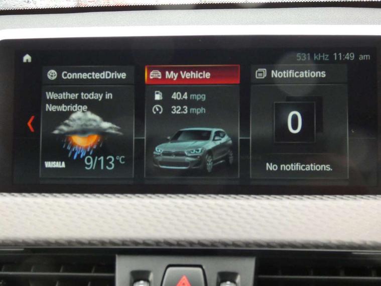 Automatic powered tailgate, Automatic start/stop system, Automatic tailgate opening, Bluetooth hands free facility with USB audio interface, BMW Online services, BMW remote services, BMW Teleservices, Brake pad wear indicator in front and rear, Check Control warning system for monitoring of lights and door/luggage compartment open warning, Eco pro mode, Electric Power Steering (EPS) with Servotronic, Instrument cluster with black optic and 5.7" colour display + speedometer + tachometer + fuel gauge + instant fuel economy, Lights on warning by audio warning signal when ignition is switched off, On board computer - average speed+fuel consumption, service interval, clock/date, odometer/trip meter, outside temperature display and ice warning, Optimum shift indicator, Personal Profile, Real time traffic information, Speed limiter, TMC for lifetime of vehicle, Balancer shaft, Diesel particulate filter, Drive performance control with ECO PRO comfort + sport mode, Electronic differential lock, Performance Control, Sport automatic transmission, 2x USB sockets in front, Bluetooth audio streaming, BMW professional radio with Single CD player + two way six speakers + 4x25W loudspeaker system, DAB Digital radio, Rear twin USB sockets in centre console, Adjustable headlights, BMW badge on bonnet, tailgate with integrated tailgate release and C pillars, Body colour bumpers with Frozen grey insert, Body colour door handles, Body colour mirror caps, Chrome kidney grille with black vertical slats, Clear lenses direction indicator lights, Direction indicator side lights integrated in exterior mirrors using LED technology, Door mirror integrated indicators, Dynamic brake lights, Exterior mirror heated, Fingertip control / anti-trap function on electric window, Front and rear bumper system, Front and rear electric windows, Frozen grey front air intakes, Green tinted heat protection glazing, Halogen headlights, Heated windscreen washer jets, High gloss black front side air intake with matt black insert, High level third brake light, LED front fog lights, LED headlights with extended contents - cornering, high beam assist, LED day running lights with dynamic beams-through for urban and motorway, Lightweight engineering, M logo designation in side chrome, M Sport X aerodynamic bodystyling, Manual headlight beam throw control, Model designation in left tailgate, Rain sensor with automatic headlight activation, Rear fog lights, Rear tail lights with LED technology and 3D design, Rear window aerial, Rear window wiper with wash/wipe function, Reversing light in rear light cluster, Shark fin antenna, Twin chrome exhaust tailpipes, Visible VIN plate, Welcome lighting, 12V power socket in centre console + front with blanking plug, 12V socket in luggage compartment, 4 lashing points to secure luggage, 40:20:40 manually split folding rear seat with two tilt positions for backrest, Anthracite headlining, Automatic two zone climate control air conditioning, Child seat ISOFIX attachment for two outer rear seats and front passenger seat with anchorage points, Conditioned based service, Driver and front passenger seat heating, Drivers folding storage compartment, Extended storage, Floor mats with contrasting stitching on dashboard and centre console, Front and rear door armrests, Front armrest, Front cupholders x 2, Front door sill finishers with M designation, Front sports seats, Gearshift paddles on steering wheel, Glovebox with light, Luggage compartment lighting, Luggage net, M Sport multifunction leather steering wheel, Multi-function controls for steering wheel, Rake/reach adjustable steering wheel, Sunvisors with vanity mirrors and ticket pocket, Three rear headrests, Two cupholders in front and rear centre console, Velour floormats, M Sport X exterior styling pack - X2, Airbags - Front driver and passenger, front and rear head, front side, curtain head protection, Anti lock braking system (ABS) with brake assist, ASC - Active stability control, Battery safety cut-off, BMW emergency call, Brake drying, Brake energy regeneration, Braking readiness, Child proof locking system in rear door, Crash sensor activating central locking release with hazard warning lights and interior lighting + battery safety cut-off, Driver and front passenger seat belt security check, Driver/Front Passenger airbags, Driver/front passenger side airbags, DSC - Dynamic Stability Control, Dynamic Traction Control - DTC, Electrically operated parking brake with automatic drive release, Electronic parking brake, Front and rear head airbags, Front passenger airbag deactivation, Hill descent control, Hill start assist, Multi collision braking system, Rear brake discs, Side impact protection, Twin horns, Tyre pressure monitor, Warning triangle and first aid kit, 2 remote folding keys, Auto door lock when driving, Central locking switch for all doors, fuel filler cap and luggage compartment, Engine immobiliser, Incorrect fuel protection system, Keyless Go access/ignition system, Locking wheel bolts, Start/stop button with comfort go keyless engine start and auto start stop deactivation button, High gloss black centre console, Reduced rolling resistance tyres,