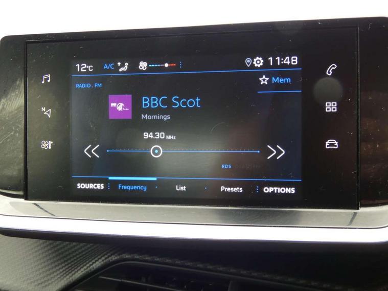 Bluetooth telephone facility, Driver attention warning, Exterior temperature indicator with ice warning, Lane keep assist, Mirror screen with mirror link, apple carplay and android auto, Multi function trip computer, PEUGEOT i-Cockpit with 3.5" instrument panel display, PEUGEOT i-Cockpit with compact steering wheel, PEUGEOT SOS and assistance, Programmable cruise control and speed limiter, Push button start, Rear parking sensors, Smart phone docking station, Speed limit recognition and recommendation, 1x USB socket in front, 6 speakers radio with mp3 compatible, DAB Digital radio, Voice recognition for radio, navigation and telephony features, 2 X Rear number plate lights, Automatic hazard light activation upon heavy brake application, Automatic lights, Body coloured exterior door handles, Colour coded door mirror shells, Diamond black rear spoiler (roof), Eco LED headlights, Electric front windows + one touch + anti-pinch, Electric rear windows with one touch/anti-pinch, Electrically adjustable, heated and power folding door mirrors, Electrochrome rear view mirror, Follow me home headlights, Gloss black rear cluster connecting strip, Headlights left on audible warning, LED daytime running lights with distinctive tooth design, Model designation badges front and rear, Radiator grille chrome chequered, Rear reversing lights, Rear windscreen wiper triggered automatically in reverse gear, Roof mounted aerial, Tailgate with heated rear windscreen and wiper blade, 1/3 to 2/3 split folding rear seats, 12V socket, Driver and front passenger comfort seats, Driver and front passenger seat manual adjustment in longitudinal and back rest angle, Driver seat mechanical height adjustment, Electric power steering with reach and rake adjustable steering column, Front interior light with 2 reading spotlights, Gear shift indicator, Leather steering wheel, Low centre console, Manual air conditioning, Map pockets on the backs of the front seats, Piano keys gloss black plated toggle switches to access main functions of the vehicle, Roof lining - light grey, Satin chrome gear lever, Seatbelt unfastened on the move audible and visual alert for front and rear seats, Tri material cloth upholstery, 2x Isofix child seat fitting on outer rear seats, 3 rear 3 point seatbelts, ABS (Anti-lock Braking System) with EBD (Electronic Brakeforce Distribution) and EBA (Emergency Braking Assistance), Adaptive driver and front passenger airbags with passenger airbag deactivation function, Child locking functionality on rear doors, Driver/front passenger side airbags, ESP with Hill Assist, Front and rear curtain airbags, Front and rear disc brakes, Front optimised safety headrests and 3 x rear retractable headrests with height adjustable, Front three point retractable seatbelts with force limiters, Manual parking brake, Pedestrians active safety brake, Tyre pressure sensor, Acoustic vehicle alert system (AVAS), Automatic door locking when moving off, Deadlock, Electronic code immobiliser, Thatcham cat. 1 alarm with anti lift sensor, Carbon effect Dashboard, front and rear door panel finish, 16" Taksim alloy wheels, Tyre puncture repair kit,