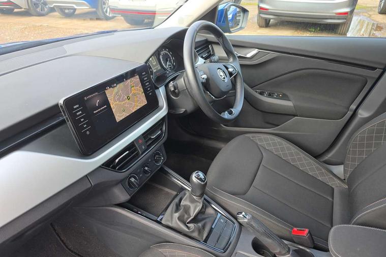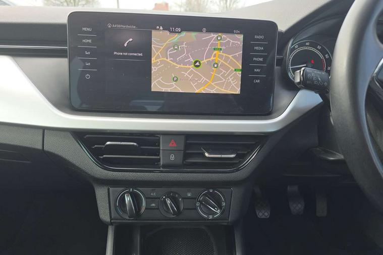 Amundsen satellite navigation with 9.2" glass colour touchscreen display, web radio, voice control and traffic sign recognition, Bluetooth system, E-call, Front assist system, Gesture control, PAS, Service indicator, Speed limiter, Wireless SmartLink for apple car play, android auto and mirrorlink, 8 Speakers, Auxiliary input socket, DAB Digital radio, Body colour bumpers, Body colour door mirrors and handles, Chrome grille surround, Dimming rear view mirror with black surround, Electrically adjustable and heated door mirrors, Front and rear electric windows, Headlight range control, Heated rear window, LED rear lights - low functionality, LED third brake light, Light sensors, Privacy glass, Rear fog lights, Rear side wing doors, Rear wiper, 12V Accessory socket in centre console, 3 seat bench in 2nd row, Chrome inner door handles, Cloth upholstery, Front head restraints, Glove compartment with illumination, Height adjustable driver and front passenger seats - manual, Ice scraper, Isofix child seat fittings on outer rear seats, ISOFIX on front passenger seat, Manual lumbar support for front seats, Rake/reach adjustable steering wheel, Reading lights, Single front passenger seat, Sun visors with illumination on front passenger, Textile floor mats, Third rear headrest, Top tether for front passenger seat, Umbrella in driver's door, 3x3 point rear seatbelts, Airbags - driver and front passenger, ESP, Front passenger airbag deactivation switch, Front side airbags with curtain airbags, Hill hold control, Manual parking brake, Manual rear child locks, One tone horn, Rear disc brakes, Seatbelt reminder for driver an co-driver, Traction control, Tyre pressure monitor, Anti-theft alarm system with interior monitoring, backup horn, towing protection and remote central locking with SAFE system, Anti-theft wheel bolts, Electronic engine immobilizer, Silver haptic decorative insert on the dashboard with hot stamping in glossy black,