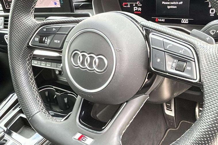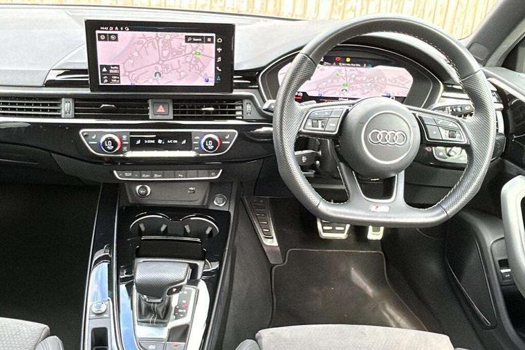 Audi connect safety and service (e-call), Audi drive select, Audi smartphone interface, Audi virtual cockpit, Automatic start-stop system with coasting functionality and efficiency programme, Bluetooth interface, Camera based traffic sign recognition, Electromechanical power steering, Email, calendar and text messages displayed via MMI, Front and rear parking sensors, Lane departure warning, MMI Navigation plus with MMI touch includes 10.1" high resolution colour MMI display, 3D map, Power operated tailgate, Rear view camera, Voice control system, Sports suspension lowered by 23mm, 2 USB charging ports, 8 passive loudspeakers, DAB digital radio reception, Audi beam uses LEDs to project the audi logo onto the ground as you exit your A4, Auto dimming rear view mirror, Black Audi rings and black badging (model name in black badging, no engine badging), Body colour door handles, Body colour front spoiler lip, Body colour side sill trim, Electric adjustable/heated/folding door mirrors with auto dimming, Exhaust tailpipes in high dark chrome, Grained matt black side air inlets with matt aluminium silver inlay, High beam assistant, High gloss black B pillar trims and triangular rear door trim, LED headlights with LED rear lights + dynamic rear indicators + headlight adjustment and high beam, turning light + LED daytime running lights, LED third brake light, Privacy glass, Rain and light sensors, Rear diffuser in matt black with trim strip in matt aluminium silver, Rear side wing doors, Rear wiper, RS4 rear spoiler in body colour, S Line roof edge spoiler, Sport front and rear bumpers with side skirts, Variable intermittent front wash/wipe, Windscreen with acoustic glazing, 4 way electric lumbar support for driver and front passenger, 40/20/40 split folding 3 rear seat bench in 3 parts with rear centre armrest, Black carpets, Black cloth headlining, Black perforated leather gearknob, Contrast stitching on seats, steering wheel and gear lever gaiter, Deluxe 3 zone electronic climate control, Electric load area cover, Front and rear head restraints, Front centre armrest, Heated front seats, Illuminated door sill trims with S logo, ISOFIX child seat mounting and top tether, Manual seat adjustment, Single front passenger seat, Stainless steel pedals and foot rest, Tool kit, Black styling pack - A4 Avant, LED Interior light pack - A4/S4, 3 rear seatbelts, 6 airbags - Driver, front passenger, curtain and side windows, Attention and drowsiness assist, Electronic Stabilisation Control (ESC) including ABS, ASR and EDL, Hill hold assist, Multi collision brake assist, Pop-up bonnet for pedestrian protection, Pre sense city, Rear door child safety locks, Seatbelt monitoring, Warning triangle and first aid kit, Anti theft alarm, Anti theft wheel bolts, Central locking, Keyless Go, Piano black finish inlay, Tyre repair kit,