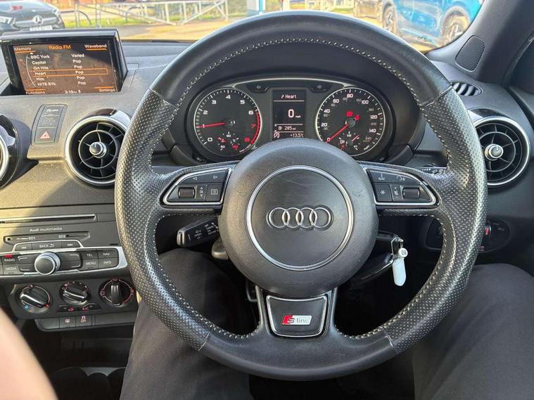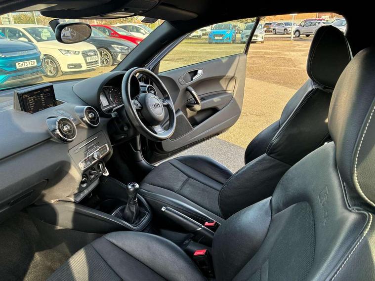 Cruise control, Driver's information system, Electro-mechanical PAS, Low washer fluid indicator, Service interval indicator, Voice control system, Additional SD card reader, Audi music interface, Bluetooth audio streaming, DAB Digital radio, Adaptive brake lights, Body coloured bumpers, Body coloured door mirrors, Electric adjustable door mirrors, Electric front windows, Front fog lights, Heat insulating glass, Heated door mirrors, Heated rear windscreen, Polished stainless steel tailpipe, Rear wiper, Roof spoiler, S Line body styling, Xenon plus headlights including automatic headlights, LED daytime running lights, LED rear lights, dynamic range control and headlight washers, 12V Accessory socket in centre console, Adjustable rear head restraints, Black cloth headlining, Cupholders in centre console, Door sills trims with aluminium inlays, Front floor mats, Front head restraints, Front seats - 'Easy Entry', Front sports seats, Height adjustable front seats, Isofix attachments on outer rear seats, Jack and tool kit, Leather gear knob, Leather handbrake, Lumbar adjustment for front seats, Rake/reach adjustable steering wheel, Split folding rear seats, ABS/EBD, Brake assist function, Driver and passenger side airbags, Driver/Front Passenger airbags, EDL, ESP with ASR, First aid kit, Front and rear seatbelt reminder, Front passenger airbag deactivation, Head airbags, Height adjustable front seatbelts, Rear three point seatbelts x 2, Tyre pressure monitor, Warning triangle, Locking wheel bolts, Remote central locking with 2 remote folding keys, Thatcham category 1 alarm + immobiliser, Tyre repair kit,