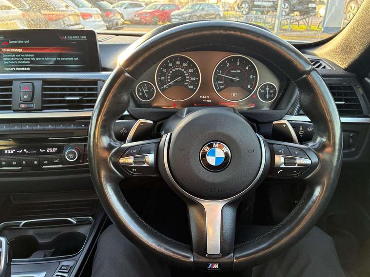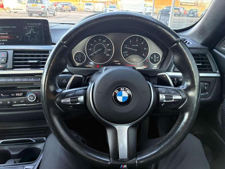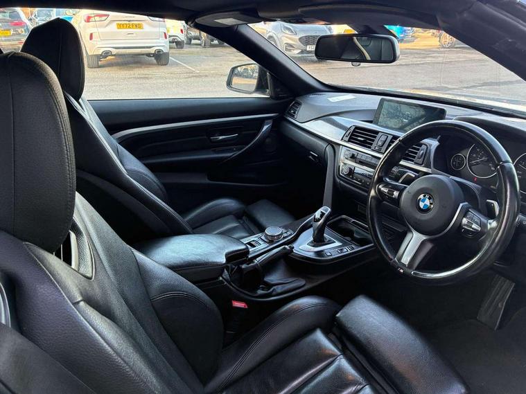 BMW Online services, BMW Teleservices, Brake pad wear indicator warning light, Check control system, Door/boot open warning, Front/rear Parking distance control, Lights on warning, Oil temperature gauge, On board computer, Outside temperature display, Run flat indicator, Service interval indicator, Stop/start button, Diesel particulate filter, Drive Performance Control, Sports function on gearbox with steering wheel mounted gearshift paddles, Bluetooth audio streaming, BMW professional radio/CD/MP3, DAB Digital radio, 2 speed adjustable intermittent wipers with wash/wipe function, Auto dimming rear view mirror, Body colour bumpers, Body colour door handles, Body colour door mirrors, Body colour roof mouldings, Chrome kidney grille with black vertical slats, Door sill finishers, Dual chrome exhaust, Electric adjustable heated door mirrors, Electric front windows/one touch facility, Follow me home headlights, Heat insulating tinted glass, Heated windscreen washer jets, High gloss shadow line, LED daytime running lights, LED front fog lights, M aerodynamic bodystyling, Rain sensor including auto headlights activation, Windscreen with grey shadeband, 12V sockets in front centre console and passenger footwell, 3 spoke leather M sport multifunction sports steering wheel, Anthracite Velour floor mats, Dual zone climate control, Folding front centre armrest with storage compartment, Folding storage compartment with glasses holder + coin tray, Front cupholders x 2, Front door storage with bottle holder, Front head restraints, Front sports seats with electric side bolster adjustment, Front/rear armrests within door panels, Glovebox with lid, Heated front seats, Integrated rear head restraints, ISOFIX child seat preparation+airbag deactivation, Lashing eyelets in boot, Leather handbrake grip, Reach + rake adjustable steering column, Rear centre armrest, Storage compartment behind rear seat, Storage compartment in centre rear seat base, Storage compartment in rear centre console, Toolkit located in luggage compartment, Extended lights package - 4 Series, 3 point seatbelts on all seats, ABS/EBD, Automatic Stability Control (ASC), BMW emergency call, CBC - (Cornering brake control), Crash Sensor - activates hazard/interior lighting + unlocks doors, Driver seatbelt warning indicator, Driver/Front Passenger airbags, DSC+, Dynamic brake control, Dynamic Traction Control - DTC, Front seatbelt force limiters, Front seatbelt pretensioner, Front side airbags, Hill start assist, Roll over protection, Tyre pressure monitor, Warning triangle and first aid kit, Drive away door locking, Electronic immobiliser, Remote central locking, Remote control Thatcham category 1 alarm, Run flat tyres,