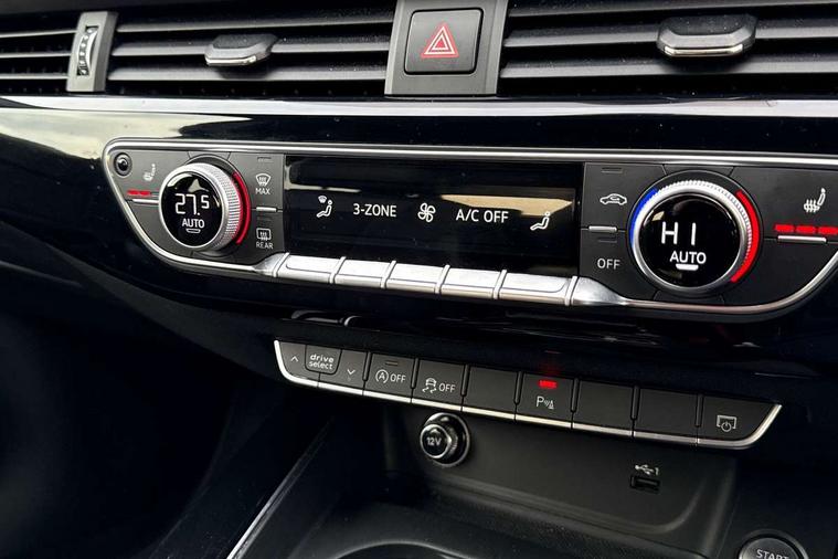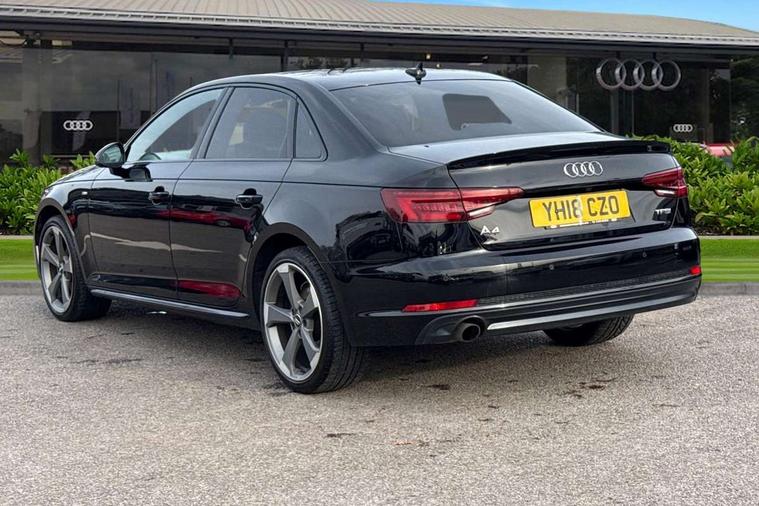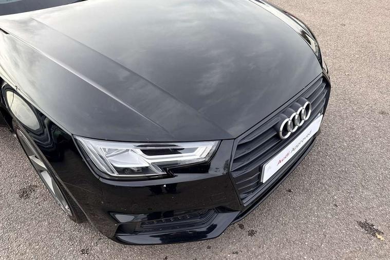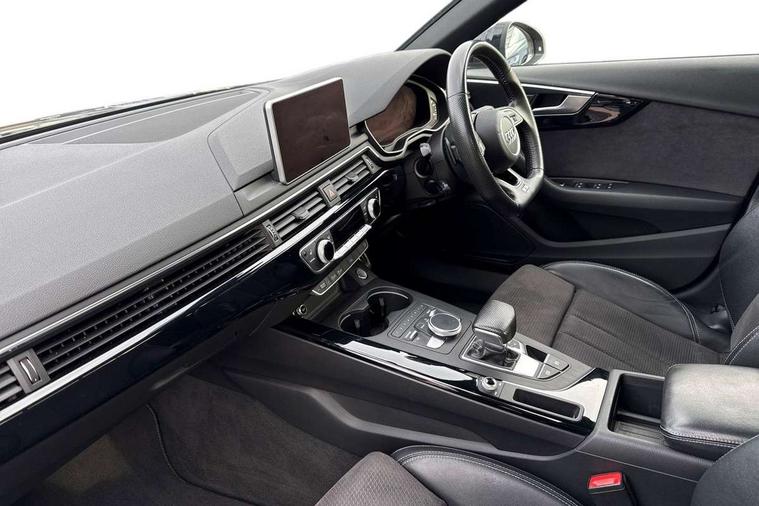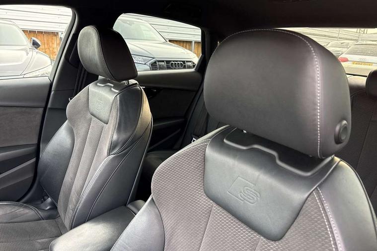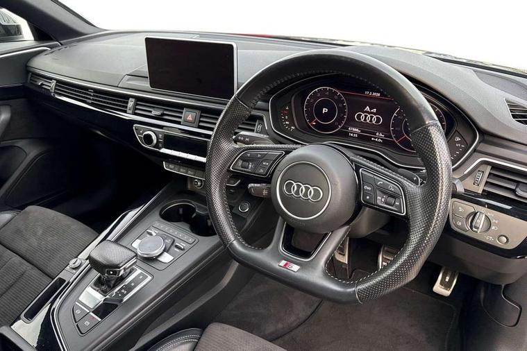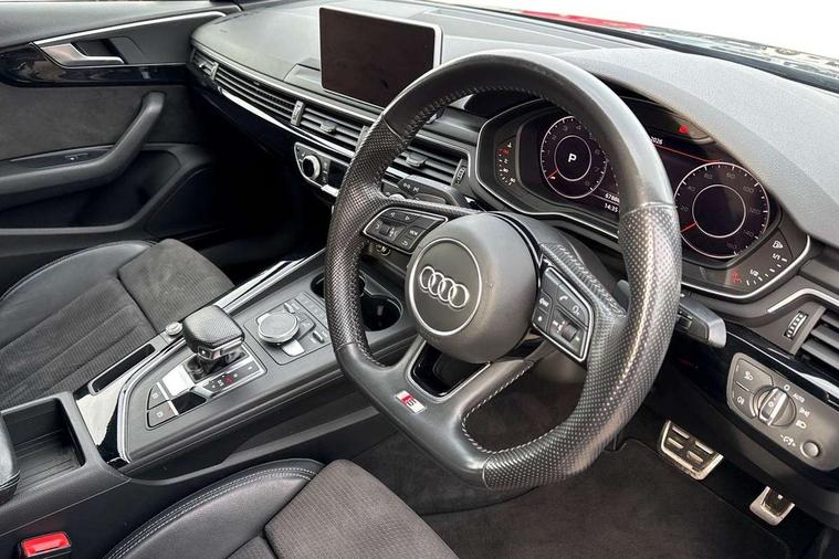 Black styling pack - A4/S4, Non Smokers pack, S line exterior styling pack - A4 Saloon, Space saver spare wheel, Anti theft alarm, Keyless Start, Locking wheel bolts, Remote central locking, Thatcham category 1 alarm + immobiliser, 2 USB ports, Aux input, DAB digital radio module, MMI radio plus with CD player, 3 point seatbelts on all rear seats, ABS/EBD, Active bonnet, Adaptive driver and front passenger airbags, Electromechanical parking brake, ESP, First aid kit, Front head airbags, Front seatbelt pretensioners + load limiters, Front side airbags, Multi-Collision braking, Seatbelt warning, Traction control, Tyre pressure monitoring system, Warning triangle, Acoustic windscreen, Air inlets in titanium black, Aluminium window trim, Auto dimming rear view mirror, Automatic headlights + automatic windscreen wipers, Body colour bumpers, Chrome door handles, Chrome rolled exhaust, Electric adjustable heated door mirrors, Electric front windows, Electric rear windows, Headlight range control, High gloss black triangular aperture at rear door, LED daytime running lights, LED indicators in door mirrors, Privacy glass with front acoustic glazing, Rain and light sensors, Rear diffuser in Twilight grey matt, Roof spoiler, 3 spoke flat bottom high multi-function leather steering wheel, 3 zone climate control, Black cloth headlining, Front centre armrest with 12v socket, Front headrests, Front sport seats, Front/rear floor mats, Gearshift paddles, Illuminated door sill finishers, Isofix child seat preparation for front passenger/outer rear seats inc passenger airbag deactivation, Jack and tool kit, Luggage compartment carpet, Perforated leather gearknob, Reach + rake adjustable steering column, Rear headrests, Split folding rear seats, Stainless steel foot rest, Stainless steel pedals, Sunvisors with vanity mirrors, Top tether anchor plate for isofix child seat, Audi drive select, Audi Pre sense collision avoidance, Audi smartphone interface, Auto boot lid opening, Colour driver's information system display, Cruise control + speed limiter, Electro-mechanical PAS, MMI SD card Navigation, Service interval indicator, Stop/start button, Voice control system,