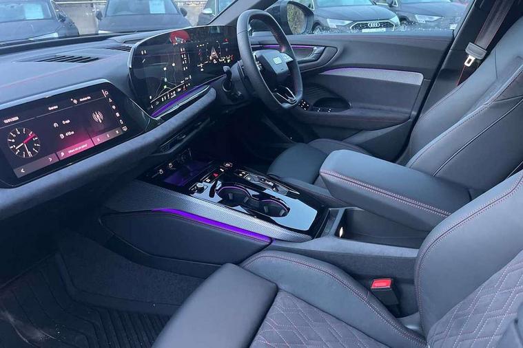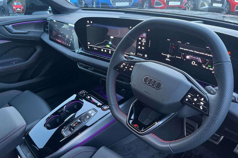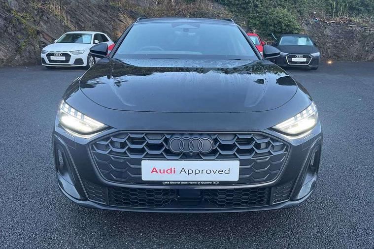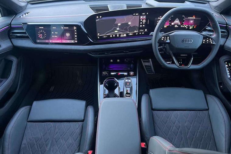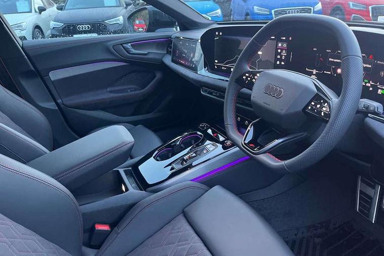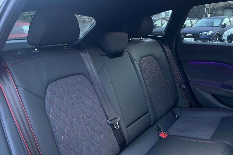 Adaptive cruise control, Advanced driver attention and fatigue montior, Audi application store, Audi assistant, Audi connect emergency call and service, Audi drive select, Audi virtual cockpit plus with 11.9" OLED colour display, Automatic start/stop system with coasting functionality, Camera based traffic sign recognition, Intersection assist, Lane change assistant with exit warning system, rear cross traffic alert and rear turn assist, Lane departure warning with emergency assist, MMI 10.9" front passenger touch display, MMI navigation plus with high resolution 14.5" OLED touchscreen colour display, Park assist plus, Parking system plus with 360 display, Progressive steering with servotronic, Smartphone interface, Swerve assist and turn assist, Top view camera, Traffic sign based speed limiter, Sports suspension lowered by 20mm, 2 USB-C ports in both the front and rear, Audi sound system impressive sound with 8 loudspeakers including centre speaker and subwoofer, 6-channel amplifier with a total output of 180 watts, DAB digital radio reception, Smartphone compartment with wireless charging, Aluminium window trims, Auto dimming rear view mirror, Black door handles, Black roof rails, Dark chrome-plated tailpipe trims, Door mirrors - electrically adjustable, heated, folding and auto dimming on both sides, Front and rear electric windows, Front door sill trims with aluminium inlays, illuminated with 'S' logo, Headlight cleaning system, High beam assist, LED daytime running lights, LED rear lights pro incl. dynamic rear indicators and illuminated light strip with animated coming and leaving home function, LED third brake light, Matrix LED headlights with eight light signatures selectable via the MMI or the myAudi app, Privacy glass, Rear and side windows with heat insulating glass, Rear side wing doors, Rear wash/wipe, S Line badges on the front wings, S line bumpers, radiator grille and diffuser in phantom black and diffuser insert in matt anthracite, White rhombus logo projection light in exterior mirrors, Windscreen with acoustic glazing, 3 rear headrests, 3 seat rear bench, 3 spoke leather steering wheel with multi-function buttons with touch control, flattened on top and bottom, with S badging and contrast stitching, 3-zone automatic climate control, 40:20:40 split folding rear seat bench with centre armrest and cup holders, Comfort front centre armrest, Electrically adjustable front seats, Front and rear floor mats, Front sport seats with integrated headrest and S embossed logo, Headlining in black cloth, Heated front seats, i-Size child seat mounting on the front passenger side and outer rear seats, i-Size and top tether on the outer rear seats, Luggage compartment lid, electrically opening and closing, Manual steering column height and depth adjustment, Memory function for driver seat, Single front passenger seat, Stainless steel pedals and footrest, Steering wheel grips in perforated leather and shift paddles, Ambient lighting package plus - A5, Black styling package plus - A5, 3x3 point rear seat belts, Acoustic vehicle alerting system, Convenience key with safelock, Driver airbag, Electric child safety locks, First aid kit with warning triangle and vests, Front emergency brake assist, Front passenger airbag, Front passenger airbag deactivation, Hill hold assist, Occupant detection in rear seat area, Proactive passenger protection system for front, sides and rear, Red brake calipers, Seat belt monitoring with rear seat occupant reminder, Side airbags in front and rear with head airbag system and front interaction airbag, Tyre pressure loss indicator, Anti theft alarm, Anti-theft wheel bolts, Keyless Go, Accent surfaces and control buttons in gloss black, Black dashboard with contrast stitching, Softwrap in Dinamica with contrast stitching, Upper and lower interior elements in dinamica microfiber, 20" 5 arm fold design Audi sport alloy wheels in silk matt grey and gloss turned finish, Tyre repair kit,