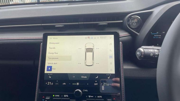 12.3" Digital instrument binnacle, Active Noise Control, Bluetooth connectivity, Cloud navigation, e-Call (emergency call), Electric power steering, Extended Lexus safety system+ 3 includes blind spot monitor, safe exit assist, camera washer and rear cross traffic alert, Front and rear parking sensors with intelligent clearance sensor, Front and rear smart entry, Head up Display, Lane change flasher function, Lexus link connected services, Lexus safety systems+ 3 includes dynamic radar cruise control, pre collision system day and night, lane tracing assist, road sign assist, Pre-collision system with driver monitor, Push button start, Rear view camera, Tailgate, Wireless Apple CarPlay and wired Android Auto, Wireless Smartphone charger, Vehicle dynamic integrated management (VDIM), 1 USB (Type-C) charging ports in bottom of the instrument panel, 1 USB (Type-C) multimedia communication ports in bottom of the instrument panel, 1 USB (Type-C) ports inside front console box, 2 USB (Type-C) ports for charging in rear, 6 speaker audio system, AM/FM and DAB radio, Lexus Link Connect with 9.8" Touchscreen, Rear side monitor, Auto dimming interior rear view mirror, Auto headlights, Black wheel arches, Electric adjustable/heated/auto folding door mirrors, Front and rear electric windows, Full body colour bumpers, LED 3rd brake light, LED daytime running lights, LED rear lights, Power back door without kick function, Privacy UV glass, rear doors and tailgate, Rain sensing wipers, Rear side wing doors, Rear wiper, Single bulb LED headlights with auto high beam, Wet arm wipers, 12V accessory connector in front console box, 3 bench rear seats in 2nd row, 3 rear headrests, 6 way manually adjustable front seats, 60/40 split folding rear seat, Aluminium scuff plates, Armrest with sliding cup holder, Centre armrest with storage, Cup holder in centre console, Driver and passenger door pocket, Driver's lumbar support, Dual zone automatic air conditioning, Front headrests, Glovebox, Heated front seats, Illuminated entry system (cabin, footwell, console and door handles), Nanoe-X Technology, Single colour ambient lighting, Single passenger seat, Storage tray under audio panel and lower tray, Synthetic leather gear lever, Synthetic leather steering wheel, Touch Sensor Buttons on Steering Wheel, Tsuyasumi interior ornamentaion, Under deck storage, 2 x Isofix child rear seat restraints, 3 point ELR (Emergency Locking Retractor) front seat belt with pretensioners, 3x3 point rear seat belts, ABS, Adjustable seatbelt anchor points, Driver and front passenger side airbags, Driver and front passenger single stage airbags, Driver knee airbag, E-Latch electric door release, Electronic parking brake, ESP, Front and rear curtain shield airbags, Front centre airbag, Manual rear child locks, Passenger airbag cut-off switch, Tyre pressure monitoring system, Alarm/anti-theft (with siren and 2 sensors), Engine immobiliser, Thatcham approved locking wheel nuts, Two motion door lock with double lock, VIN etching, Tyre repair kit,