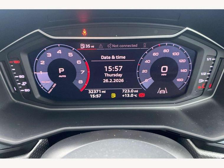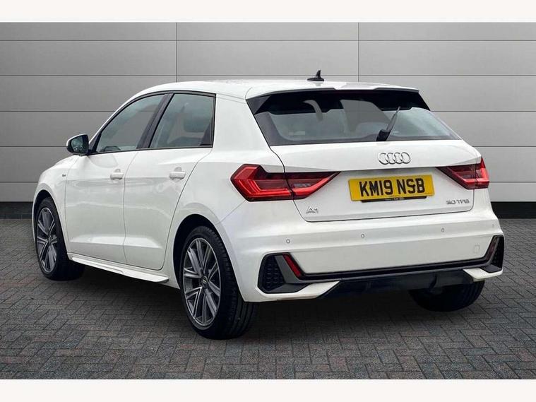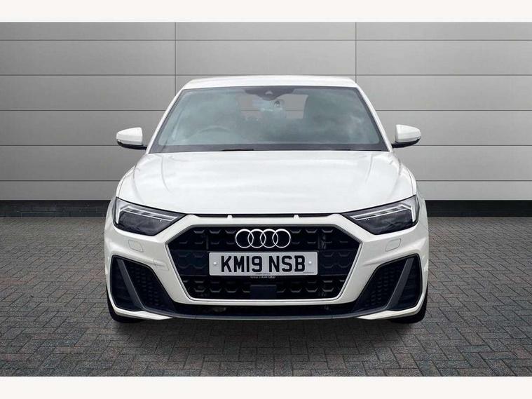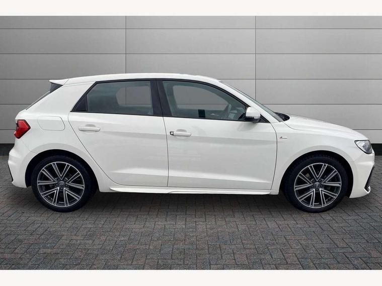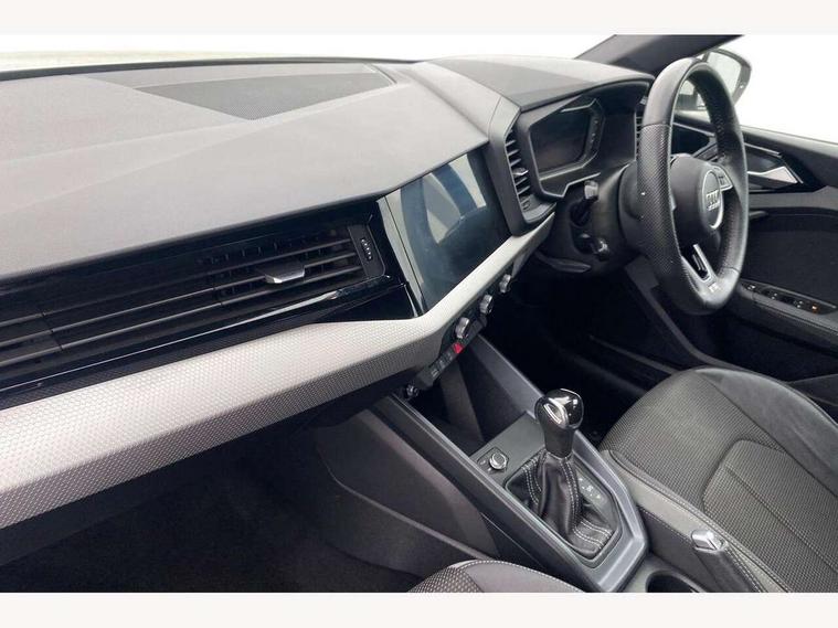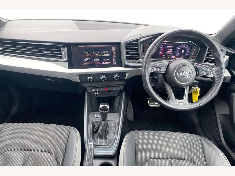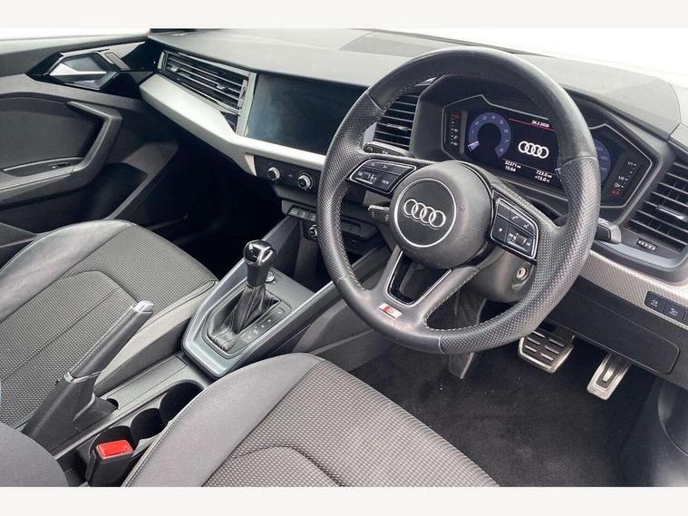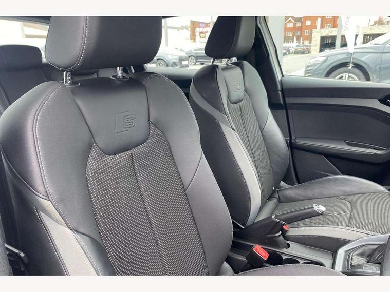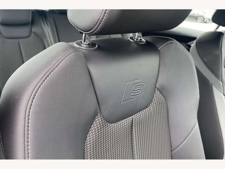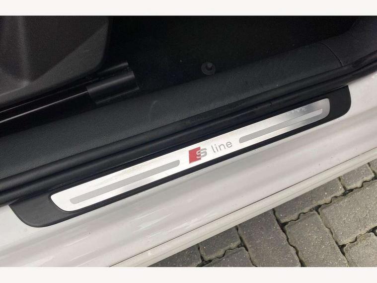 10.25" Digital instrument cluster display screen, Audi connect safety emergency and service including E-call, Audi drive select, Audi smartphone interface, Automatic start/stop system, Bluetooth interface, Driver's information system, Electromechanical power steering, Lane departure warning system, Service interval indicator, Speed limiter, Voice control system, Washer fluid level indicator, Sports suspension, 1 x SDXC card reader, 1 x USB type C and 1 USB type A charging points, Audi music interface, Bluetooth audio streaming, DAB Digital radio, MMI radio plus with 8.8" colour MMI display screen and MMI touch, Auto dimming rear view mirror, Body colour side sill mouldings, Body coloured bumpers, Body coloured door mirrors, Door sills with aluminium inlays and S Line logo, Electric front and rear windows, Front side air inlets in grained matt black and C frame in titanium black, Heat insulating glass windscreen and side windows, Heated rear windscreen, LED headlights with LED rear lights + dynamic rear indicators, Matt aluminium silver tailpipe trim, Matt black radiator grille frame, Matt platinum grey in front spoiler clip and rear diffuser clip, Rain and light sensors, Rear fog lights, Rear wiper, S line badges on front wings, S line exterior bumpers, S line roof spoiler, Side air inlet frames titanium black, Side front spoiler lips in grained matt black, 12V socket in centre console with two cup holders, 3 rear seats, Black cloth headlining, Driver and passenger seat with manual height adjust with forward and backwards adjustment, Front and rear black floor mats with contrast stitching in fine silver, Front head restraints, Height and reach adjustable steering wheel, ISOFIX child seat mounting in front passenger and rear outer seats, Leather gear knob with aluminium trim, Leatherette handbrake grip, Luggage compartment light with front and rear reading lights, Lumbar adjustment for front seats, Rear head restraints, Split folding rear seats, Stainless steel pedals, 3x3 point rear seatbelts, Audi pre-sense front with pedestrain and cyclist recognition, Brake assist function, Driver and front passenger airbag with front side and head airbags, Electronic Stability Control including ABS, EBD, ASR and EDL, Front and rear seatbelt reminder, Front passenger airbag deactivation switch, Hill hold assist, Seatbelt height adjustment for front seats, Seatbelt monitoring, Tyre pressure warning light, Warning triangle and first aid kit, Anti theft alarm, Anti theft wheel bolts and loose wheel warning, Immobiliser, Remote central locking with 2 remote folding keys, Aluminium trim for control switches, air vents and digital instrument cluster, Silver grey inlays polygon structure in diamond paint finish, Structured grey accent areas including air vents, door handle recesses and centre console in quartz paint finish,