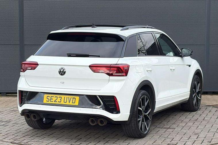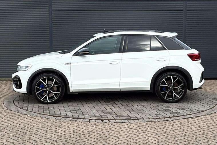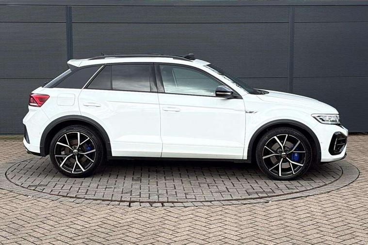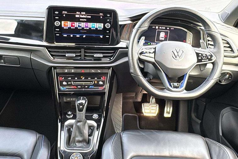 10.25" Digital cockpit pro, Bluetooth mobile phone interface, Driver alert system with fatigue detection, Driver tips and journey analysis, Emergency call service, Lane keeping system Lane Assist, Modified key software - reduce switch off time for key status change to Long no motion, Online services, Park assist including front and rear parking sensors, Service interval indicator, Tailgate/trunk lid release from outside, Think blue trainer driver tips and journey analysis, Warning sound and light for front seatbelts unfastened, Wireless app connect, Battery regeneration during braking, Four wheel drive, Start/stop function with battery regeneration, Diversity antenna for FM reception, Front and rear 6 speakers, Music playback - MP3, WMA and AAC files, Premium USB cable in choice of either Apple or Android smartphone compatibility, SD card slot, Simultaneous pairing of 2 compatible mobile devices, Title and cover art display, We Connect and We Connect Plus functionality, 3rd brake light, Auto dimming interior rear view mirror, Automatic hazard lights activation under emergency braking, Automatic headlight control with LED separate daytime running lights with coming/leaving home function, Extended roof spoiler, Exterior mirrors aspherical on driver side, convex on front passenger side, External USB type C socket and charging sockets, Front windscreen wiper with intermittent wipe and 4 position delay, Heated rear window, LED Plus headlamps, LED rear combination lamps, LED rear number plate lights, LED tail lamp rear comination lamps, Power windows with comfort operation and circuit breaker, Privacy glass for rear side windows and rear window, R-Line design body coloured bumpers, Rain sensor, Rear fog light on one side and reversing lights on both sides, Rear side wing doors, Rear wash/wipe with intermittent wipe setting, Remote electrically foldable door mirrors, puddle lights and reverse activated passenger's door mirror, 12V power socket in centre console, 3 rear head restraints, 3 seat bench in 2nd row, 4 load lashing points in luggage compartment, Air care climatronic air conditoning system with active combination filter and 2-zone temperature control, Ambient lighting - 10 colour (blue), Black roof lining, Chrome plated radiator grille inserts, air vent surrounds and light switch surrounds, Door and side trim panel with leatherette insert, Drawer under drivers seat, Driver/front passenger seat height adjustment, Front + rear carpet mats, Front centre armrest, Front cupholders x 2, Front footwell illumination, Front scuff plates with R logo in door apertures, Front sport seats, Heated leather wrapped multi function sports steering wheel with tiptronic, Instrument lighting, white adjustable panel illumination, Interior light delay, Isofix child seat preparation, Leather gearshift handle, LED interior light with switch off delay/dimmer and 2 front/rear LED reading lights, Load-through provision with cup holder when folded down ('Unsplit rear seat bench, split folding backrest, with centre armrest), Luggage compartment lighting, Lumbar support for driver's and front passengers seat, Non-folding front passenger seat backrest, R-logo stitching in floor mats, Single front passenger seat, Stainless steel pedals, Storage compartment in left and right luggage area, Storage compartment in rear doors, Storage compartments in driver and front passenger doors, Sunvisors with illuminated vanity mirrors, Variable boot floor, height adjustable and removable, Driver assistance pack without proactive passenger protection - T-Roc, R styling pack - T-Roc, 3 point height adj front seatbelts + pretensioners, 3 point seatbelts in outer rear with ECE label, ABS, Child locks on rear doors, Driver and front passenger airbag with front passenger airbag deactivation, Driver and front passenger safety-optimised head restraints, Drivers seatbelt reminder, Electronic parking brake, Electronic Stability Control (ESC) inc EDL (Electronic Differential Lock) and ASR (Traction Control), Front and rear passengers curtain airbag system including front side airbags, Front assist with city emergency braking and pedestrian monitoring, Front seat side impact airbags, Hill descent control, Hill start assist, Predictive pedestrian protection, Rear disc brakes, Single tone horn, Tyre pressure loss indicator, Volkswagen roadside assistance, Alarm with interior protection, Anti-theft alarm system with interior monitoring, backup horn, and towing protection, Keyless entry and start, Remote central locking with SAFELOCK, radio remote control with 2 remote control folding keys, Trims for alloy wheels,