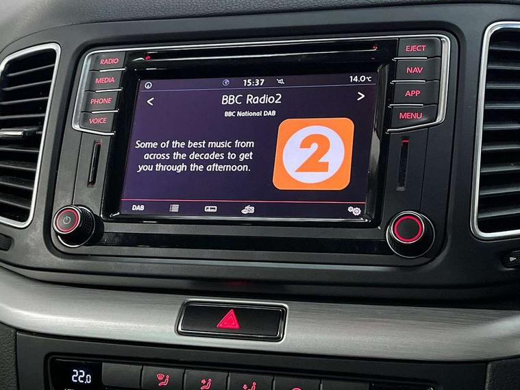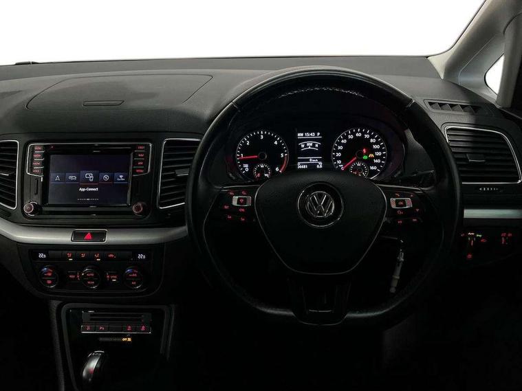 Adaptive cruise control, Bluetooth telephone and audio connection for compatible devices, Discover navigation system with 8.0" colour screen, radio/CD player, VW media control, TMC+, European map data with car-net guide and inform, Door/boot open warning light, Driver alert system, Dynamic traffic sign recognition, Front and rear parking sensors, Front assist with city emergency braking and speed limiter, Lane assist and camera controlled warning system, Low washer fluid warning light, Service interval indicator, Side scan and radar sensor controlled warning system for lane change and blind spot with visual warning via light in door mirror housing, Speed sensitive power steering, Warning buzzer and light for front seatbelts unfastened, We Connect Go Dongle, Battery regeneration during braking, Diesel particulate filter, Stop/start function, 2 USB charging points in 2nd row, Auxiliary socket for external MP3 player, DAB Digital radio, Multi device interface (MDI) with USB connection, Music playback - MP3, WMA and AAC files, Premium USB cable for Apple or Android smartphone compatibility, SD card slot, Simultaneous pairing of 2 compatible mobile devices, SMS Functionality, Title and cover art display, Auto dimming rear view mirror, Automatic coming/leaving home lighting function, Body colour bumpers, Body colour door handles, Body colour door mirrors with integrated indicators incorporating LED Technology, Chrome louvres in grille, Chrome trimmed front air intake surrounds, Chrome trimmed side windows, Dusk sensor + auto driving lights, Electrically adjustable and heated door mirrors, Front and rear electric windows, Front windscreen wiper with intermittent wipe and 4 position delay, Gloss black radiator grille, Heated rear window, High level 3rd brake light, Intermittent rear wash/wipe, Load sill protection, Rain sensor, Rear tinted glass 65% approx light absorbing from B pillar backwards, 12V socket in centre console and luggage area, 2 single seats foldable in 3rd row, 2nd row outer seats floor storage compartment in footwell, 2x Rear coat hooks, 3 single seats foldable in 2nd row, 3 spoke multifunction leather steering wheel with gear knob, radio controls, multifunction computer and paddle shift, 4 way adjustable front head restraints, 5 Rear head restraint, Branded points of interest, Carpet mats - front, 2nd and 3rd row, Centre dash storage with lid, Easy folding seating system 2nd and 3rd row seats, Electric adjustable driver's seat with backrest and lumbar support, Folding front centre armrest + storage, Front comfort seats, Front cupholders x2 with covers, Front passenger seat height + lumbar support, Front seat back map pockets, Front seatback folding tables, Front/rear door stowage bins, Height/reach adjust steering wheel, Illuminated vanity mirrors, Interior light with delay, LED reading lights, Load lashing points in luggage compartment chrome plated and folding x 2, rigid x 2, Lockable, illuminated, cooled glovebox, Luggage area lamp, Luggage hooks, Rear seat easy entry, Retractable/removable luggage compartment cover, Storage compartment in 2nd row centre console, Storage compartment in luggage compartment, Storage compartment in rear doors, Storage compartment in roof console, Storage drawers under front seats, Sun visors, Through load system, 3 point rear seatbelts, ABS, Automatic post collision braking system, Curtain airbags for 1st/2nd/3rd rows, Door open warning reflectors, Driver/Front Passenger airbags, Drivers knee airbag, Electronic child locks for rear doors and rear electric windows, Electronic parking brake with auto hold, ESP with EDL + ASR, Front seat side impact airbags, Front ventilated disc brakes and rear disc brakes, Height adjustable front 3 point seatbelts + pretensioners, Hydraulic Brake Assist (HBA), Manual passenger airbag deactivation function, Tyre pressure loss indicator, Alarm with interior protection, Electronic engine immobiliser, Remote central locking with 2 remote folding keys, Speed sensitive auto door locking (can be switched off), Triangle titan decorative inserts in dash centre console and front doors, Self sealing tyres, Tyre mobility kit including compressor and sealing foam,