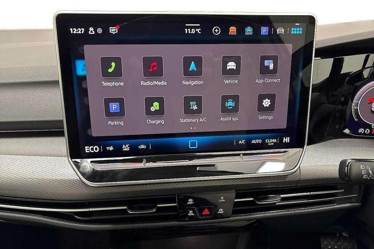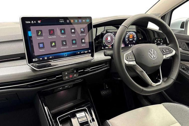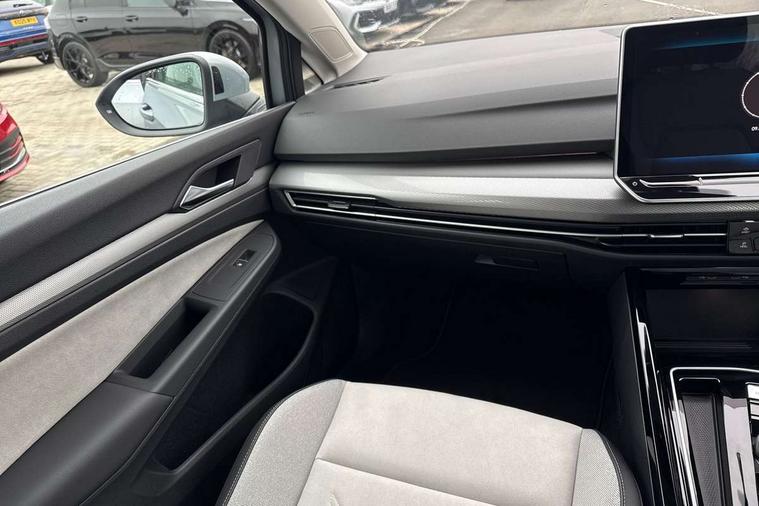 Activated carbon canister, Adaptive cruise control (ACC), Advanced driver attention and drowsiness monitor, Dynamic road sign display, E-Sim card for online connectivity, eCall emergency call system, Multi-color Digital cockpit pro, selection of different info profile possible, Multifunction front facing camera for distance control, Navigation system, Oncoming vehicle braking when turning including swerve support, Side assist blind spot lane change system, rear traffic alert and exit warning system, Speed limiter, Speedo, rev counter, electronic odometer, trip, service interval display, exterior temperature and fuel gauge, Traffic jam assist, Voice enhancer and voice control, Warning signal and warning light for front and rear seatbelts not fastened, We connect plus preparation, We connect preparation, Wireless app connect, Charging cable Mode 2 Type 2 (10A), Charging cable mode 3, type 2 32 A, Hybrid propulsion system, Start-stop system with battery regeneration (recuperation - energy recovery during braking), XDS electronic differential lock for improved traction and handling, 2 USB C ports in front, 2 USB charging sockets on the centre console in the rear charging capacity upto 45W, 6 Speakers - 4 in front and 2 in rear with central speaker, Digital radio reception (DAB), Diversity antenna for FM reception, Gaming platform via car app, Infotainment system with 12.9" display, Mobile phone interface with inductive charging feature, 3rd brake light, Automatic headlamp activation with Coming home and Leaving home feature, Body colour bumpers, Body colour door handles, Body colour door mirrors, Chrome trimmed front air intake surrounds, Chrome trims on the side window bottom, Exterior mirrors convex on the left and aspherical on the right, Front and rear electric windows, Heat insulating windshield made of laminated glass, LED separate daytime running light, Rear exhaust tailpipe, Rear fog light on one side and reversing lights on both sides, Rear side wing doors, Rear windscreen washer and wiper with interval delay, Remote electrically foldable door mirrors, puddle lights and reverse activated passenger's door mirror, Welcome light with surround lighting, 12V socket in front centre console, 12V socket in luggage compartment, 3 rear head restraints, 3 seat bench in 2nd row, Air care climatronic 3 Zone automatic climate control with rear air conditioning control panel, Ambient lighting with 30 colour including LED light unit in front footwell with selectable light colour, Chrome plated radiator grille inserts, air vent surrounds and light switch surrounds, Front + rear black carpet mats, Front centre armrest, ISOFIX anchors for child seats on outer rear bench seats and on front passanger seat compatible for i-Size, Luggage compartment lighting, Plastic gear knob, Rear cupholder and loadthough, Single front passenger seat, Soul black instrument panel, Split folding backrest with centre armrest and unsplit rear seat bench, Standard pedal cluster, Storm grey roof lining, Sun visors with illuminated vanity mirrors, Driver assistance pack - Golf Estate/Hatchback Auto, 3 point height adj front seatbelts + pretensioners, 3 rear three point seatbelts, ABS, Autonomous emergency braking front assist with pedestrian and cyclist monitoring, Child locks on rear doors, Driver and front passenger airbag with front passenger airbag deactivation, Electronic parking brake with auto hold, ESC (Electronic Stability Control), Extended pedestrian protection measures, Hill start assist, Rear disc brakes, Two tone horn, Tyre pressure loss indicator, Volkswagen roadside assistance, Anti theft wheel bolts, Preparation for alcohol interlock, New brushed dark metal decorative inserts for dashboard and front door panels, Tool kit for tyre mobility set, Tyre mobility kit Includes 12V compressor and tyre sealant,