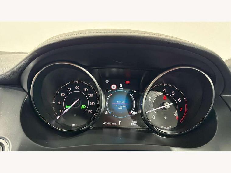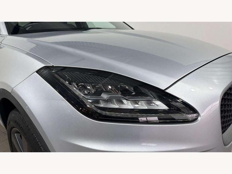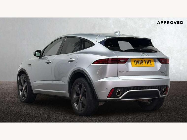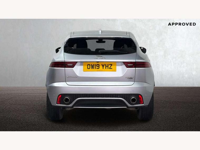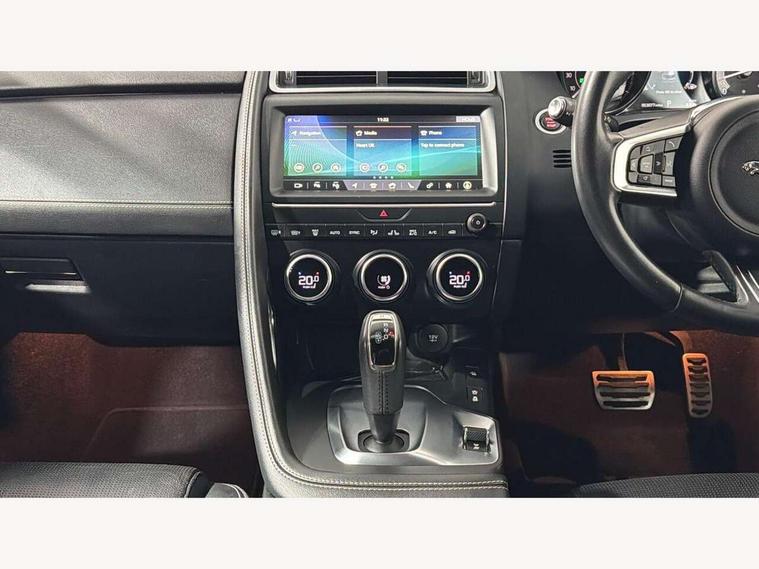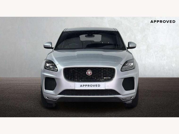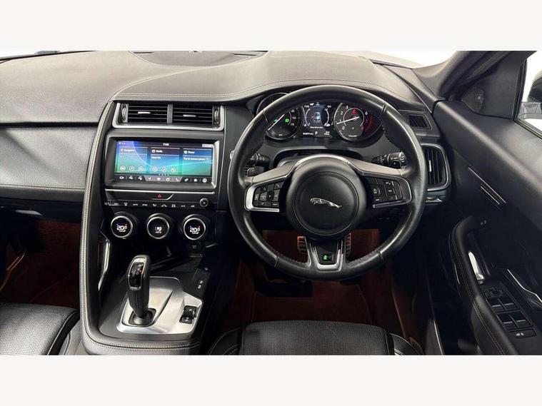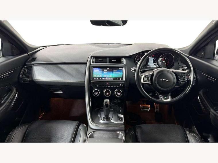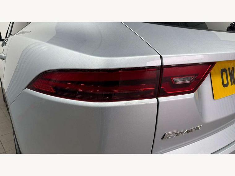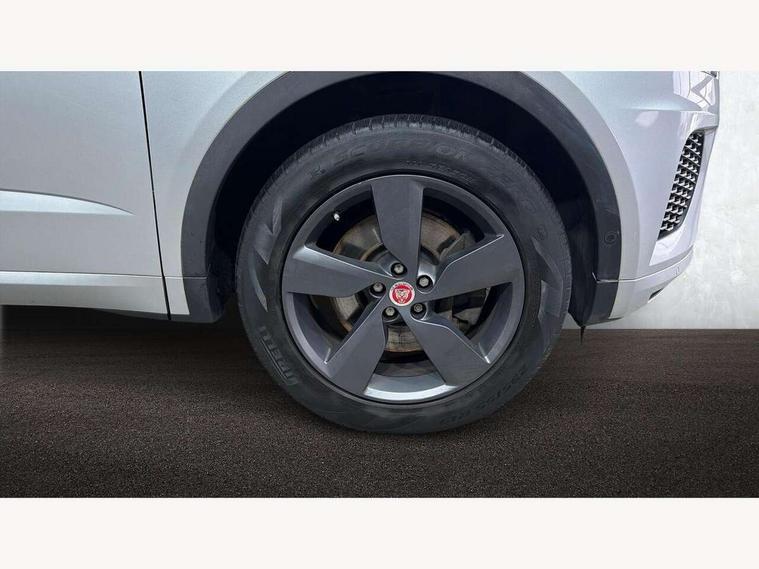 Driver condition monitor, Eco driving style assistant, Electric power assisted steering, InControl remote, InControl Touch navigation pro, Lane keep assist, Outside temperature gauge, Push button starter, Speed proportional steering, Start up sequence with movement in dials and lighting, Traffic sign recognition with adaptive speed limiter, Trip computer, Voice control system, Efficient Driveline, Passive suspension, AM/FM DVD MP3 radio, Bluetooth connectivity including audio streaming, DAB Digital radio, Dynamic volume control, 3 flash lane change indicators, Approach Illumination, Auto dimming rear view mirror, Auto high beam assist, Automatic headlights, Body colour side cladding, Electric folding auto dimming and heated door mirrors with memory + Signature approach lamp, Electric front/rear windows with one touch/auto up/down, Front fog lights, Heated front windscreen, Heated rear window with timer, Heated washer jets, Jaguar script and leaper, R Dynamic badge, R Dynamic body colour bumpers, Rain sensor windscreen wipers, Rear fog lights, Tailgate/boot lid spoiler, Twin tailpipes with finishers, 12V power socket in rear, 2nd row 60/40 split/fold, 2nd row air vents, 3 seat bench in 2nd row, 4 Load area hooks, Black gearshift paddles, Bright metal pedals, Centre armrest console, Centre headrest in row 2, Elasticated loadspace side strap, ISOFIX on outer rear seats, JaguarDrive selector, LED lighting in overhead console, Loadspace cover, Loadspace lamp, Passive front headrests, R branded leather steering wheel, Storage net in luggage compartment, Sunvisors with illuminated vanity mirrors, Tie down hooks in luggage area, Twin front cupholders, Two zone climate control, Connect pro pack - E-Pace, Park pro pack - E-Pace, Smartphone pack - E-Pace, 350mm front brakes, 3x3 point rear seatbelts, ABS, All surface progress control (ASPC), Customer configurable autolock, DSC - Dynamic Stability Control, Electronic brake force distribution, Electronic parking brake, Emergency brake assist, Front airbags with passenger seat occupant detector, Front and rear curtain airbags, Front and rear seatbelt reminder, Front side airbags, Hill start assist, Low friction launch, Power child locks, Torque vectoring brake, Tyre pressure monitoring system, Intrusion sensor and alarm, Locking wheel nuts,