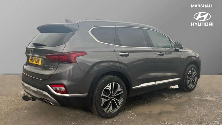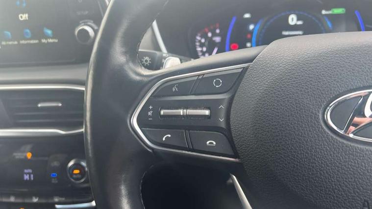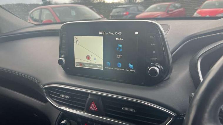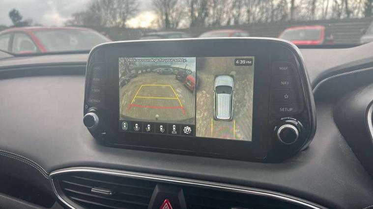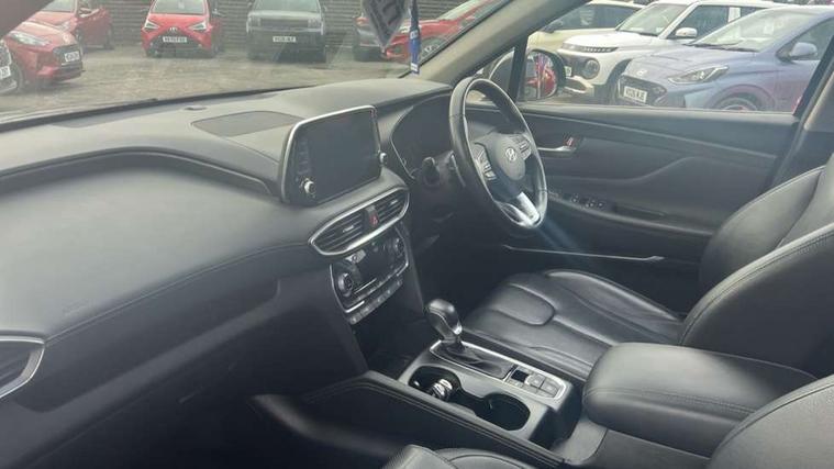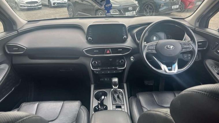 10.25" touchscreen satellite navigation with mapcare and live services, 12.3" TFT supervision cluster display, Apple car play/Android Auto, Blind spot collision avoidance assist, Blind spot monitor, Bluetooth connectivity with voice control, Cruise control - smart adaptive speed control with stop and go function, Drive mode selector, Driver attention alert system, E-call, Emergency stop signalling system, Forward Collision Avoidance Assist (FCA) - Car, Pedestrian and Cycle, Forward Collision Avoidance Assist Junction Turning (FCAJX), Front parking sensor, Head up Display, Highway driver assist, Intelligent speed limit warning, Lane departure warning system with lane keep assist - LKAS, Parking system with surround view monitor, PAS, Rear cross traffic alert, Rear parking sensor, Remote smart parking, Reverse parking collision aviodance assist, Safe exist assist, Smart electric tailgate with hand's free opening function, Smart posture control, Smartphone connectivity, Smartphone wireless charging plate, Trip computer, Self levelling suspension, Auxiliary input socket, DAB Digital radio, Krell premium audio with 10 speakers including external amplifier and subwoofer, Rear USB port, Steering wheel mounted controls, USB connection located in centre console, Automatic defog system, Automatic dimming rear view mirror, Automatic headlights with dusk sensor, Automatic windscreen wiper control, Body colour door handles with chrome inserts, Body coloured bumpers, Body coloured door mirrors, Dynamic bending headlight/cornering lights, Electric adjustable/heated/folding door mirrors, Electric front/rear windows/one touch/anti trap, Electric glass tilt and slide panoramic sunroof, Follow me home headlights, Full LED headlights, Heated rear windscreen with washer, LED daytime running lights, LED front fog lights, LED rear fog light, LED rear lights, Positioning Lights - LED, Privacy glass in rear window and tailgate, Puddle lights, Rain sensor, Rear side wing doors, Rear wash/wipe with intermittent wipe setting, Roof rails, Smart high beam headlights, Solar glass with windscreen shade band, Third brake light, Trailer stability assist, Variable front intermittent wipers, Windscreen wiper de-icer, 12V power point in luggage area, 12V power points in front + rear centre consoles, 2 seat bench in 3rd row, 3 seat bench in 2nd row, 50/50 split/folding 3rd row of seats, 60/40 split folding slide/recline seats 2nd row, Adjustable head restraints, Air conditioning - rear manual temperature control, Bottle holders, Driver seat memory function, Driver's lumbar support, Driver's seat electric adjustments, Driver/passenger sunvisors + illuminated vanity mirrors (drivers with ticket holder), Dual zone climate control, Faux leather door trim, Front and rear door pockets, Front armrest with storage compartment, Front cupholders, Front map reading lights, Front passenger's seat electric adjustments, Front seat and rear pockets, Front/rear interior lights, Grab handles (x3), Heated front seats, Heated outer rear seats, Heated steering wheel, Height/reach adjustable steering column, Illuminated cooling glove compartment, Isofix child seat preparation for front passenger seat, Isofix on 2nd row outer seats, Leather wrapped gear shift knob, Leather wrapped hand brake, Leather wrapped steering wheel, Luggage compartment lighting, Luggage cover, Luggage hooks, Luggage net, Manual rear door side blinds, One-touch folding rear seats, Rear armrest with storage, Retractable load area cover, Single front passenger seat, Sunglasses holder, Underfloor storage system in load area, Ventilated front seats, Trailer wiring pack - Santa Fe, 3 point seatbelts on all seats, ABS/EBD, Childproof rear door locks, Curtain airbags, Downhill brake control, Driver and passenger airbags, Electric parking brake, ESP, Front seatbelt pretensioner, Front side airbags, Height adjustable front seatbelts, Hill start assist control (HAC), Passenger airbag deactivate switch, Rear seat belt pretensioners, Rear seat Occupancy alert, Seat belt reminder, Seatbelt warning lamp, Traction control, Tyre pressure monitoring system, Deadlocks, Engine immobiliser, Keyless entry with start/stop button, Locking wheel nuts, Remote control central locking, Speed sensitive auto door locking, Thatcham category 1 alarm, Tyre repair kit,