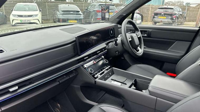12.3" Drivers supervision instrument cluster with LCD display, 360 degree parking sensors, Blind spot collision avoidance assist (BCA), Blind spot view monitor (BVM), Bluelink and Wireless Apple Carplay/Android Auto, Bluetooth connectivity with voice recognition, Drive mode selector, Driver status monitor (DSM), Dual wireless phone charging pad, Emergency services call system, Forward collision avoidance assist (FCA 2.0), Head up Display, Highway drive assist 2 (HDA 2), Intelligent speed limit assist (ISLA), Lane departure warning system (LDW), Lane Follow Assist 2 (LFA 2), Lane keeping assist (LKA), Low washer fluid warning, Navigation based smart adaptive cruise control with stop and go, Over the air software updates (OTA), Parking Collision Avoidance Assist-Reverse (PCA-R), Power assisted steering, Remote smart parking assist, Safe exist assist (SEA), Smart electric tailgate with hand's free opening function, Surround view monitor, Self levelling suspension, Shift by Wire Gear Selector (SBW), 12.3" Touchscreen display with satellite navigation, 2nd Row USB C Ports x2 Charging, 3rd Row USB C Ports x2 Charging, Front USB C port 1 charging and 1 data/charging, Premium BOSE sound system with 12 speakers and subwoofer, Steering wheel audio, phone and cruise controls, Automatic headlights with dusk sensor, Automatic windscreen wipers with rain sensor, Black Styling (Skid plate, Fender upper garnish, Door side garnish, C/D pillars, Rear bumper moulding, DLO), Body colour bumpers, Digital centre mirror, Dynamic welcome lights, Electric adjustable/heated/auto power folding door mirrors, Front and rear electric windows, Heated rear window, Hidden C pillar assist handle, Hidden rear wiper, High beam assist, LED daytime running lights, LED Headlights, LED indicator lights, LED indicators in door mirrors, LED positioning lights, LED taillights, LED third brake light, Manual rear door blinds, Rear side wing doors, Rear windows and tailgate privacy glass, Roof rails, Solar glass windscreen and front windows, Windscreen acoustic film, Windscreen auto defog function, 2nd and 3rd row center armrest with cupholder, 3rd row head restraints, Centre rear head restraint, Driver and front passenger premium relaxation seats, Dual zone climate control air conditioning, Electrically adjustable front seats with 2 way electric lumbar support, Front head restraints, Front seats with memory, Heated front seats, Heated rear seats, Height and reach electrically adjustable steering column, Leather wrapped heated steering wheel, Luggage cover, Luggage hooks, Luggage net, Multi colour LED ambient lighting, Nappa leather upholstery, Rear head restraints, Single front passenger seat, Split folding (50/50) third row seats, Split folding (60/40), sliding and reclining second row seats, Sun Visors with driver and passenger illuminated vanity mirrors, Two front cup holders, UV-C Tray, Ventilated front seats, Trailer wiring pack - Santa Fe, 3 point seatbelts on all seats, Adjustable regenerative braking paddle shifters, Airbag - Front, front side, curtain and centre front airbags, Anti-lock brake system (ABS), Dynamic brake control, Electric parking brake with auto hold function, Electronic Stability Control (ESC), Hill start assist control (HAC), Manual child lock in rear doors, TSA (Trailer Stability Assist), Tyre pressure monitoring system, Immobiliser, Smart Key - Keyless entry with Power On/Off button, Black ink interior decals, 20" Black calligraphy alloy wheels, Tyre mobility kit,