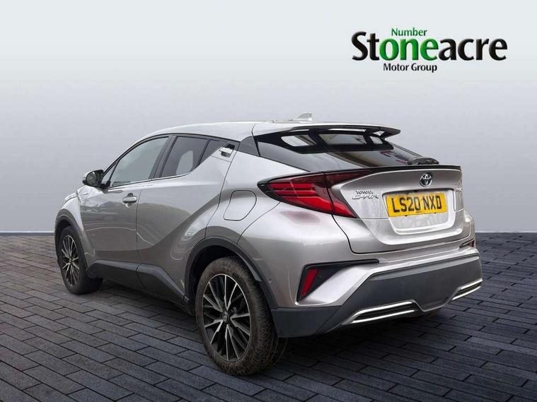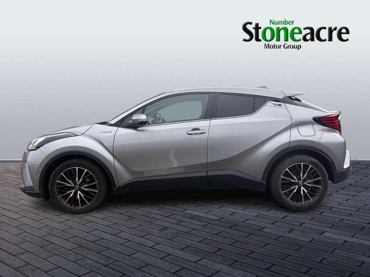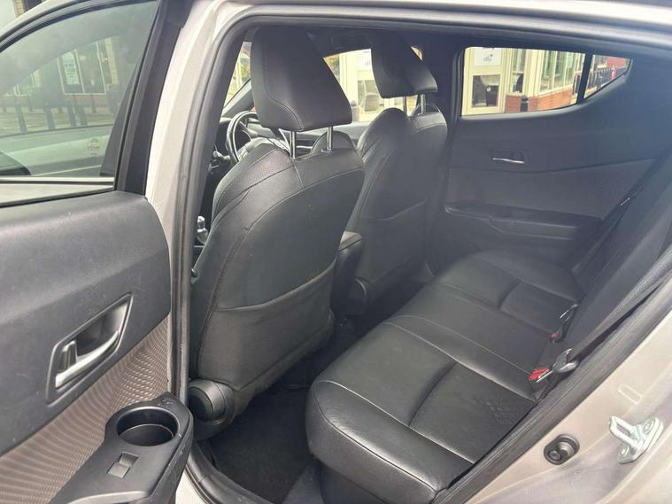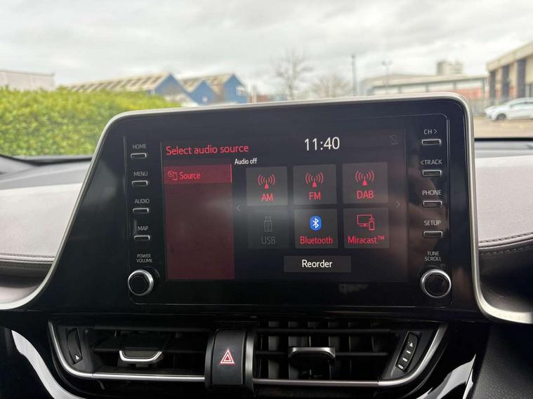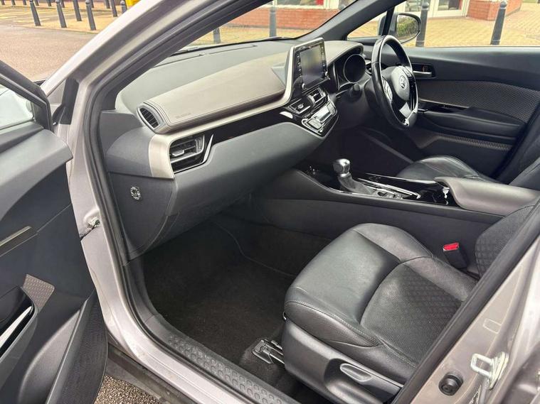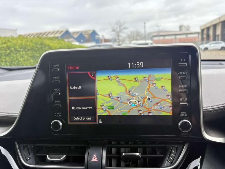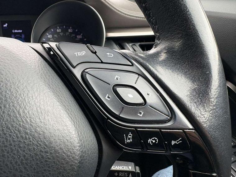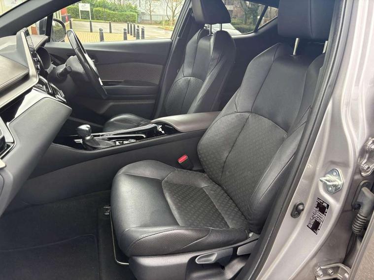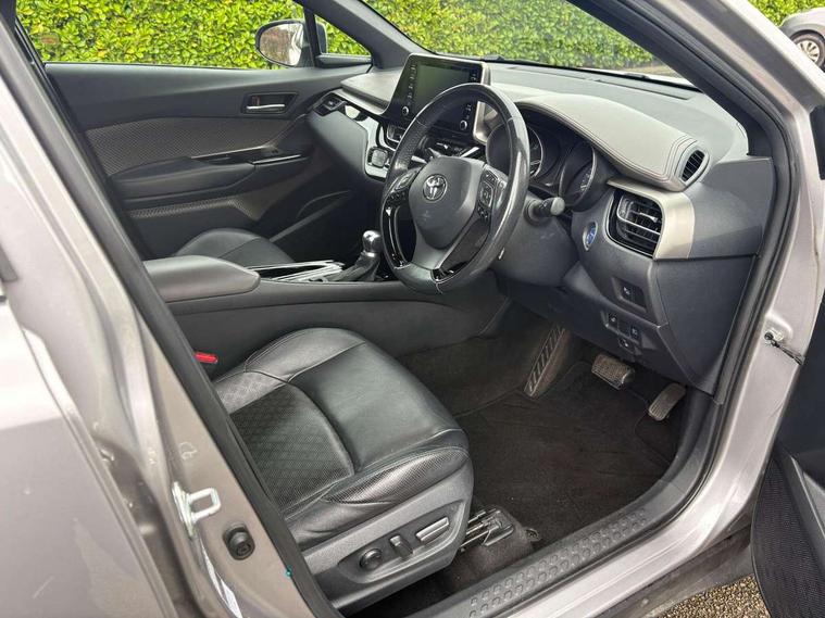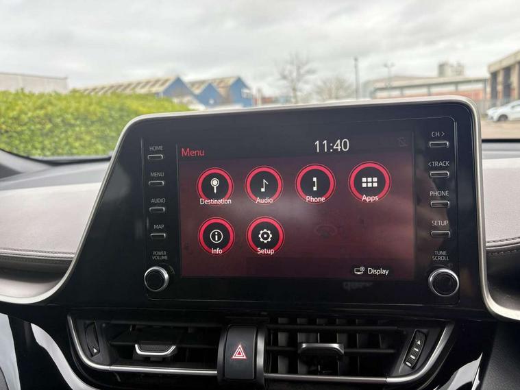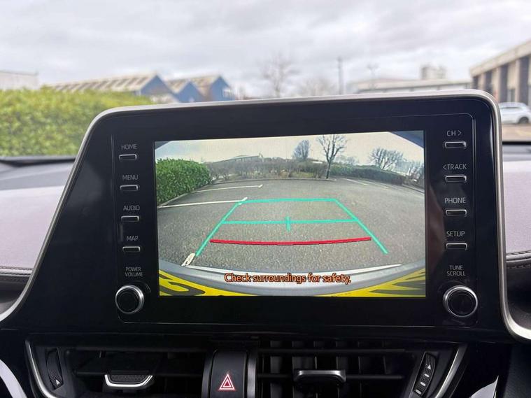 4.2" coloured TFT screen for multi-information display, Adaptive cruise control, Bluetooth connectivity, Electric power steering, Hybrid system indicator, Lane departure alert with steering control, Remote boot door release in cabin, Remote boot door release in key, Reversing camera, Road sign assist - RSA, Simple Intelligent parking assist, Touch 2 Go navigation system, Trip computer, Voice recognition, Vehicle Stability Control (VSC), 6 speakers, Aux connectors + 12V front outlet, DAB Radio (Digital Audio Broadcasting), Toyota touch 2 multimedia system with 8" display, USB connector integrated with radio and CD player, Wi-fi connectivity, Adaptive front light system, Adaptive LED Headlights, Anti-jam protection on power windows, Auto high beam, Auto up and down function on all power windows, Automatic headlight levelling, Automatic headlights, Automatic headlights cut-off, Black and body coloured rear bumper, Black front bumper, Black upper front grille, Body colour door handles, Body colour door mirrors, Boot door release with push button, Electric heated door mirrors, Follow me home headlights, Front and rear power windows, Front spoiler, Honeycomb lower front grille, LED daytime running lights, LED fog lights, LED front light guide, LED High mounted stop light, LED rear brake lights, LED rear combination lights, Noise reduction layer on front windows and windscreen, Power adjustable door mirrors, Privacy glass, Rear spoiler, Rear tailgate, Rear window defogger, Rear window wiper, Shark fin antenna, UV-filter on driver and passenger windows, UV-filter on rear windows, 12v power outlet - front, 3 rear headrests, 3 spoke leather steering wheel, 60/40 split folding rear seat, Adjustable rear headrests, Adjustable speed limiter switch on steering wheel, Assist grips front and centre pillar, Audio and telephone switches on steering wheel, Black front door assist grips, Blue ambient lighting on front cup holders, Blue ambient lighting on front doors, Boot light, Chrome interior door handles, Driver and front passenger personal light, Driver and front passenger Whiplash Injury Lessening seats, Driver and passenger seatback pockets, Dual zone automatic air conditioning, Front cupholders, Front head restraints, Front sports seats, Glovebox with internal light, Hard tonneau cover, Heated driver and front passenger seats, Heated steering wheel, Hooks for luggage holding net, Humidifying Nanoe air purifier, Illuminated entry system, Isofix attachments on rear seats, Leather gearshift, Light on driver sun visor, Light on passenger sun visor, Manual telescopic steering wheel, Manual tilt steering wheel, Microphone on front personal light, Mirror on driver sun visor, Mirror on passenger sun visor, Multimedia switches on steering wheel, Pollen filter, Power adjustable lumbar support on driver seat, Power tilting cushion on driver seat, Shopping bag hooks, Slow opening on lower glovebox, Voice recognition switch on steering wheel, Leather pack - C-HR, Tech with parking sensor pack - C-HR, 16 Disk front wheel brake, 3x3 point rear seatbelts, ABS+EBD+Brake assist, Electronic parking brake, ESP + traction control, Front and rear seatbelt reminder, Front passenger airbag on/off switch, Hill start assist control (HAC), Pre collision system with pedestrian detection, Pre-tensioners and force limiters, Rear door child safety locks, SRS Airbags - Driver + Front passenger, front side, front and rear curtain and driver's knee airbags, Toyota safety sense, Tyre pressure monitoring system, Glass-breaking alarm sensors, Immobiliser, Intrusion alarm, Intrusion sensor, Motion sensor alarm, Power door locks, Power passenger window lock, Remote central locking, Remote door lock, Black lower dashboard, Black lower driver dashboard, Dark brown upper dashboard, Piano black console, Silver deco line on upper dashboard, Tyre repair kit,