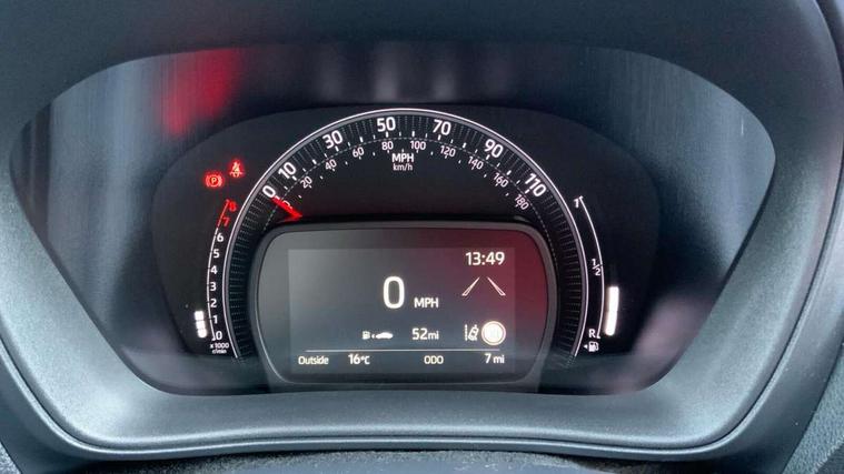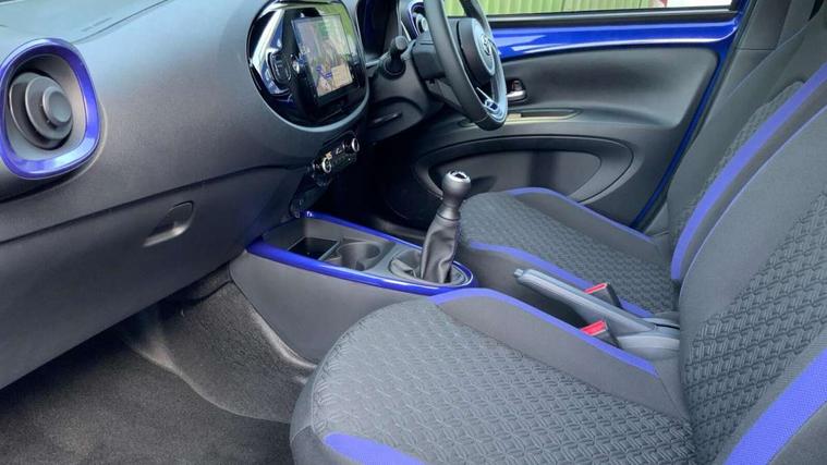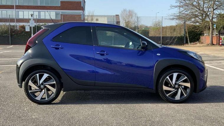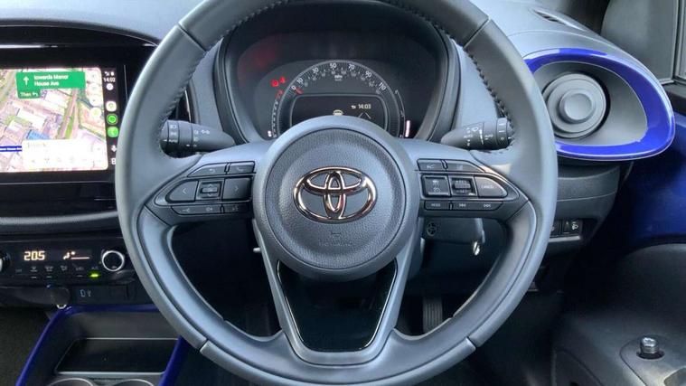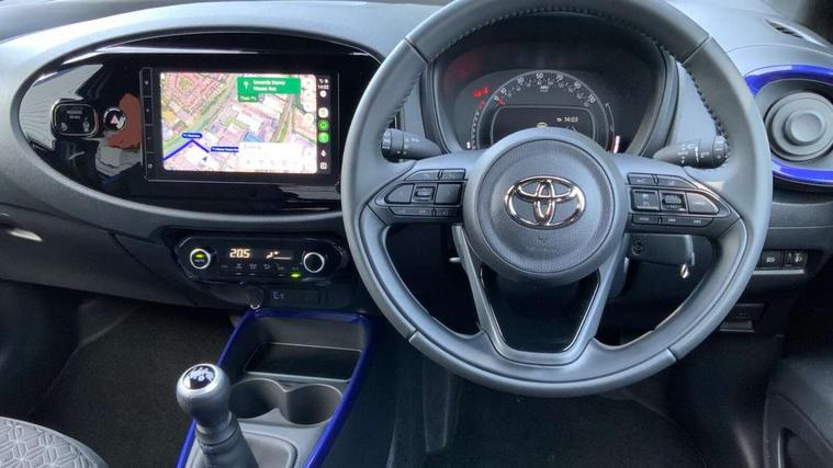 4.2" TFT colour screen, Adjustable speed limiter, Analogue speedometer, Bluetooth connectivity, Digital tachograph, Driver attention alert system, eCall emergency call system, Electric power steering, Intersection turn assist, Key reminder warning, Noise reduction kit, Pre collision system with emergency steering assist, Reversing camera with static guide lines, Smart phone integration with Apple car play/Android Auto, Speed limit display, Start and stop, Vehicle Stability Control (VSC), 4 speakers, 9" HD multimedia display touch screen with Toyota smart connect, DAB digital audio broadcast, USB connector, Auto headlights, Auto wipers, Automatic headlights cut-off, Bicycle towing hook, Black contrast roof, Black side protection mouldings, Black wheel arch mouldings, Body colour door handles, Body coloured front bumper, Boot door scuff plate, Eclipse black rear bumper, Electric heated door mirrors, Follow me home headlights, Front fog lights, Front power windows, Gloss black door mirrors, Gloss black upper front grille, Headlight cut-off reminder, LED daytime running lights, LED front light guide, LED High mounted stop lamp, Manual day/night rear view mirror, Manual headlight levelling, Pagoda roof, Power adjustable door mirrors, Power back door, Privacy glass, Projector halogen headlights, Rain sensor, Rear combination lights LED bulb type, Rear side wing doors, Rear windscreen defogger, Rear windscreen wiper, Short antenna, Variable intermittent windscreen wipers, 12v power outlet - front, 2 seat bench in 2nd row, 3 spoke leather steering wheel, 50/50 split folding rear seat, Adhesive roof headlining, Adjustable speed limiter switch on steering wheel, Audio and telephone switches on steering wheel, Auto air conditioning, Black insert on steering wheel, Black roof lining, Boot light, Centre room light, Chrome interior door handles, Chrome surround on air conditioning buttons, Clean air filter, Console box storage in body color, Fabric upholstery, Floor mats, Front and rear cup holders, Front head rest deco art, Front head restraints, Height adjustable driver seat, Intelligent adaptive cruise control switch on steering wheel, ISOFIX child restraint system on rear seats, Lane departure alert switch on steering wheel, Leather gearshift knob, Manual tilt steering wheel, Manually reclining and sliding driver seat, Manually reclining and sliding front passenger seat, Multimedia switches on steering wheel, Pollen filter, Rear door pockets, Rear head restraints, Satin silver insert on gear shift knob, Single compartment glovebox with lights, Single front passenger seat, Soft tonneau cover, Sun visors with mirror on driver and passenger side, Voice recognition switch on steering wheel, Toyota safety sense pack - Aygo X, Anti lock braking system + Electronic brake force distribution, Child safety door lock, Emergency brake light signal (EBS), Hill start assist control (HAC), Passenger airbag on/off switch, Seat belt reminder for front and rear seats, Supplement restraints system (SRS) - 6 airbags, Traction control, Tyre pressure warning system, Immobiliser, Remote power door locks, Black wheel centre caps, Tyre repair kit,