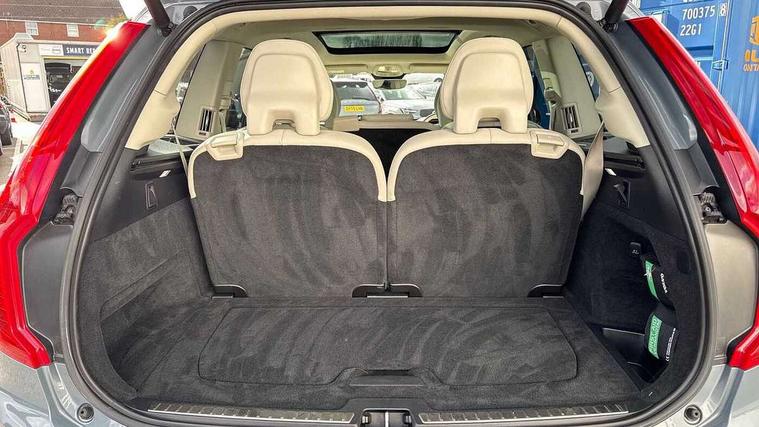 12.3" Progressive Driver Display, 360 degree surround view parking camera with side proximity sensors, 9" centre console portrait touch screen, Adjustable steering wheel force, Bluetooth hands free telephone connection, Driver alert control with lane keeping aid, Driver assistance (pilot assist and adaptive cruise control), Driver awareness - Blind spot information system with steer assist, cross traffic alert with autobrake and rear collision warning and mitigation, Emergency call service, Front and rear park assist, Google Automotive Services - Navigation with Voice recoginition and google assistant, Handsfree power tailgate opening and closing, Oncoming Lane Mitigation, Power operated tailgate, Service interval indicator, Speed limiter, Speed sensitive steering, Trip computer, Volvo on call, Wireless Mobile Phone Charger, 8 speed automatic transmission with start/stop + manual change functions, Touring chassis, DAB Radio (Digital Audio Broadcasting), Premium Sound by Harman Kardon, dirac unison, dolby pro logic II surround sound, 13 speakers/600W output and fresh air subwoofer, Steering wheel remote infotainment controls, Active bending headlights with adaptive shadow technology, Adaptive brake lights with high level LED brake lights, Auto dimming interior + exterior mirrors, Auto folding and heated power door mirrors, Automatic headlight levelling system, Automatic LED Headlights + Active high beam incorporating daytime running lights, Body colour bumpers, Front and rear power windows, Headlight cleaning system, Heated front windscreen, High gloss black door mirrors and window surround, High gloss black front and rear bumper deco, High gloss black mesh front grille with surround, Home safe and approach lighting, Integrated roof rails in high gloss black, LED front fog lights with cornering light function, Power glass tilt and slide panoramic sunroof with sun curtain, Puddle lights, Rain sensor with automatic windscreen wiper activation, Rear side wing doors, Rear wash/wipe with intermittent wipe setting, Roof antenna, Roof spoiler, Visible VIN plate, 12V socket front tunnel console, rear passenger compartment and cargo area, 2 seat bench in 3rd row, 2nd Row centre armrest with and cupholders, 3 seat bench in 2nd row, 4 zone electronic climate control with Clean zone air quality system + pollen filter, A-pillar parking ticket holder, Advanced interior air cleaner PM2.5, Air conditioning for 3rd row of seats, Ambient door and instrument panel lighting, B Pillar ventilation, Bright metal luggage threshold, Centre console cupholders and storage, Floor mats, Front and rear door pocket and front cupholder illumination, Front and rear reading lights, Theatre lighting and centre armrest storage illumination, Front footwell and side step illumination, Front headrests, Front seat cushion extensions, Heated front seats, Heated rear seats, Heated steering wheel, Height/reach adjustable steering column, Illuminated front and rear tread plates, Illuminated luggage compartment, Illuminated tailgate, Illuminated vanity mirrors + ticket holder, Illumination lockable glovebox compartment, Integrated sun curtains in rear doors, Isofix outer rear child seat preparation in 2nd row, Load protection net, Luggage compartment divider with grocery bag holder, Outboard armrest with cupholder and storage for third row passengers, Power driver seat with multi directional lumbar support and memory for seat and exterior mirrors, Power folding 2nd row headrests, Power passenger seat with multi directional lumbar support and memory, Rear footwell and side step illumination, Rear headrests, Semi automatic load cover, Single front passenger seat, Underfloor luggage compartment storage, 7 three point seatbelts, City safety with steering support includes pedestrian, cyclist and large animal detection and front collision warning with full auto brake, Drivers knee airbag, Dual stage driver/passenger airbags, First aid kit, Front seats SIPS airbags, Hill descent control - off drive mode, Hill start assist, IC (Inflatable Curtains) - Full Length, Passenger airbag cut-off switch, Power child locks on rear doors, Power parking brake with auto hold function, Road sign information display, Run off Road Mitigation, Run off Road Protection, Seatbelt reminder and pretensioners for all seats, SIPS (Side Impact Protection System), Slippery road and hazard light alert, Stability and Traction Control with Spin control, Engine Drag Control and Corner Traction Control, Tyre pressure monitoring system, Vehicle deceleration control with Anti-lock Brake System, Electronic Brake Distribution and Emergency Brake Assist, Warning triangle, WHIPS whiplash protection system - front, Anti-theft alarm including immobiliser/volume sensor + level sensor, Care key with user defined top speed, Key integrated remote control central locking + fuel flap with deadlocking system and auto open/close power windows, Keyless drive includes keyless entry and keyless start, Locking wheel nuts, Private locking for glovebox and tailgate, Tailored Instrument Panel and Door Tops with Contrast Stitching, Tempa spare wheel and jack,