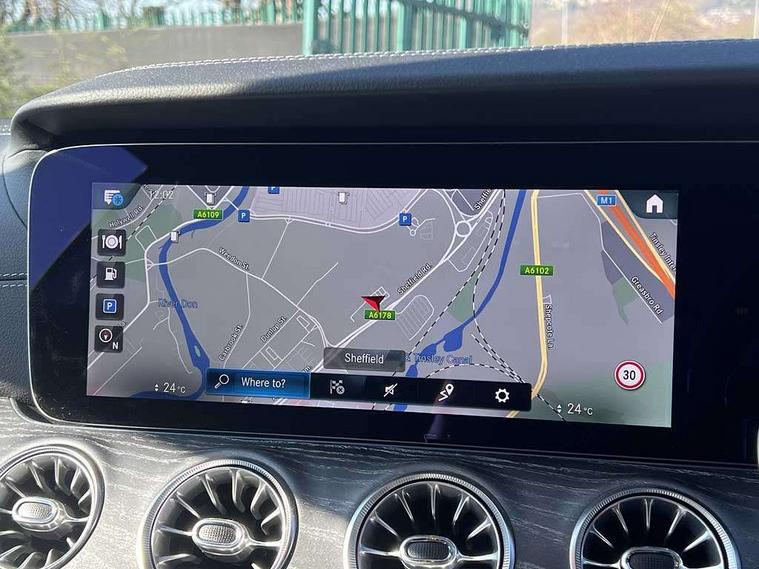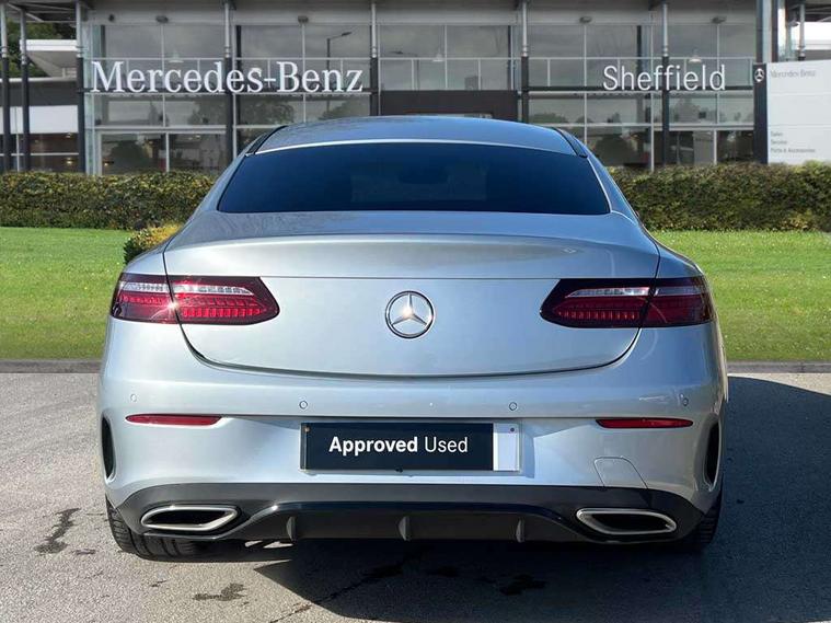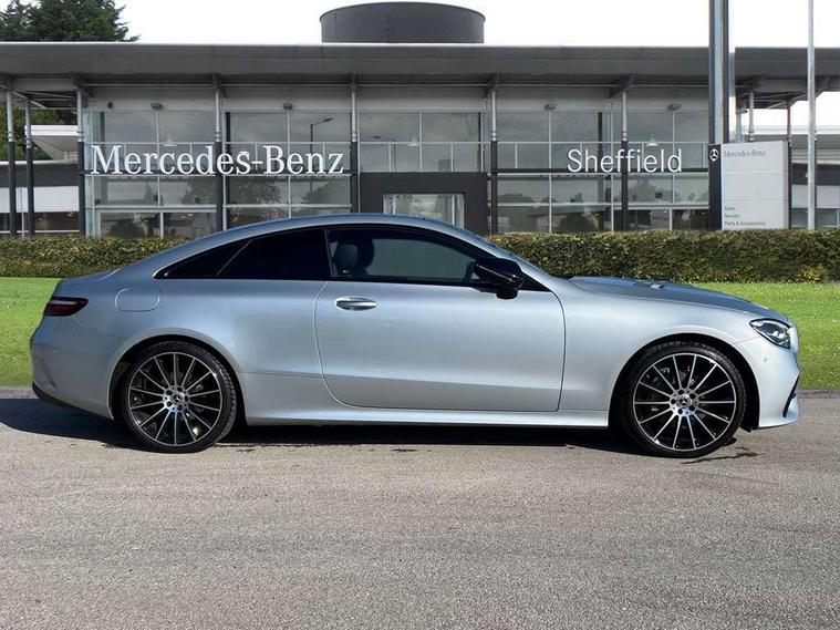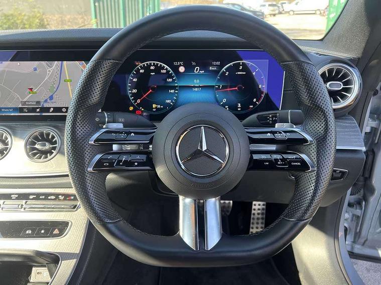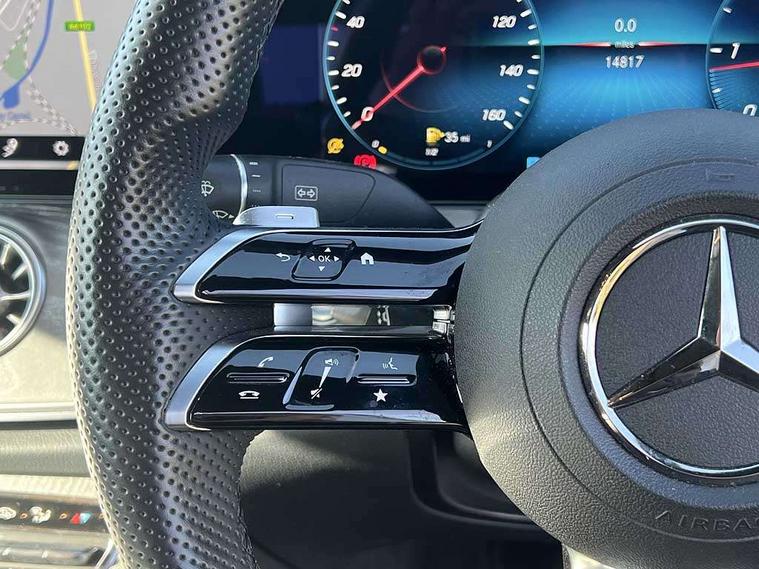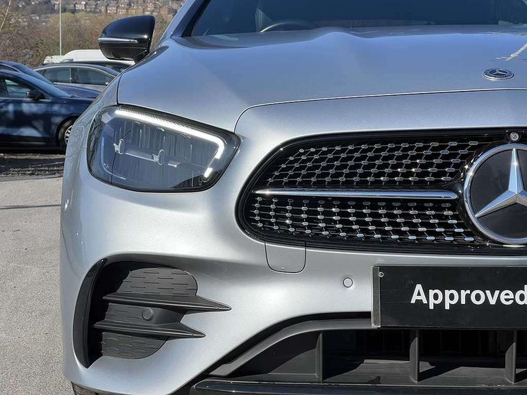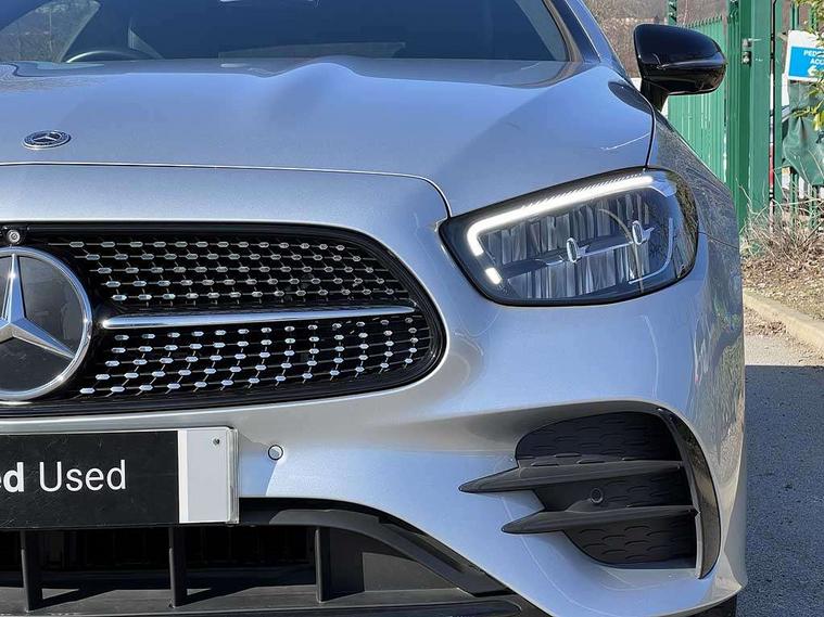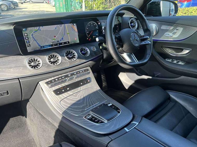 360 degree parking camera, Active parking assist including front and rear parking sensors, Analogue clock, Attention assist, Brake wear warning display, Cockpit display 12.3" widescreen digital instrument cluster, Collision prevention assist plus, Direct steer speed sensitive steering, DYNAMIC SELECT with a choice of driving modes (ECO, Comfort, Sport, Sport+ and Individual), E-call, ECO start/stop function, Hey Mercedes Voice activation, High resolution 12.3" multimedia colour display, Mercedes connect me, Outside temperature display, Pre-installation for Vehicle Monitoring, Pre-installation for Vehicle Setup, Remote boot release, Service indicator (ASSYST), Status display for rear seat belts in instrument cluster, Touchpad without controller, Traffic sign assist, Trip computer in multifunction display showing current fuel consumption, 25 litre AdBlue tank, 66 litre fuel tank, 9G TRONIC 9 speed automatic transmission, Agility control sports suspension with selective damping system, Diesel particulate filter, Incorrect fuelling protection, 2 USB ports in centre console, 2 USB ports in the rear, Burmester surround sound system with 13 speakers and a 9 channel amplifier with total output of 590 watts, MBUX multimedia system with DAB digital radio and touchpad including satellite navigation, Smartphone integration via Android Auto/Apple CarPlay, Media Interface, USB and Bluetooth interface and touchpad with control wheel, Adaptive brake lights, AMG bodystyling front and rear aprons in polished aluminium, AMG boot lid spoiler in body colour, Body colour door handles, Body coloured bumpers, Daytime running lights, Diamond radiator grille with integral star and single louvre in high gloss black, Electric windows with one touch opening/closing and obstruction sensors, Exterior mirrors heated and electronically adjustable, High gloss black exterior mirror housing, High gloss black front apron, High gloss black rear bumper with chrome trim, Illuminated front door sill panels with Mercedes-Benz lettering, LED high performance headlamps, Magic Vision Control heated windscreen wiper system, Panoramic electric glass sunroof, Pre-installation for roof rail systems, Privacy glass Includes rear side windows and rear windscreen, Radio aerial integrated into rear window, Rain sensing windscreen wipers, Rear boot, Rear LED lights, Third brake light, Top surround of side windows in polished aluminium, Visible twin pipe exhaust system integrated into bumper, Waistline strips in high gloss black, 2 seat bench in 2nd row, 3-spoke flat bottom multifunction AMG steering wheel with Touch Control buttons, trimmed in black nappa leather, 40:20:40 split folding rear seats, Artico man-made leather upper dashboard and beltlines with contrast stitching, Automatic child seat recognition sensor, Belt feeder driver and front passenger seat belt automatically positioned within easier reach, Black door pins, Black roof lining, Central stowage compartment with 12 V socket in centre console, Central stowage compartment with USB socket for use with Android Auto and Apple CarPlay, Centre armrest and door handle illumination, Centre console in grey open-pore ash wood, Floor mats with AMG lettering, Front and rear door pockets, Front centre armrest with stowage compartment, Front footwell lights, Glasses compartment in overhead control panel, Glove compartment - lockable, air conditioned and illuminated, Head restraints for driver and front passenger (four-way adjustability) and in rear (two-way), Heated front seats, Interior lighting - 64 colour Ambient lighting, Interior rear light/integral reading lights, Isofix rear child seat fastenings, Leather upholstery, Multi contour front sports seats, Seat occupancy sensor for front passenger seat, Single front passenger seat, Sports pedals in brushed stainless steel with black rubber studs, Steering column manually adjustable for height and reach, Steering wheel gearshift paddles, Sunvisors with illuminated vanity mirrors, THERMOTRONIC automatic climate control system with 3 climate zones, Memory pack - E Class, Mirror pack - E Class, Night package - E Class, Seat comfort pack - E Class, Stowage pack - E Class, 2 x 3-point rear seatbelts, Active bonnet pedestrian safety measure which detects an impact and raises bonnet, Adaptive brake system with HOLD function and brake drying in the wet, Adaptive driver and front passenger airbags, Airbags - sidebag for driver and front passenger with combined thorax/pelvis bag, Anti-lock braking system (ABS), Drivers knee airbag, Electric parking brake, Electronic Stability Programme, Front and rear window airbags, Head airbags, Hill hold function, Perforated front brake discs with "Mercedes-Benz" lettering, Seatbelt warning, Tyre pressure monitoring system, Warning triangle and first aid kit, Alarm system/interior protection/immobiliser, Central locking with interior switch, automatic locking and crash sensor with emergency opening function, Chrome surround in electric key, Keyless Go entry and starting function, Open-pore grey ash wood trim, 20" AMG multi spoke design alloy wheels painted in high gloss black with high sheen finish, Run flat tyres,