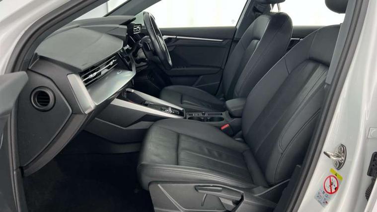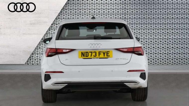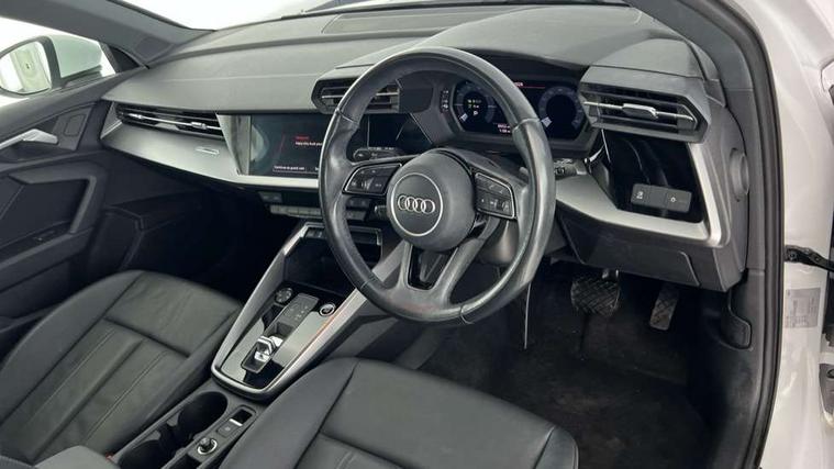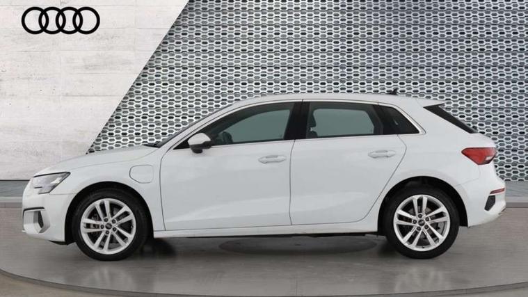 Audi drive select (Auto, Comfort, Dynamic, Efficiency and Individual), Audi smartphone interface, Audi Virtual Cockpit - 10.25" digital and colour instrument cluster, Automatic start/stop system with recuperation, Bluetooth interface, Camera based traffic sign recognition, Collision avoidance assistant, e-Call (emergency call), Electromechanical power speed sensitive steering, Lane departure warning system, MMI Navigation Plus with high resolution 10.1" colour touch screen display, Service indicator, Trip computer, Voice control system with natural language interaction, 3 pin 10 amp domestic charging cable, 3.6 kw On-board charger, Standard suspension, Type 2 mode 3 32 amp charging cable, Type 2 socket for AC charging, 2xUSB-C connection with data and charging functions, 6 passive loudspeakers, DAB Digital radio, 3rd brake light, Acoustic glass windscreen, Aluminium window trim, Auto dimming frameless rear view mirror, Body colour exterior mirrors, Body colour roof spoiler, Electrically adjustable/heated/folding/auto dimming door mirrors with integrated LED indications + kerb view function for passenger side, Front electric windows, LED daytime running lights, LED headlights and halogen rear lights, Light and rain sensors, Rear electric windows, Rear side wing doors, Rear window, rear door windows and rear side windows in clear glass, Rear wiper, 12V socket and storage compartment in front centre console, 3 seat bench in 2nd row, 3 spoke leather multifunction steering wheel with paddle shift, 4 way electrically adjustable lumbar support for driver and front passenger, 60/40 split folding rear seat bench, Dual zone electronic climate control, Front and rear headrests, Front centre armrest, Front door sill trims with aluminium inlay, Front/rear floor mats, Height and reach adjustable steering wheel, Interior lighting - Front and rear roof module including reading lights, glove compartment light and right hand side, Interior lighting - glove compartment light and right hand side, Luggage compartment floor covering, Manual boot compartment lid, Manually adjustable front seats, Routine cloth upholstery with front sports seats, Seat side bolsters, Single front passenger seat, Steel grey cloth headlining, Aluminium interior elements pack - A3 Sportback, LED interior lighting pack - A3 Sportback, Sport styling pack - A3 Sportback, 3x3 point rear seat belts, Driver and front passenger airbag with passenger airbag deactivation, Electronic Stabilisation Control (ESC) including ABS, ASR and EDL, First aid kit with warning triangle and 2 safety vests, Front side airbags with head airbags and interaction airbag, Pre-sense front with pedestrian and cyclist detection, Seatbelt monitoring, Tyre pressure loss indicator, Anti theft alarm, Anti-theft wheel bolts, Electronically operated child locks, Immobiliser, Remote control central locking, Inlays with silk effect paint in platinum grey, Tool kit, Tyre repair kit,