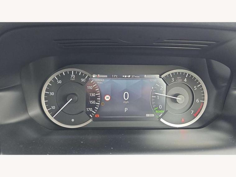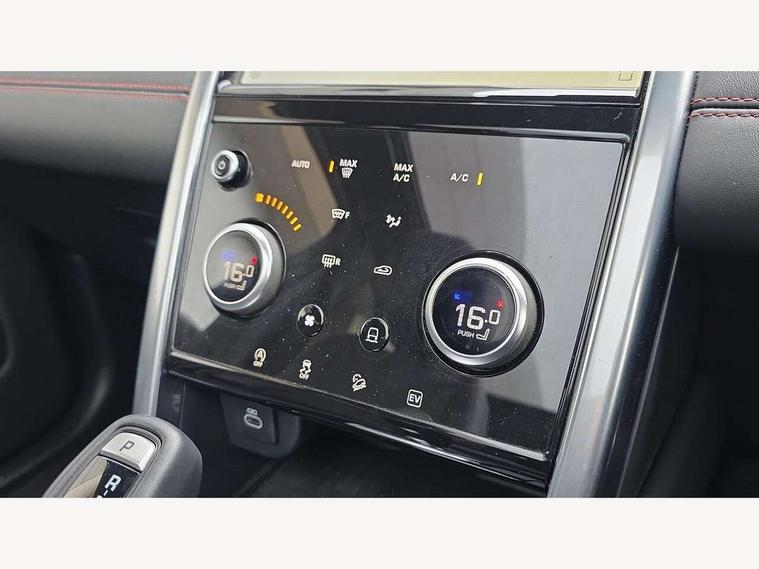 10" touch screen, Adaptive cruise control, Android Auto, Apple CarPlay, Blind spot assist, Clear exit monitor, Driver condition monitor, eCall emergency call system, Front and rear parking aid, InControl remote premium, Lane keep assist, Locking fuel flap, PAS, Pivi Pro connected navigation system with upgraded Infotainment, Powered tailgate/boot lid, Push button start, Rear collision monitor, Rear traffic monitor, Service interval indicator, Traffic sign recognition with adaptive speed limiter, Trip computer, Wade Sensing, 7 kW onboard charger, All terrain progress control, Coil suspension system, Configurable dynamics, Dynamic stability control, Home charging cable, Public charging cable, Terrain Response 2, Bluetooth connectivity including audio streaming, Digital Audio Broadcast radio-DAB, Steering wheel mounted audio controls, 3rd brake light, Automatic headlight levelling, Automatic headlights, Electric front/rear windows, Electric heated/power fold door mirrors with approach lights and auto dimming driver side, Front and rear recovery eyes, Front fog lights, Heated rear window, Heated windscreen including heated washer jets, Illuminated metal front treadplates with R dynamic branding, P300e badge, Privacy glass, R Dynamic badge, Rain sensing windscreen wipers, Rear fog lights, Rear side wing doors, Rear wing door, Rear wiper, 5 standard seating configuration, Bright metal pedals, Centre console with armrest, Configurable cabin lighting, Electrically adjustable steering column with memory, Footwell lights, Front and rear grab handles, Front passenger isofix child seat attachment, Heated steering wheel, Loadspace cover, Loadspace light, Overhead lighting console, Overhead stowage for sunglasses, Rear headrests, Satin chrome gearshift paddles, Sunvisors with illuminated vanity mirrors, Tilt/reach adjustable steering wheel, Black exterior pack - Discovery sport R-Dynamic SE/HSE, Online pack with data plan - Discovery, 3 point seatbelts on all seats, ABS, Brake hold function, Child locks on rear doors, Collision mitigation braking system, Cornering brake control (CBC), Driver/Front Passenger airbags, Drivers knee airbag, Electronic brake force distribution, Electronic parking brake, Emergency brake assist, ESP + traction control, Hill descent control, Hill launch assist, Pedestrian airbag system, Rear seat ISOFIX, Roll stability control, Side and curtain airbags for front and 2nd row seats, Trailer stability control, Tyre pressure monitoring system, Battery Back Up System (BBUS) with tilt sensor, Global lock and unlock switch on driver door, Intrusion sensor, Keyless entry, Locking wheel nuts, Centre stack rails in noble chrome,