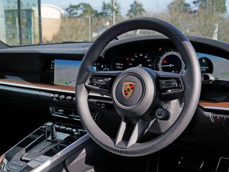10.9 inch centre display, Automatic start/stop system, eCall emergency system, Gear indicator in rev counter, Instrument cluster with central analogue rev counter and two 7-inch TFT displays, Porsche Communication Management (PCM) including online navigation module, mobile phone preparation, audio interfaces and voice control system, Porsche WET Mode, Service indicator, Smartphone integration with Apple CarPlay and Android auto, Stationary management with HOLD function, Trip computer, Warn and brake assist including pedestrian protection, 8 Speed Porsche Doppelkupplung (PDK), Aluminium block and cylinder heads, Direct fuel injection (DFI), Expansion intake manifold, Four valve per cylinder, Integrated dry-sump lubrication with an on-demand oil pump, McPherson-strut suspension with anti-roll bar at front, Multi-link suspension with anti-roll bar at rear, Porsche Stability Management (PSM), ABS with extended brake functions, Porsche Torque Vectoring Plus (PTV Plus) inc electronically regulated rear differential lock and fully variable torque distribution, Rear wheel drive, Twin turbocharger intercooled, Two gasoline particulate filter, Two three-way catalytic converters and on-board diagnostics for monitoring emission control system, VarioCam Plus variable valve timing and switchable valve lift, Water cooled with thermal management, 2 USB-C connectivity and charge ports in the centre console storage compartment, DAB Digital radio, "PORSCHE" lettering integrated in taillight strip, Auto deploying rear spoiler, Automatic headlight activation including welcome home lighting, Automatically dimming interior and exterior mirrors with integrated rain sensor, Black trim strips, Body coloured bumpers, Electrically adjustable heated exterior mirrors on door waist rails, aspherical on driver's side, Green tinted heat insulating glass, Heated rear windscreen, Intelligent lightweight body in Aluminium/Steel composite construction, LED auxiliary light units in the front end with position lights, direction indicators and side indicators, Power windows with one touch operation and door seal protection, Rear boot, Rear lid grille with vertical slats in high gloss black, Retractable door handles, Side air intakes at front with active cooling flaps and air blades, Side skirts trim in black, Side window trim strips in black, Taillight strip including integral parking lights and rear fog light, Trims on sideskirts in black, Windscreen washer system with aero wiper blades and washer jets, 12V socket in front passenger footwell, 2 individual seats in 2nd row, 2+2 seater with rear engine, 2-zone automatic climate control with separate temperature settings for driver and front passenger, Ascending centre console with storage compartment, Clothes hooks on seat backrests, Driver and front passenger illuminated vanity mirrors, Embossed leather on front center seat, side bolsters and front seat headrests, Front and rear head restraints, Heated front seats, ISOFIX child seat mounting points on passenger seat, LED door lights, LED footwell lights, LED glove compartment lighting, LED ignition light, LED luggage compartment lighting, LED orientation light, LED reading lights, Lockable glove compartment, Luggage compartment at front, Luggage compartment lid release, Particle/pollen filter with active carbon filter, PDK gear selector with automatic mode, manual gear selection via shift paddles on the steering wheel, Single front passenger seat, Smooth finish leather on steering wheel rim, door handles, door panel armrests and centre console storage compartment lid, Split folding rear seats, Storage compartments in each doors, Two individual cupholders 1x as inlet in centre console and 1x passenger side, Brake discs with 350mm diameter at front and 350mm at rear, internally vented and cross-drilled, Electric parking brake, Electromechanical power brake, Full size two stage airbags for driver and front passenger, Pedestrian protection, Porsche side impact protection system includes side impact protection in doors, curtain, head/thorax airbags for driver/front passenger in each door, Tyre pressure monitoring system, Dashcam prep, Engine immobiliser with remote central locking and alarm system with ultrasonic sound based interior surveillance, Porsche vehicle tracking system (PVTS Plus), Tyre sealing compound and electric air compressor kit,