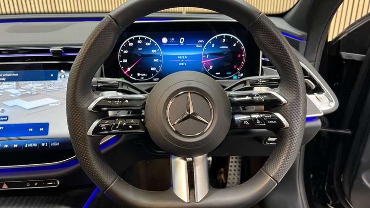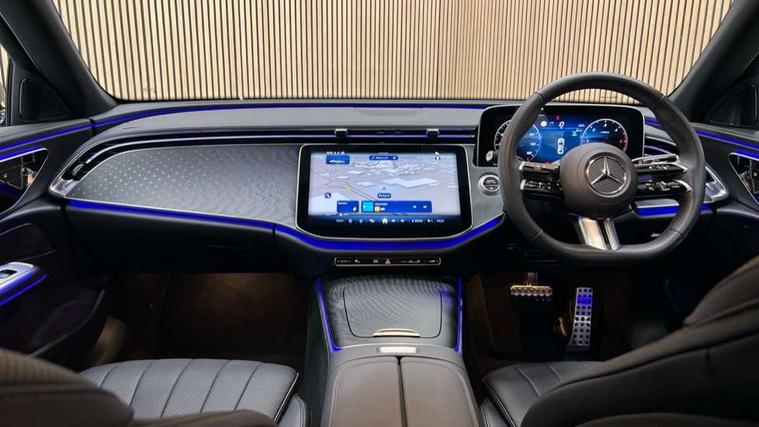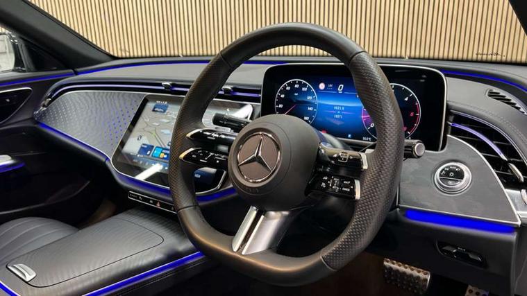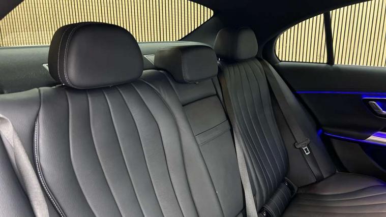 12.3" high resolution cockpit display, 14.4" high resolution central media display with latest MBUX generation, 5G Communications module, Active lane keeping assist, Attention assist, Blind spot assist, Bluetooth, Brake wear warning display, Direct steer speed sensitive steering, ECO start/stop function, Evasive manoeuvre support, Fingerprint scanner, Fluorescent jacket for driver, Hard disc navigation, MBUX augmented reality for navigation, MBUX navigation premium, MBUX voice control, Mercedes me connect including emergency call system, accident recovery, breakdown and maintenance management, Outside temperature display, Preinstallation for live traffic, Remote Services Premium, Service indicator (ASSYST), Status display for rear seat belts in instrument cluster, Traffic sign assist, Trip computer in multifunction display showing current fuel consumption, Wireless charging, Wireless smartphone integration with Apple CarPlay and Android auto, 48V Mild hybrid technology, 66 litre fuel tank, 9G TRONIC automatic transmission, Agility control suspension with selective damping system and lowered by 15mm, Bluetec emission control, Diesel particulate filter, Integrated starter generator Gen 2, Sporty engine sound system, DAB Digital radio, Preinstallation for MBUX Entertainment Plus, 3rd brake light, Adaptive brake lights, Aerial integrated in rear window, AMG Line exterior, Auto dimming driver's door mirror, Auto dimming rear view mirror, Digital air vent control, Electric folding door mirrors, Electric windows with one touch opening/closing and obstruction sensors, Electrically adjustable and heated door mirrors, Heat insulating privacy glass, Illuminated radiator grille, LED daytime running lights, LED high performance headlights with adaptive highbeam assist, Pre-installation for roof rail systems, Rear boot, Rear side wing doors, Surround lighting with logo projection, 3 seat bench in 2nd row, 4 way lumbar support, Ambient lighting, AMG brushed stainless steel sports pedals with rubber studs, AMG floor mats, AMG line interior, Automatic child seat recognition sensor, Central stowage compartment with USB socket for use with Android Auto and Apple CarPlay, Climatised front seats, Comfort seats, Courtesy lights in rear grab handles with reading light functionality, Folding rear seat backrest, Front centre armrest with stowage compartment, Gearshift paddles in galvanised silver, Glove compartment - lockable, air conditioned and illuminated, Head restraints for driver and front passenger (four-way adjustability) and in rear (two-way), Heated front seats, Instrument panel and door beltlines in artico nappa look leather, Leather upholstery, Multifunction sports steering wheel in nappa leather, Roof liner in black fabric, Seat occupancy sensor for front passenger seat, Single front passenger seat, Steering wheel touch control buttons for audio and onboard settings, Sunvisors with illuminated vanity mirrors, THERMATIC 2 zone automatic climate control, Night pack - E class, Parking package with 180 degree camera - E Class, USB plus package - E Class, 3x3 point rear seatbelts, Active bonnet pedestrian safety measure which detects an impact and raises bonnet, Adaptive brake system with HOLD function and brake drying in the wet, Anti-lock braking system (ABS), Automatic front passenger airbag deactivation, Central airbag, Childproof locks manually operated for rear doors and electrically operated for rear power windows, Driver and front passenger airbags, Electronic parking brake, Electronic Stability Programme, Hill start assist, ISOFIX child seat attachment points two outer rear seats, Knee airbags, Pedestrian protection, Pre-Safe anticipatory safety system, Tyre pressure monitoring system, Warning triangle and first aid kit, Window airbags, Alarm system/interior protection/immobiliser, Central locking with interior switch, automatic locking and crash sensor with emergency opening function, Dashcam, Guard 360 degree vehicle protection, Increased anti theft protection, Keyless Go, Urban guard vehicle protection plus, Centre console trim in open pore black ash wood, Dash trim in open pore black ash wood with backlit laser cut Mercedes-Benz star pattern, 19" AMG 5 twin spoke design alloy wheels with black painted inserts and high sheen finish, Summer tyres, TIREFIT with tyre inflation compressor,
