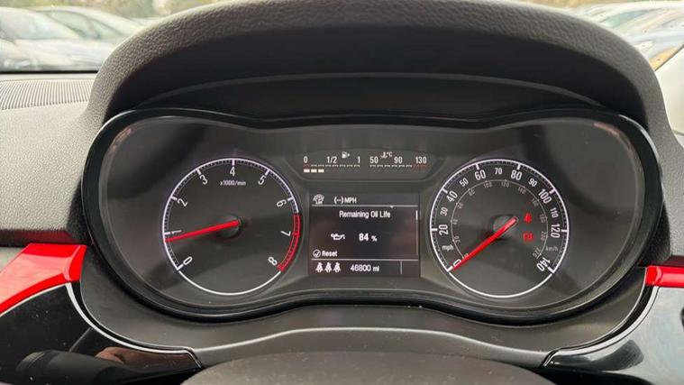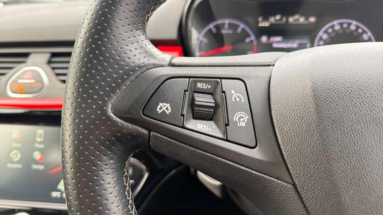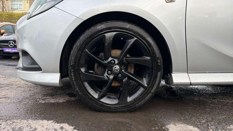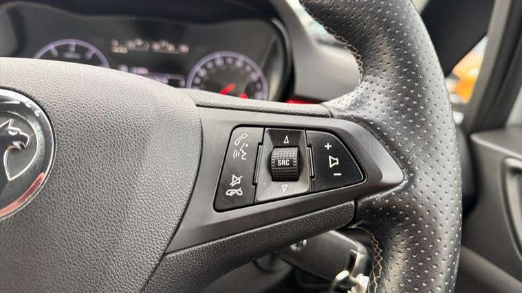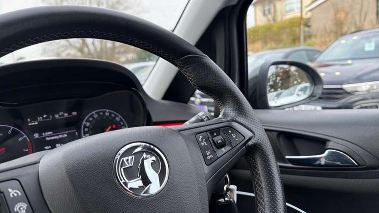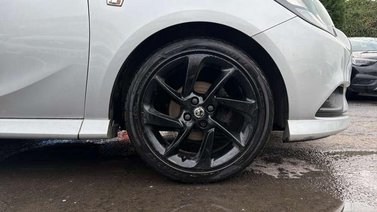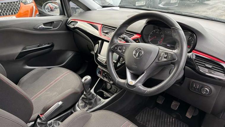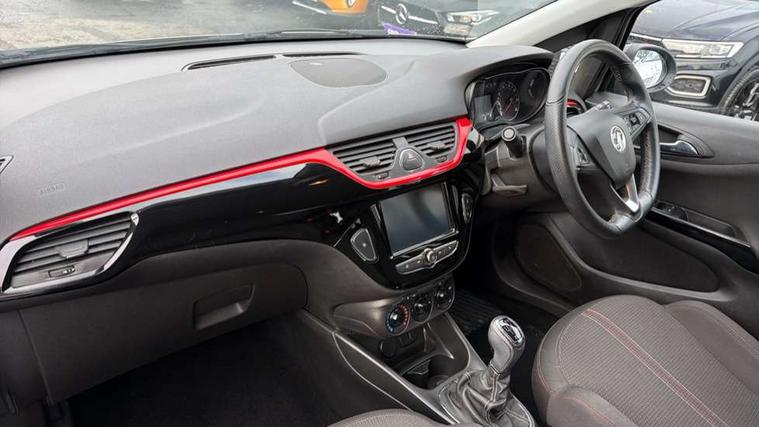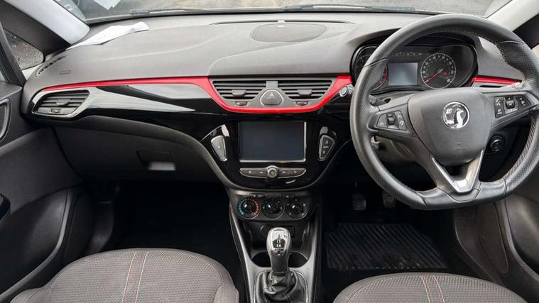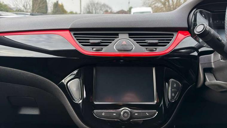 Apple car play/Android Auto, Central facia display, Cruise control + speed limiter, Digital fuel gauge with low fuel warning light, Digital water temperature gauge, Electric speed sensitive power steering, Exterior temperature gauge, Lights on audible warning, Multi function trip computer, Navi 4.0 IntelliLink navigation with 7" touchscreen, traffic program, DAB , USB, Bluetooth audio streaming, Apple CarPlay/Android auto, and microphone, Rev counter, Service indicator, Speed warning indicator, Speedometer, White graphics on black background, Front anti roll bar, Sports suspension, Steering wheel mounted audio/cruise controls, Black door mirrors, Black foil on B-pillars, Black front grille, Black roof, Body colour bumpers, Body colour door handles, Body colour front lower spoiler/side sills/rear lower skirt, Chrome effect tailpipe extension, Dark tinted rear windows, Dipping rear view mirror, Door to door illumination, Electric adjustable/manual folding heated door mirrors (wide angle on driver's side), Electric headlight beam leveling, Electrically operated front windows with safety auto reverse/one touch facility, Front fog lights with black surround, Halogen headlights, Hazard warning lamps, Headlamp levelling, Heated rear window, Heated windscreen, High level LED centre brake light, Intermittent rear wash/wipe, Laminated windscreen, LED daytime running lights, Mineral black door mirror housings, Rear fog lights, Rear wiper, Side window demist vents, Two speed windscreen wipers with variable intermittent wipe, Welcome lighting, Windscreen demist vents, 12V electrical accessory socket in front, 3 spoke steering wheel, Anti submarining ramps in all seats, Centre console with cupholders, Chrome interior door handles, Driver's and front passenger's sunvisors, Driver's and front passenger's tiltable assist handles, Driver's and passenger's vanity mirrors with flip up cover, Driver's vanity mirror, Four adjustable facia vents, Front courtesy lights, Front door pockets, Front map reading lights, Front seat belt pre-tensioners with load limiters, Glovebox with lid, Grab handles, Height adjustable driver's seat, Height adjustable front headrests, Height adjustable rear head restraints with adjustable backrest, Illuminated luggage compartment, Instrument panel light dimmer, Interior tailgate handles, Isofix child seat mounting points on outer rear seats, Leather gear knob and handbrake grip, Load restraining lashing points, Luggage compartment cover, Multi function steering wheel, Passenger make up mirror, Pollen filter, Reach + rake adjustable steering column, Rear courtesy lights, Rear door pockets, Rear reading lights, Reclining front seats, Sports front seats, Storage box on driver's side lower facia, Stowage facility for luggage compartment cover behind rear seats, Twin gas assisted tailgate struts, Sight and light Pack - Corsa, Anti-lock braking system (ABS), Brake assist function, Electronic brake force distribution, Electronic Stability Programme, Energy absorbing steering column, Front and rear seatbelt reminder, Front and rear seatbelt unfastened audible warning and warning light, Front seatbelt force limiters, Gas pressure dampers, Height adjustable front seatbelts, Hill start assist, Manual passenger airbag deactivation function, Pedal release system, Rear child proof door locks, Reinforced passenger safety cell, Side impact protection beams, Six airbags - Driver's dual stage airbag/front passenger's dual stage airbag/front seat side impact airbags/full size curtain airbags, Three 3 point rear seatbelts, Three inertia reel lap/diagonal seatbelts, Traction control, Tyre pressure monitoring system, Electronically protected audio, Engine Immobiliser & Deadlocks, Key left in ignition audible warning, Locking wheel bolts, Remote control central locking, Visible vehicle identification number, Piano black facia with white inserts, 17" Gloss black alloy wheels, Low rolling resistance tyres, Tyre inflation kit,