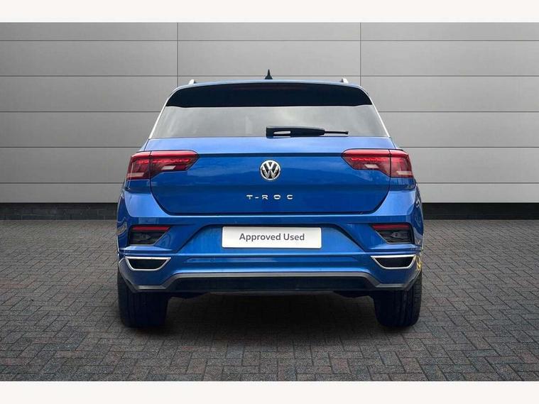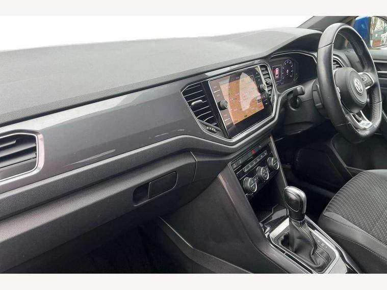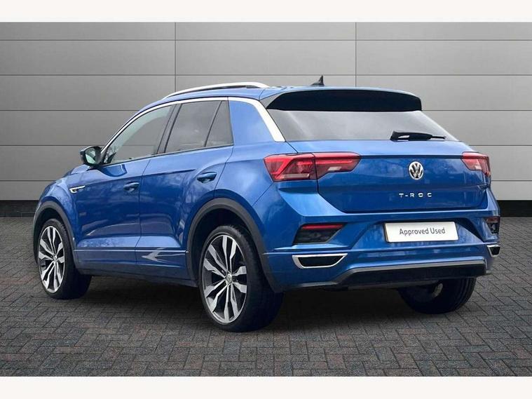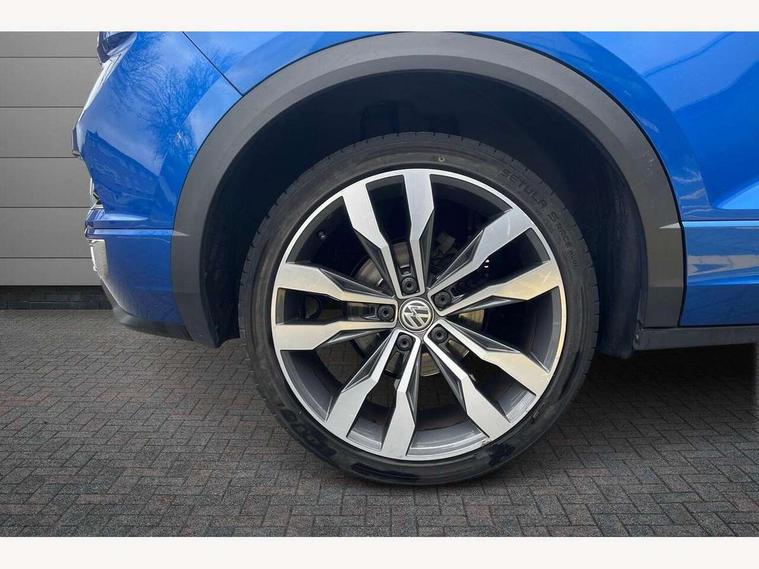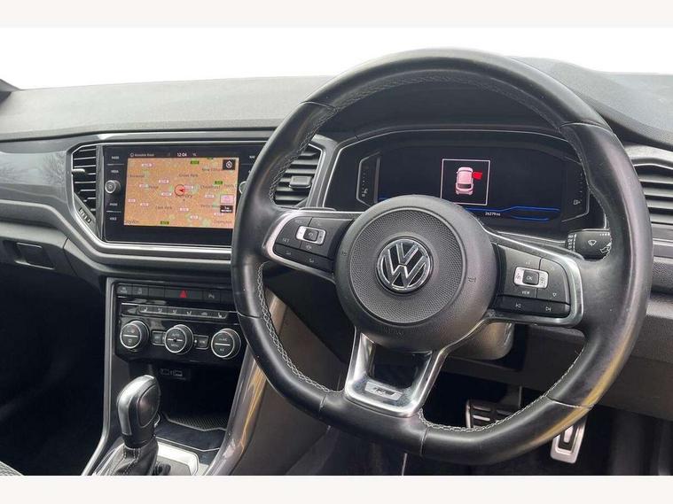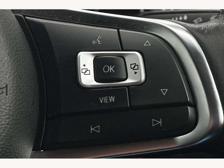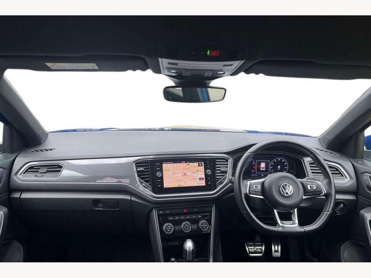 'Lights On' Reminder warning buzzer, 2 USB connection charging sockets, Active Info Display, 10.3" high resolution TFT dash display screen with customised information, Adaptive cruise control with front assist, radar sensor controlled distance monitoring, city emergency braking, App-Connect, Automatic start/stop system, Bluetooth telephone and audio connection for compatible devices, Car information display, Car-Net Security and Service, Discover navigation, 8" touch screen navigation/infotainment system with Car-Net, European map, CD/radio, 2D/3D map and speed limiter, Driver alert system with audible and visual fatigue detection system, Driver tips and journey analysis, Driving profile selection - Eco, normal, sport or individual modes with Individual mode allows for steering, drive and air conditioning settings, Lane assist, Multifunction computer with visual gear change recommendation for fuel consumption, Service interval indicator, Think blue trainer driver tips and journey analysis, Voice activation, Warning sound and light for doors and tailgate open, Warning sound and light for front seatbelts unfastened, Battery regeneration during braking, DAB Digital radio, Dynamic navigation based on TMC+, Multi device interface (MDI) with USB connection, Music playback - MP3, WMA and AAC files, Premium USB cable in choice of either Apple or Android smartphone compatibility, SD card slot, Simultaneous pairing of 2 compatible mobile devices, SMS functionality - read, compose and send SMS messages using touch-screen display, Three route options - Fast, Short, Eco, Title and cover art display, Auto dimming interior rear view mirror, Black grained lower door protectors, Body colour door handles, Body colour rear roof spoiler, Chrome effect left and right trapezoid exhaust tailpipe fascia surround, Chrome trim on upper and lower radiator grille, Dusk sensor, Electrically foldable, adjustable and heated door mirrors with puddle lights and reverse activated kerb-view adjustment on passenger's door mirror, Front and rear electric windows, Front fog lights with static cornering function, Front windscreen wiper with intermittent wipe and 4 position delay, Fully galvanised body, Heated rear window, High level 3rd brake light, LED darkened rear light clusters, LED rear number plate lights, Manual coming/automatic leaving home lighting function, Rain sensor, Rear tinted glass from B-pillar backwards approx 65% tinted, Rear wash/wipe with intermittent wipe setting, 12V socket in centre console storage area, 2 Front and rear reading lights incorporating LED technology, 3 rear head restraints, 4 load lashing points in luggage compartment, Aluminium pedals, Ambient lighting in front footwell and light strips below trim in front doors, Black roof lining and sun visors, Branded points of interest, Carbon flag cloth upholstery, Climate control - 2 zone electronic air conditioning with automatic air recirculation and allergy filter, Drawer under drivers seat, Front and rear carpet mats with contrast stitching, Front centre armrest with storage compartment, longitudinal and height adjustable and two rear air vents, Front cupholders x 2, Front footwell illumination, Front seat back storage pockets, Front sports seats with R-Line logo on seat backrest, Glovebox, Height adjustable front seats, Height/reach adjust steering wheel, Illuminated vanity mirrors, Instrument lighting, white adjustable panel illumination, Interior light delay, Isofix easy fit child seat preparation for 2 outer rear seats, Load through provision with single cup holder when folded down, Luggage compartment cover, removable, Luggage compartment lighting, R Line badge, Split folding rear seat backrests with centre armrest, Storage compartment in left and right luggage area, Storage compartment in rear doors, Storage compartments in driver and front passenger doors, Three spoke multifunction leather trimmed steering wheel including gear knob and paddle shift with aluminium inserts contrast stitch and R Line logo, Unique R Line door sill protectors, R line styling pack - T-Roc, Winter pack - T-Roc, 3 rear three point seatbelts, ABS, Curtain airbags, Driver and front passenger safety-optimised head restraints, Drivers and front passengers airbags with passengers deactivation switch, Electronic parking brake with auto hold, Electronic stability control (ESC) includes ASR, EDL, EDTC and trailer stabilisation function, Front seat side impact airbags, Predictive pedestrian protection, Rigid safety cell with front and rear crumple zones, Three point height adjust front seatbelts + pretensioners, Tyre pressure loss indicator, Ventilated front and rear disc brakes, Volkswagen roadside assistance, Alarm with interior protection and deactivation via infotainment system, Electronic engine immobiliser, Remote central locking with 2 remote folding keys, Shadow steel decorative inserts in dash and door panel, 19" Suzuka alloy wheels with low rolling resistance tyres and anti wheel bolts, Space and weight saver spare wheel,